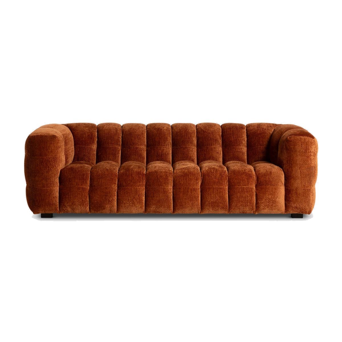 I love the bold rust tone and ribbed texture - this orange sofa makes an instant focal point without feeling overwhelming. It works equally well in mid-century modern, Scandi or eclectic interiors; balance its warmth with a neutral rug, light timber furniture and metal accents. For styling, layer cushions in complementary hues (terracotta, olive or deep navy), drape a chunky throw over one arm and place a low coffee table plus a floor lamp nearby to create a relaxed seating zone. Its generous proportions also help zone open-plan living areas.