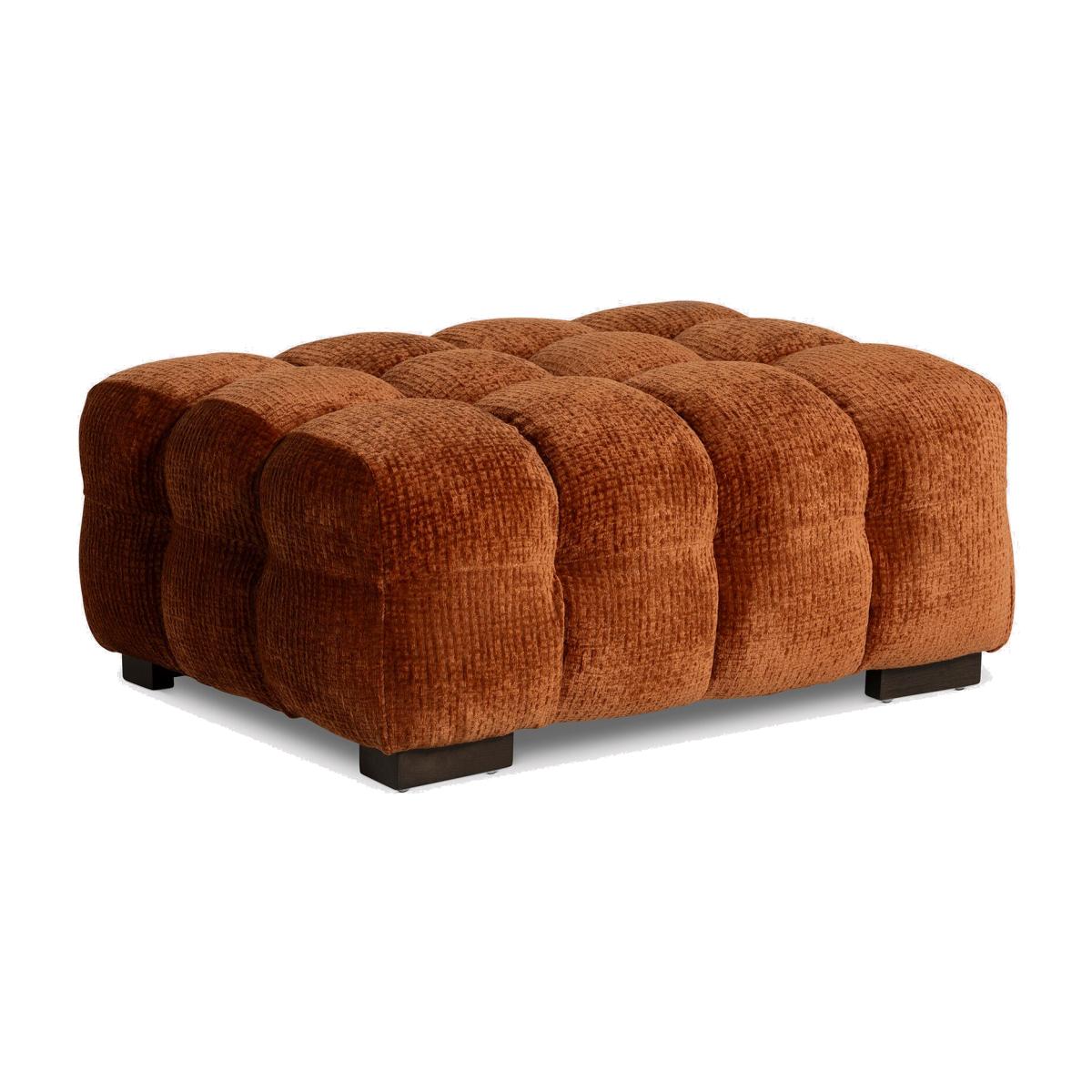 I’m a fan of this orange boucle footstool for the depth it adds without dominating a room. The rich, burnt-sienna tone and quilted texture work equally well in Scandi-inspired living rooms - where it brings warmth against pale woods - and in more eclectic schemes alongside jewel-toned velvets or patterned rugs. Style it beside a low-shelf coffee table as extra seating or tuck it under a console to free up floor space. For a cohesive look, repeat the boucle texture in a throw cushion or draped blanket, and balance its bold hue with neutral walls and metallic accents.