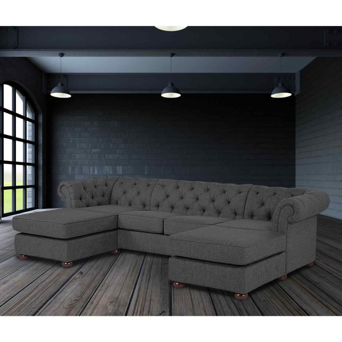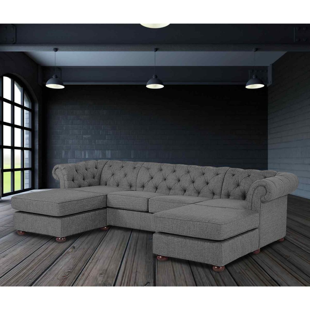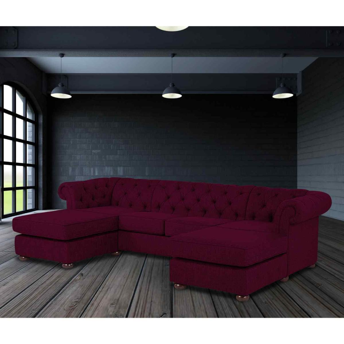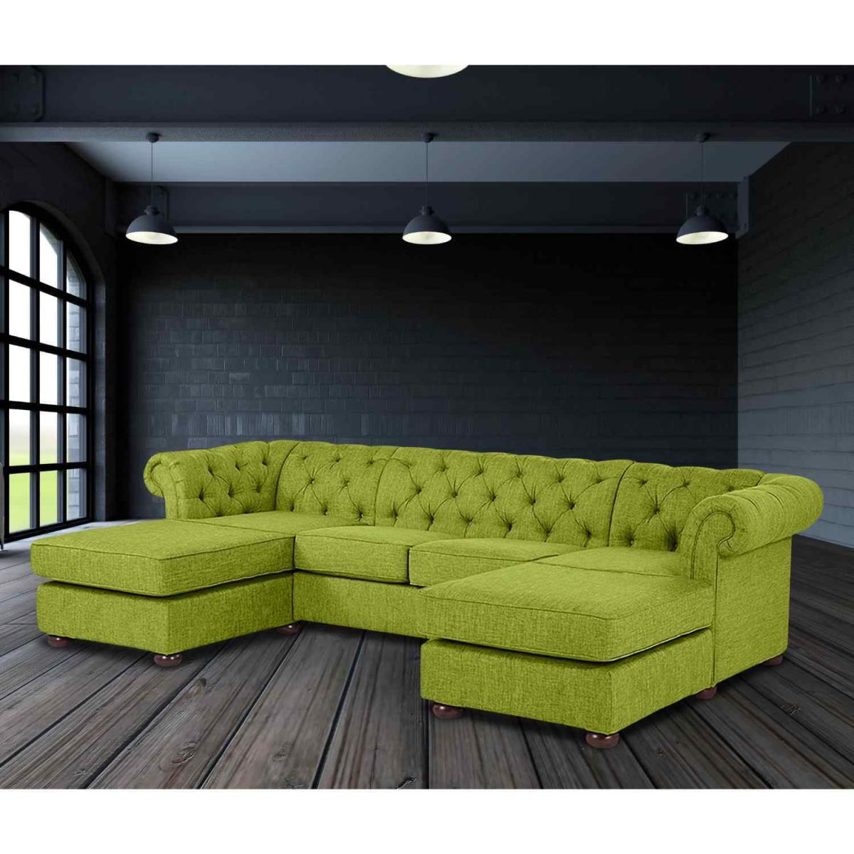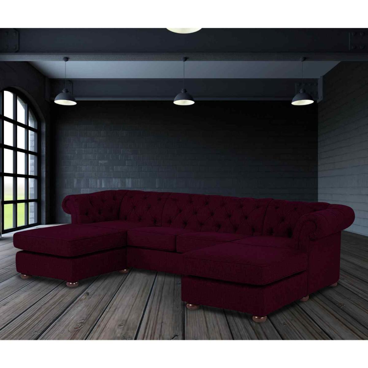 UK Made Corner Sofa, Premium Plush Velvet Fabric, this beautiful U Shape sofa includes 2 Large footstools which can be moved around, can then be used as a 4 seater, L Shaper or a U Shape! Solid Hardwood frame used and expert upholstery, this sofa is sure to be a crowd-pleaser! A beautiful chesterfield design that has been handmade in the UK.