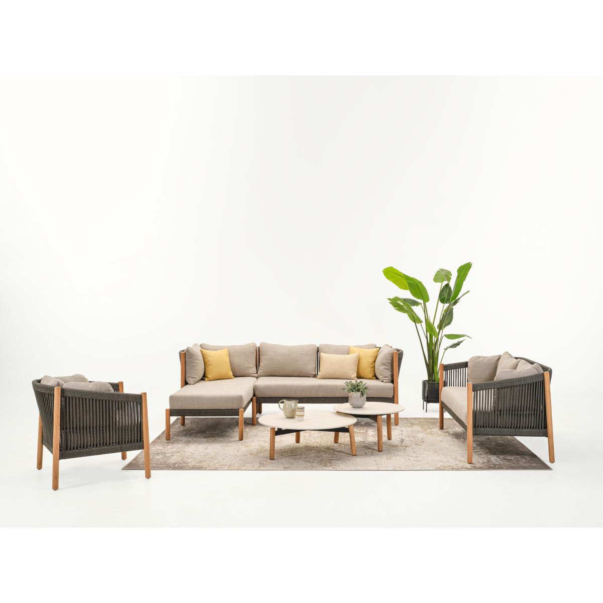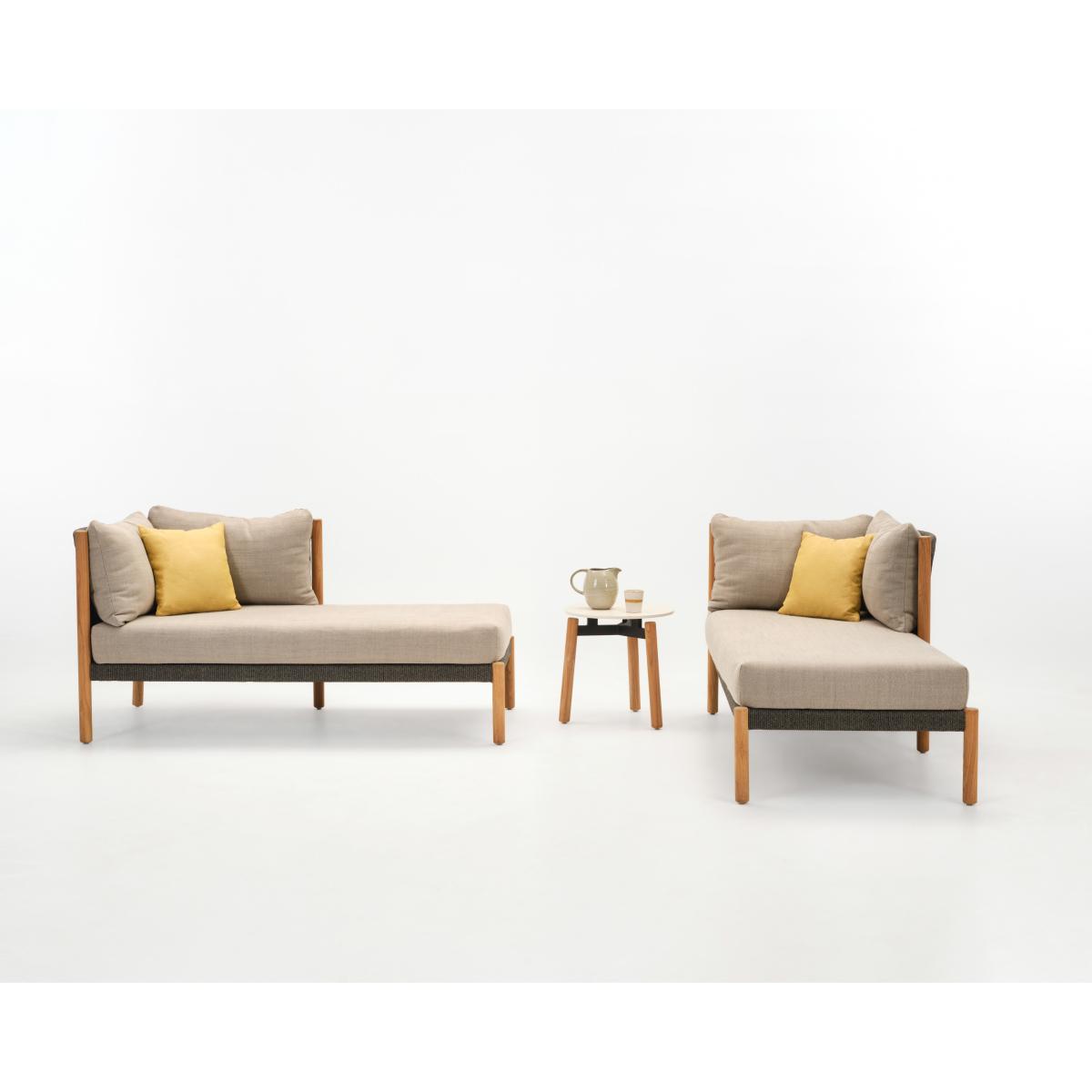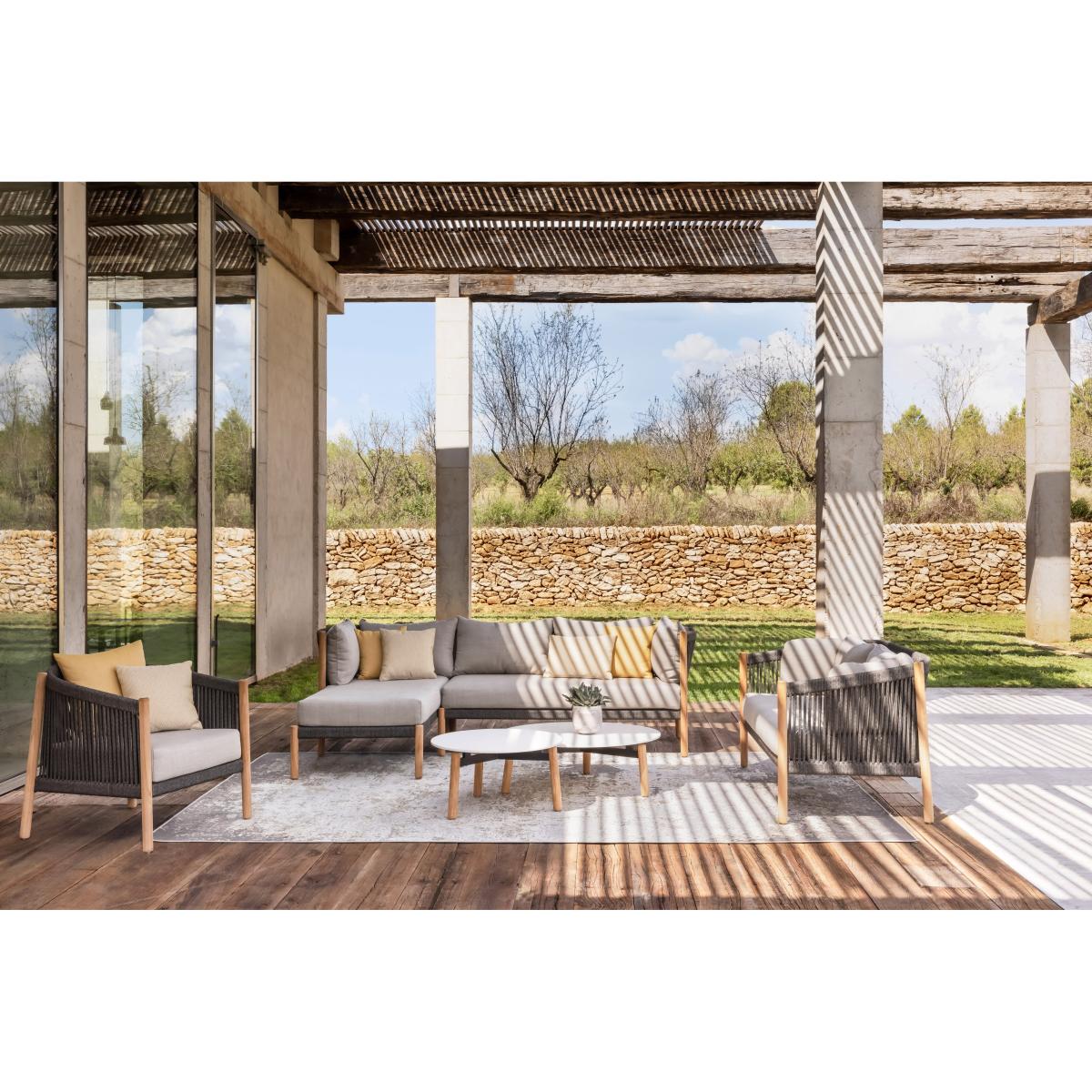 Designed by Belgian designer Bertrand Lejoly, the "Lento" collection (which means "slow" in Italian), is the embodiment of la dolce vita: taking your time, chilling out, enjoying the fresh air. Creating a relaxed and zen atmosphere, this eye-catching outdoor furniture stands out with its combination of warm, natural teak, tactile cords, and comfortable cushions. The long, rounded legs in solid teak are clearly visible, and the backrests made with woven charcoal cord grant this collection a rich and endearing quality. The large shell made from hand-woven polypropylene cord is held up by an aluminium frame. Lento stands out with its attentive, careful design, the refinement of its finishes and its high quality of manufacture. Robust and durable, the Lento collection is perfectly weather- and UV-resistant. This Lento low chair comes with a seat cushion (Stone grey) and two backrest/armrest cushions (Stone grey). These water-resistant cushions have a removable cover. The Lento low chair will become the centrepiece of your outdoor living space. It’s also perfect for creating a winter garden-style living room, entrance, dressing room or conservatory, etc. Care: the raw teak (untreated) selected is of an exceptional quality, with its thickness superior to market standards, as well as its natural resistance to bad weather. The teak (not oiled) develops a natural patina over time: it therefore offers shades of browns and greys for a gentle and very modern appeal. You can also lightly sand it at the start of each season to restore the original colouring. If you want to keep its natural shade, we recommend you treat it with oil. Cords: quick-washing with a mild and non-foaming detergent every three months. A soft nylon brush or a low-pressure cleaning device can also be used to clean between the mesh of the weave. Synonymous with exceptional seating comfort, high quality and durable materials, Vincent Sheppard furniture places craftsmanship at the heart of its DNA. Each Vincent Sheppard piece of furniture is handcrafted in Indonesia by the most highly qualified craftsmen. The knowledge and skills of local artisans elevate these creations to the rank of works of art. The Vincent Sheppard brand guarantees good working conditions and fair pay for all of its employees.