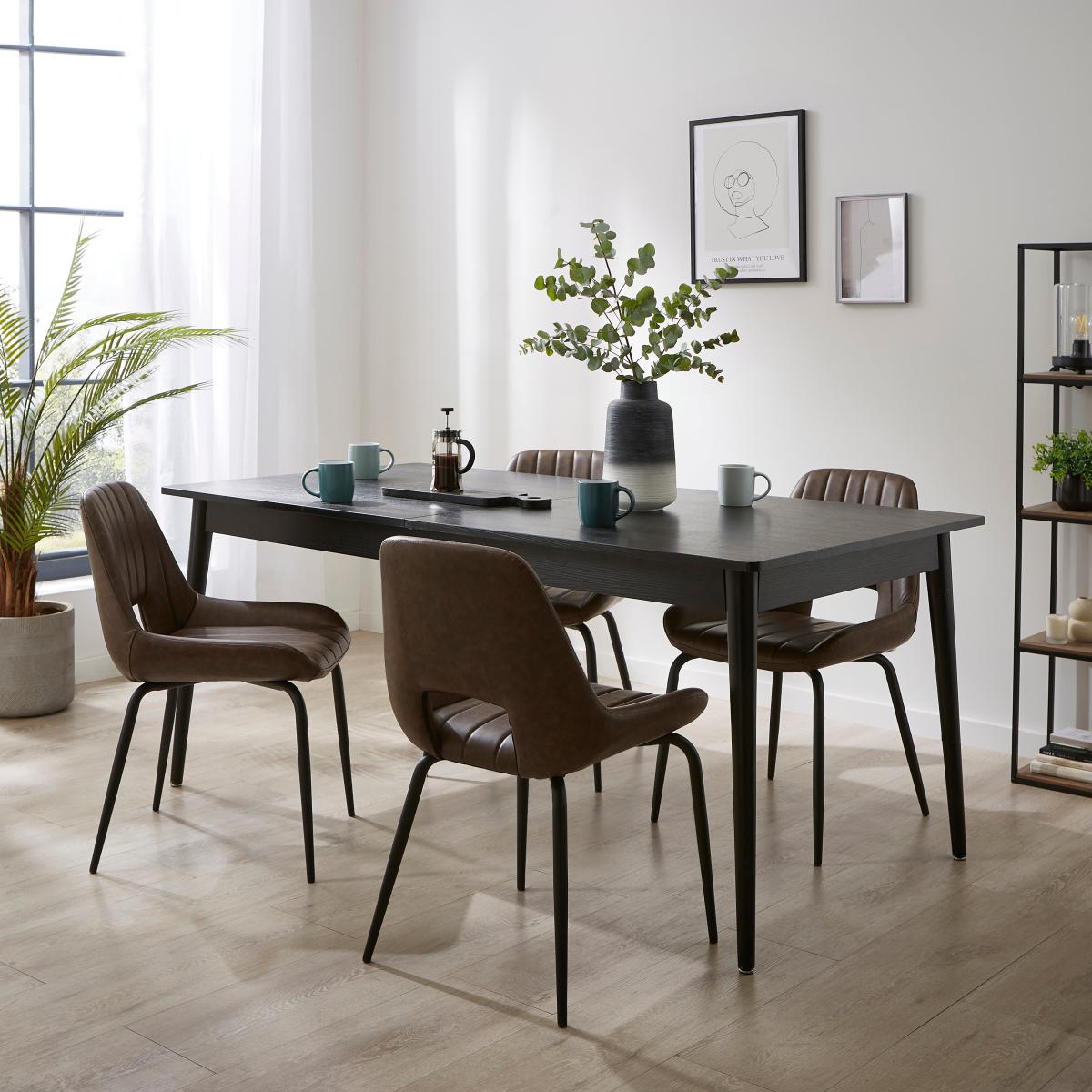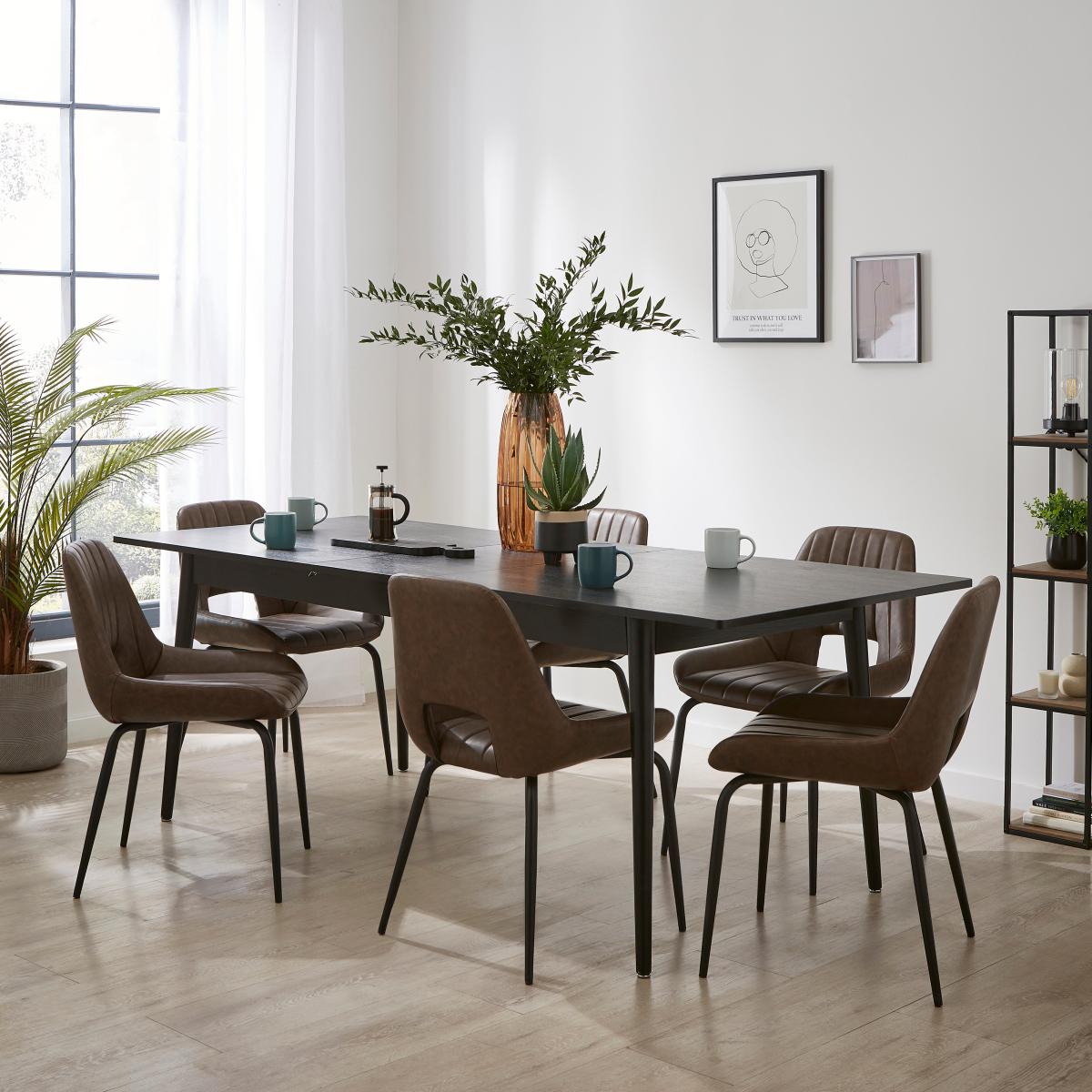 Leo 6 Seater Rectangular Extendable Dining Table, Black Black