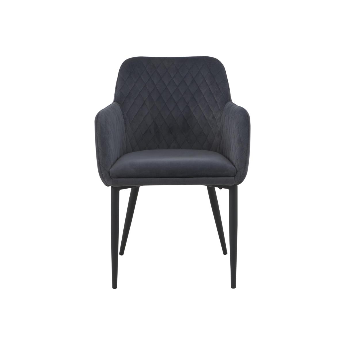 Relaxed retro- modern dining chair invelvet. The chair back curves into slim, shaped arms. With quilting detailing. Why youll love it Chic, retro- modern curves with Deco appeal. Quilted inside the back and arms. Available in sleek velvetupholstery. In contemporary granite Exquisitely tailored, softly cushioned. Polished chrome or matt black metal legs. Coordinates perfectly with the Olympia round tables. What you need to know The black or chrome finish legs are made of strong steel. Cushioned seats and backs are foam- filled. Flattening and shading of heavy wear areas on velvet is unavoidable. Pile fabrics may be vacuumed lightly using the curtain attachment. Brush regularly in the direction of the pile with a soft brush.
