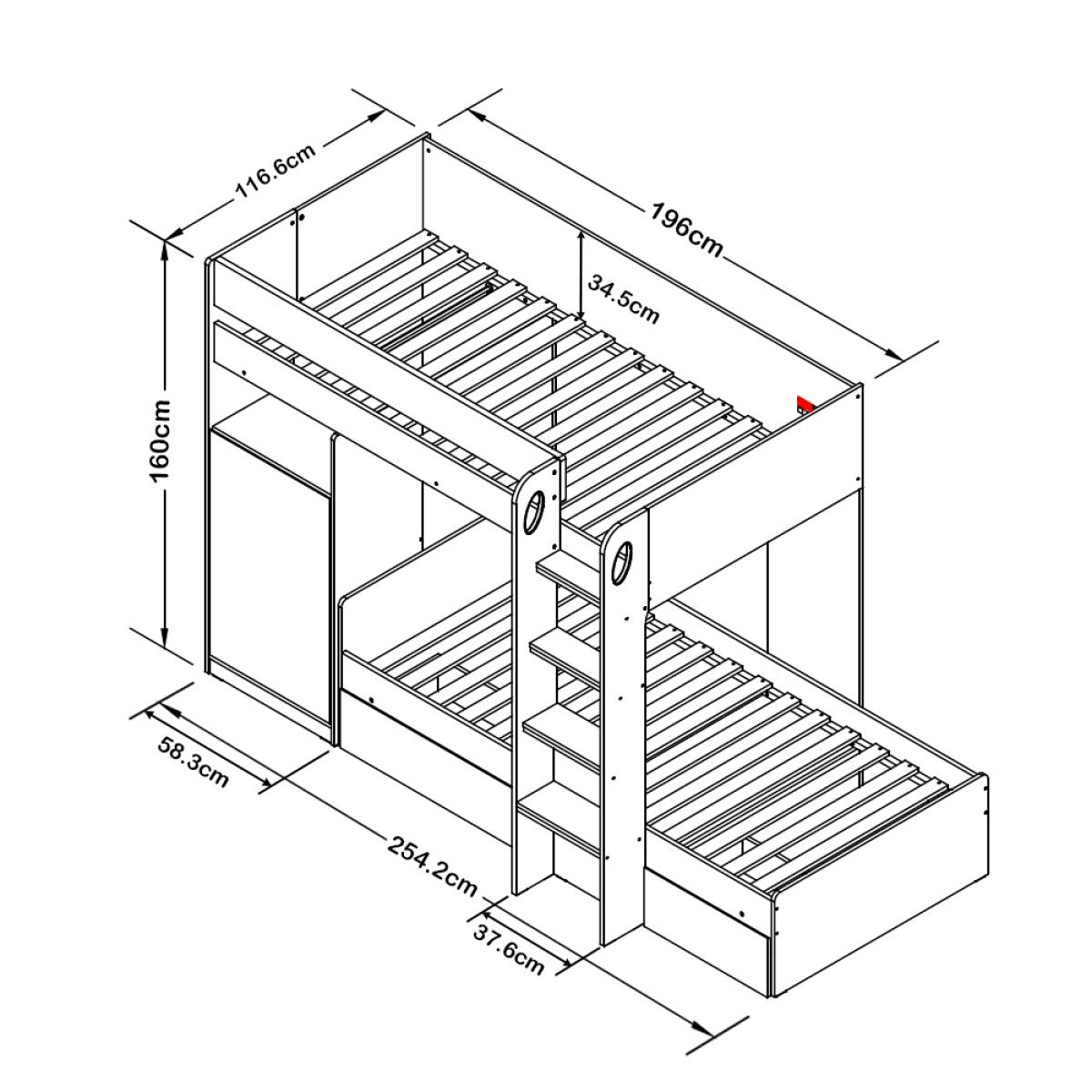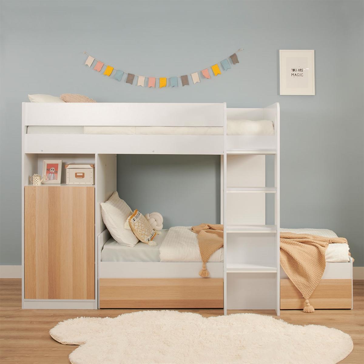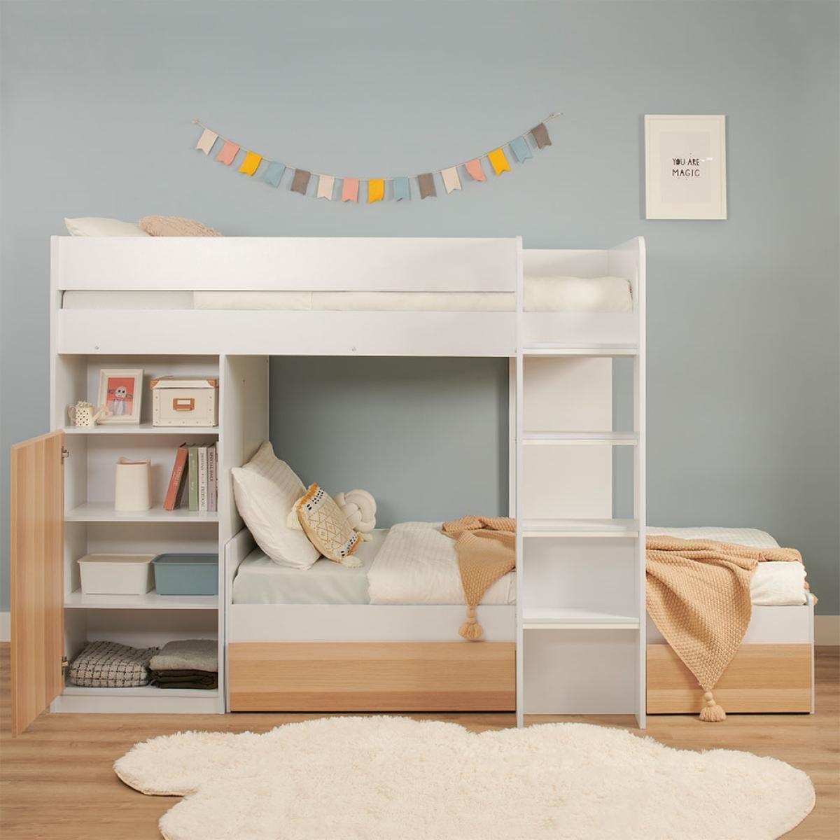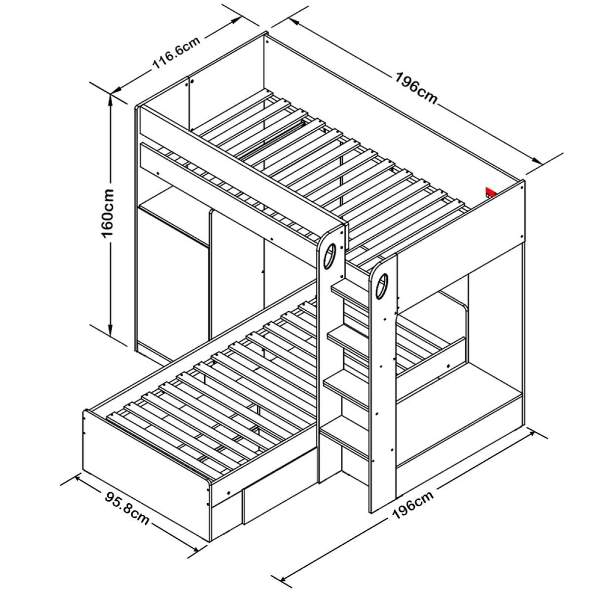 Leo L Shaped 2 in 1 Combination Bunk Bed with Storage