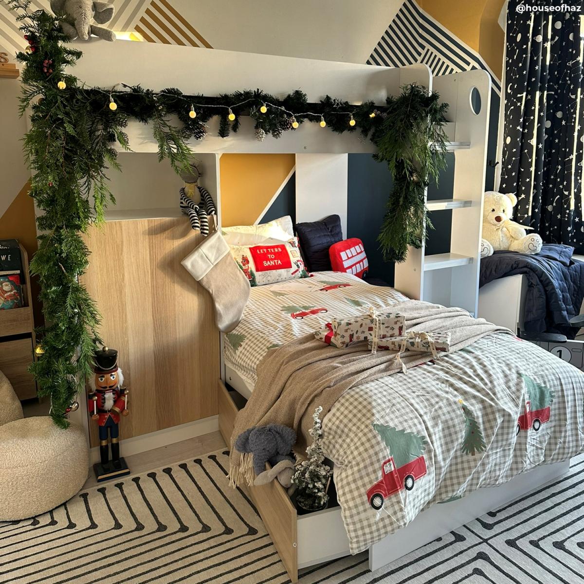 I really like this Leo L Shaped Bunk Bed because of its practical design and versatility, making it ideal for space-conscious interiors. It works well in contemporary or Scandi-style bedrooms with a neutral colour palette, adding warmth with natural wood accents and soft textiles. The built-in storage is a clever feature that helps keep the room tidy, while the combined bunk design offers flexibility for family rooms or sleepovers. For styling tips, add coordinated bedding in calming colours, incorporate playful or personalised accessories on the shelves, and keep the overall look simple to highlight its functional yet sleek aesthetic. It’s a smart choice for parents who want a stylish, space-efficient solution that grows with their children.