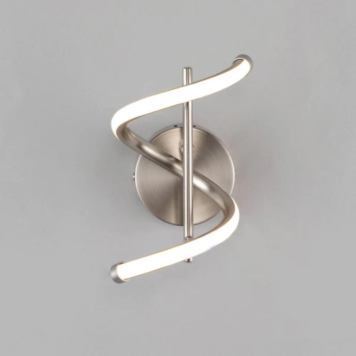 Accent your modern home with the Leo LED Swirl Wall Light in Satin Nickel. The satin nickel finish gives this wall light a sleek contemporary feel. The spiral shape makes the Leo distinctive.
