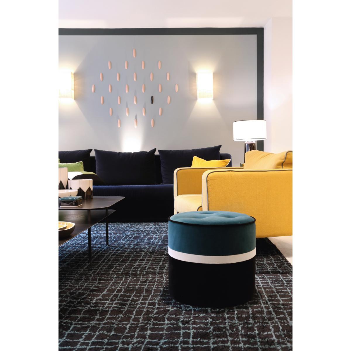 This is an ultra-comfortable padded pouf with a refined and glamorous spirit. It’s covered entirely with a luxurious velvet that feels warm and silky to the touch. A superb pallet of intense and vibrant colours gives the pouf a strong character and personality. It is Léo’s details that give it so much charm: it has three buttons decorating the seat and the pouf’s contour is spotlighted with an elegant piping. This pouf will bring a certain cosy conviviality into your home. It would be ideal in a living room or to create a chic lounge area in any room of the house: a bedroom, entrance or walk-in dressing room.