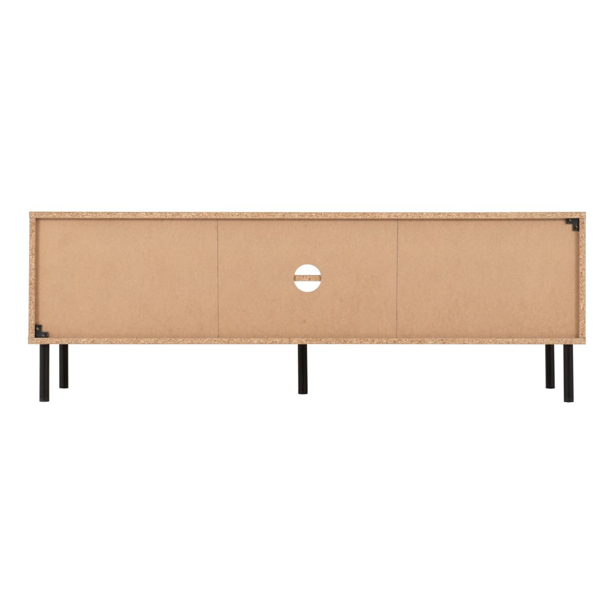 * Medium Oak Effect* Wood Grain Finish* Sleek Metal hardware This TV stand features a stunning medium oak effect piece with wood grain finish and sleek black metal hardware. This flat pack unit offers both style and practicality, featuring ample storage behind two doors to neatly organise media essentials while adding a touch of contemporary elegance to your living space.