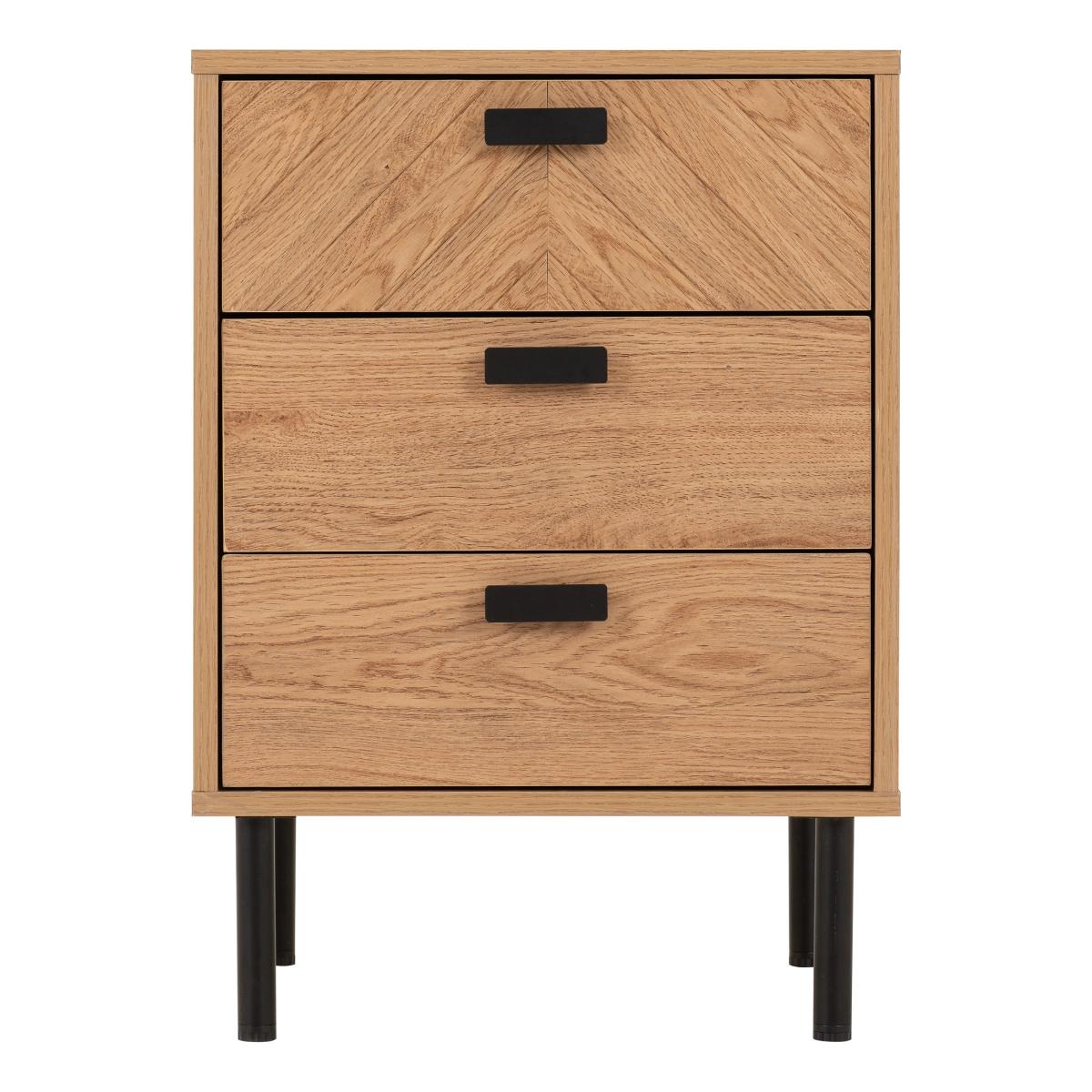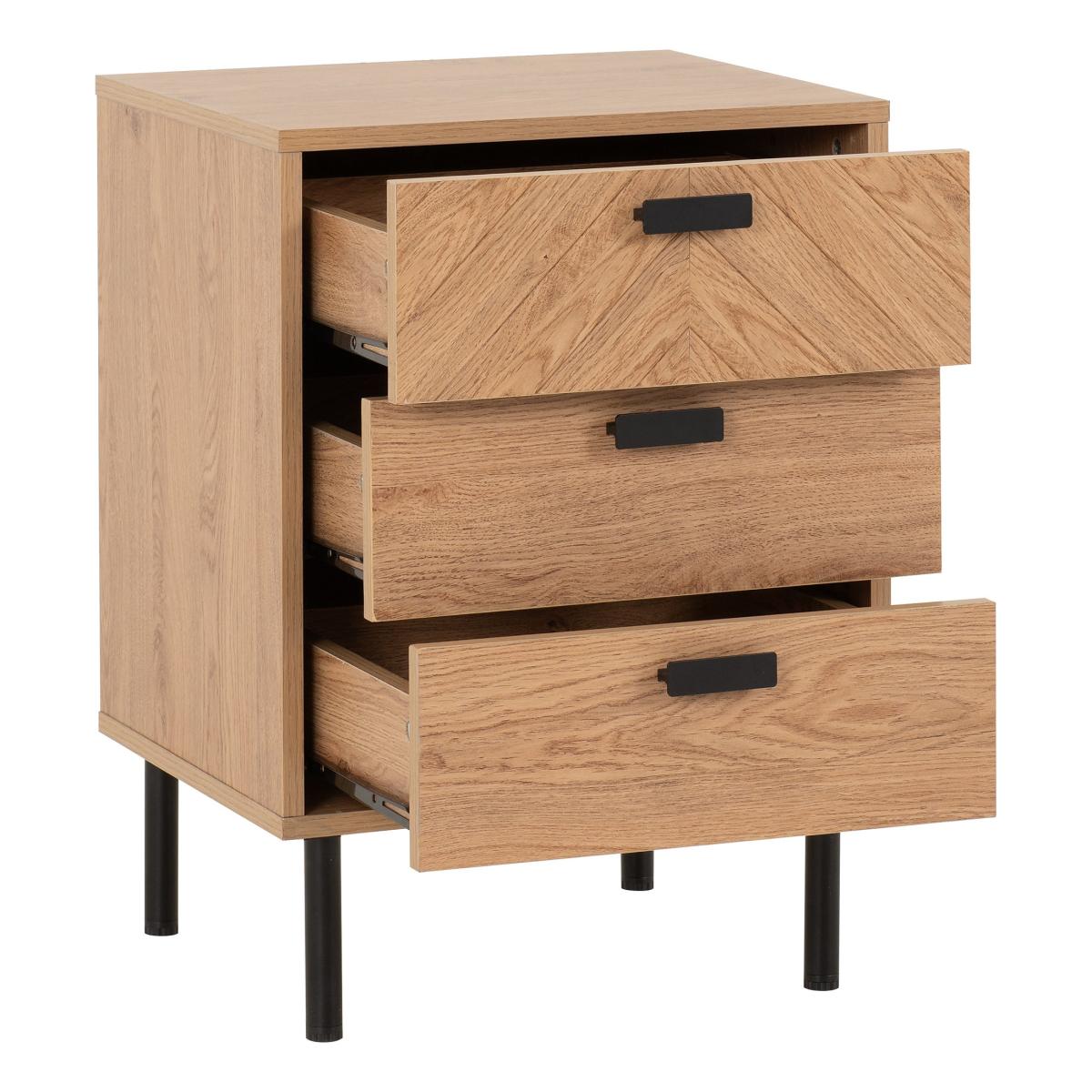 Leon 3 Drawer Bedside Table, Oak Effect Oak