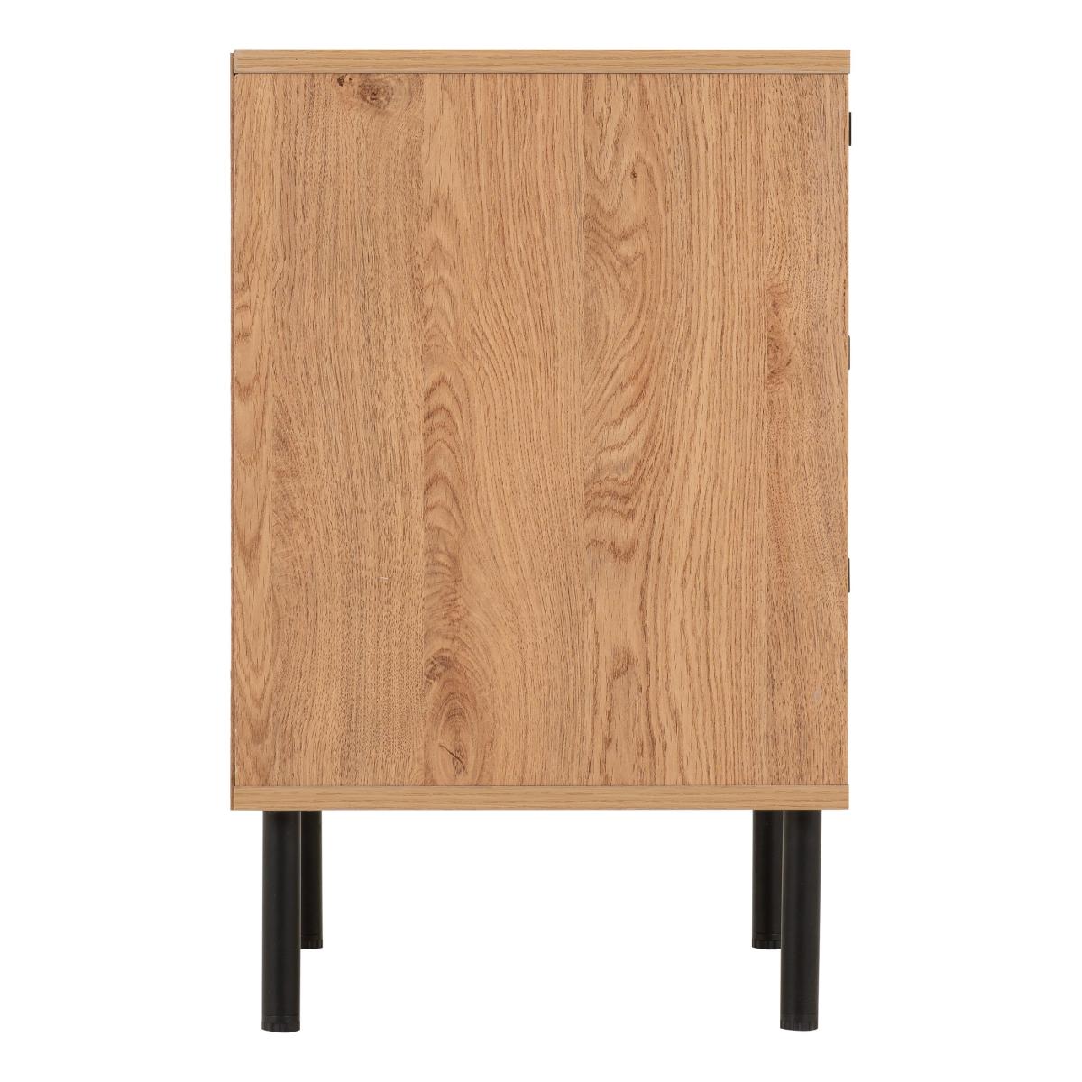 * Medium oak finish* Sleek black metal hardware* 3 spacious drawers Featuring a stunning medium oak effect with a rich wood grain texture, this bedside table brings warmth and elegance to your space. The sleek black metal hardware adds a contemporary touch, making it a versatile addition to any decor. This bedside table offers convenient storage with its three spacious drawers, ideal for organising books, personal items, and more.