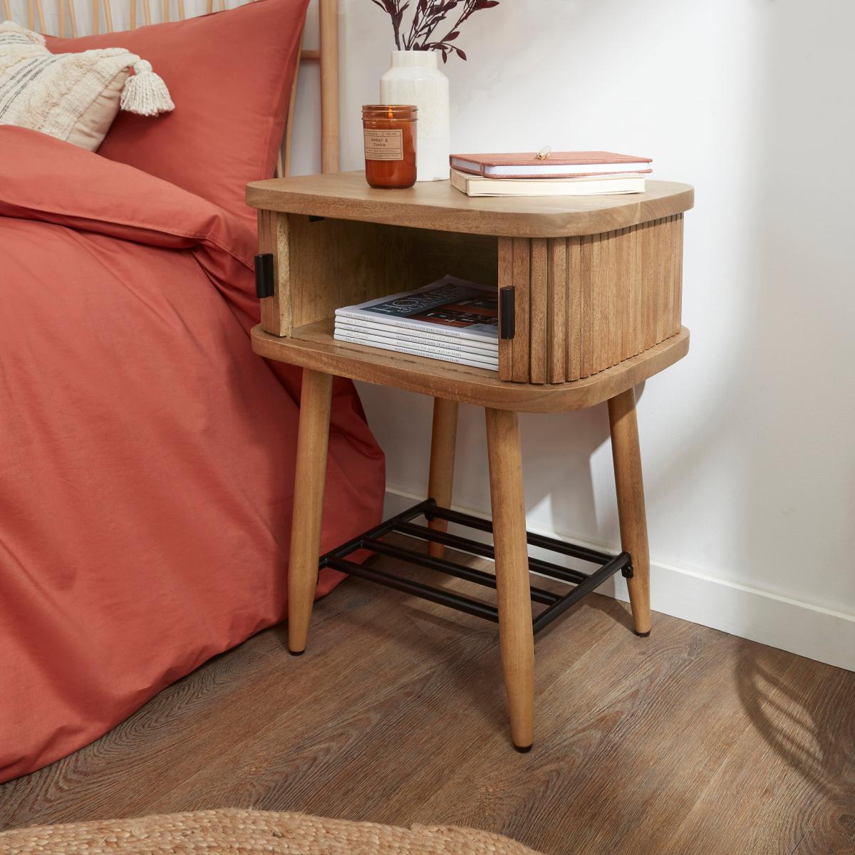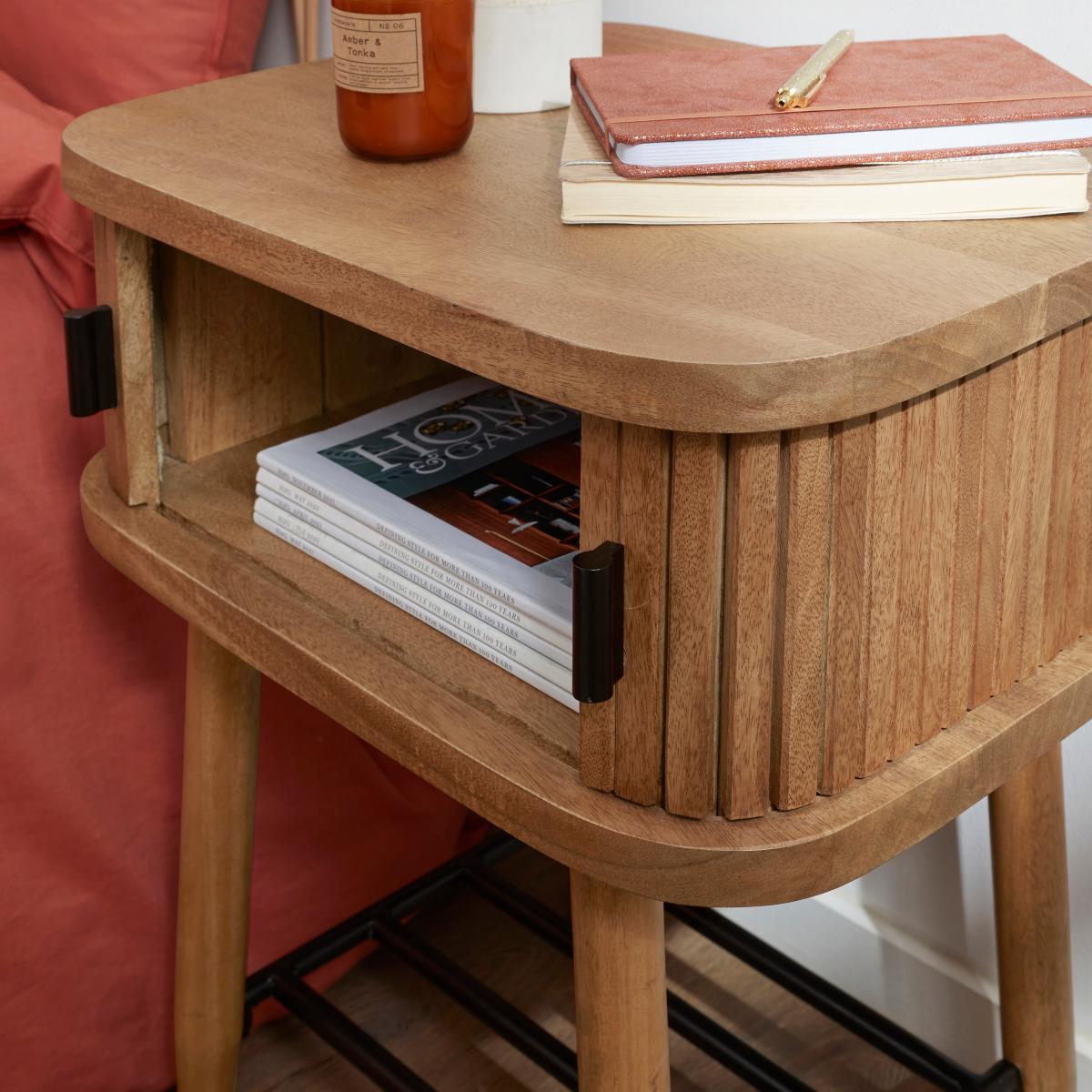 Leona 2 Door Bedside Table, Mango Wood Natural