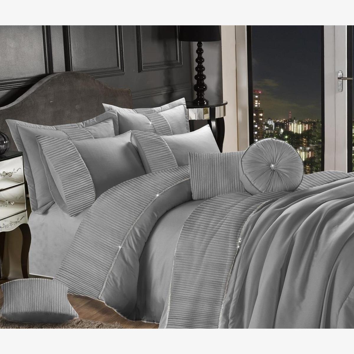Style your room with that sense of luxury with this Leona duvet quilt set. Featuring a stunning, modern design conisiting of various diamante edges. With a soft and warming design, this duvet cover set is perfect for giving any room that modern, eye-catching look and cosy feel. The diamante embellished patterndesign is only at the top of the duvet cover, the rest is plain. No cushions in the image are included
