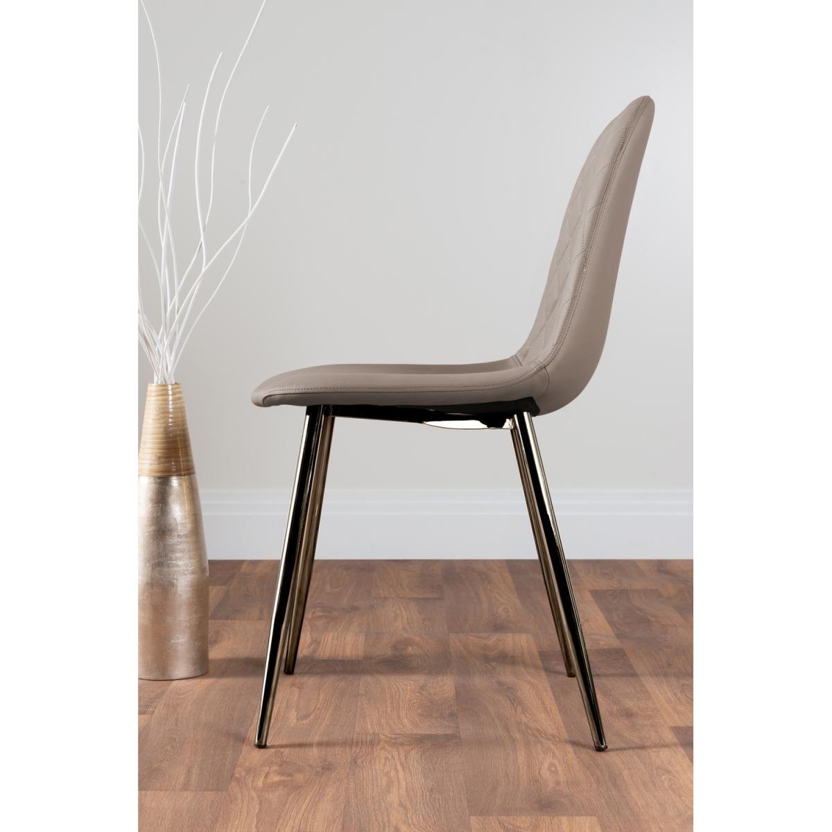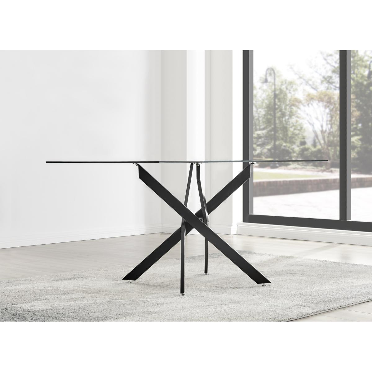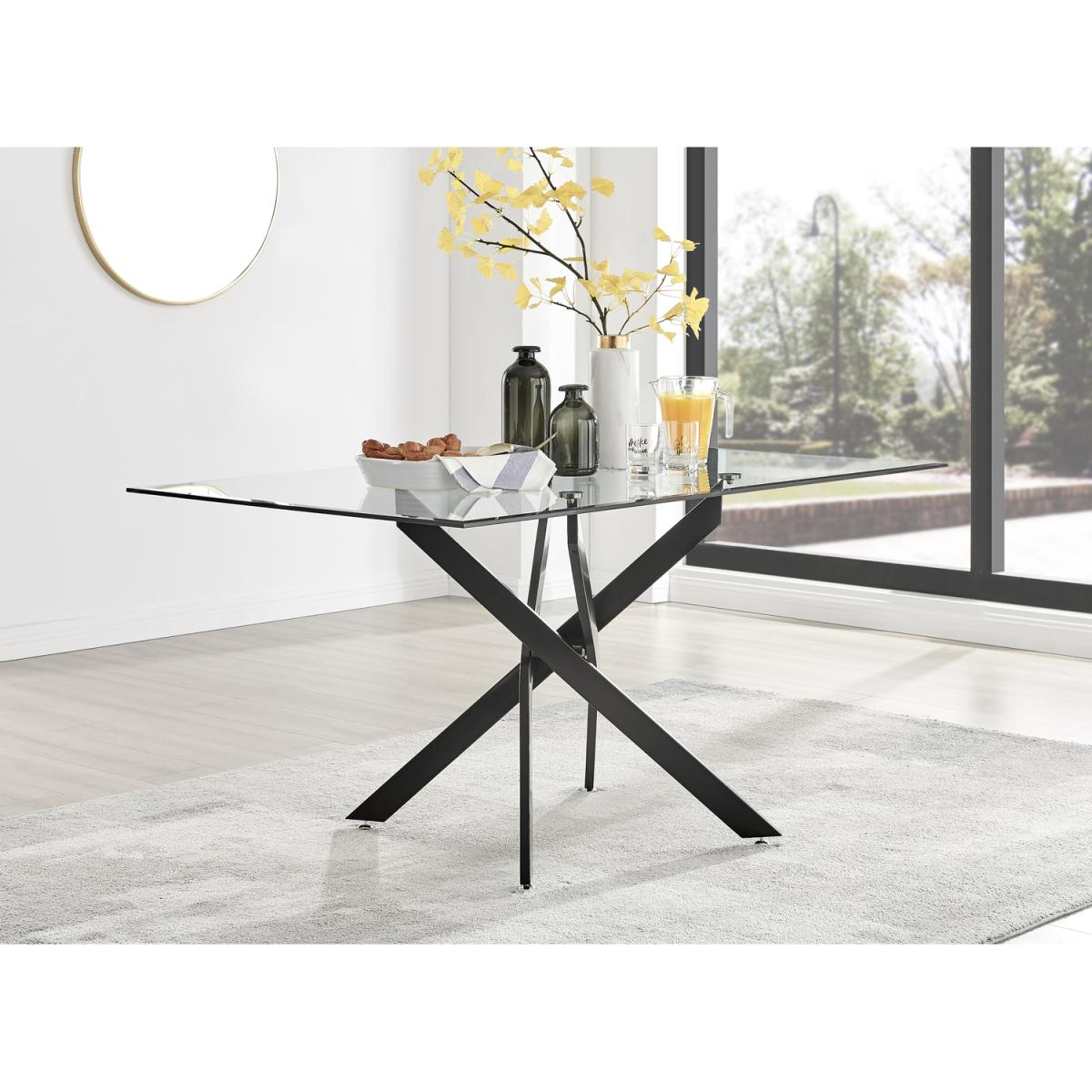 Impressively combining minimalist design with classy modern style, the Leonardo table will transform your dining room. The dining table is made from a combination of black metal and clear tempered glass, giving a bright and spacious feel to your dining space and creating a light open look. Featuring a spacious 150x90cm bevelled top surface there is ample space for up to 6 guests, with the hardened glass table top providing superior resistance to damage. Converging in a sleek nest shape the table legs create a unique look whilst also providing great stability for the table. Styled with our statement Corona chairs, this set is a perfect balance of pattern and texture. The sleek chrome effect legs add an accent of lustre to your home. The Scandi-style faux leather seat with diamond pattern stitching is a unique take on a classic design offering comfort and durability for everyday use.