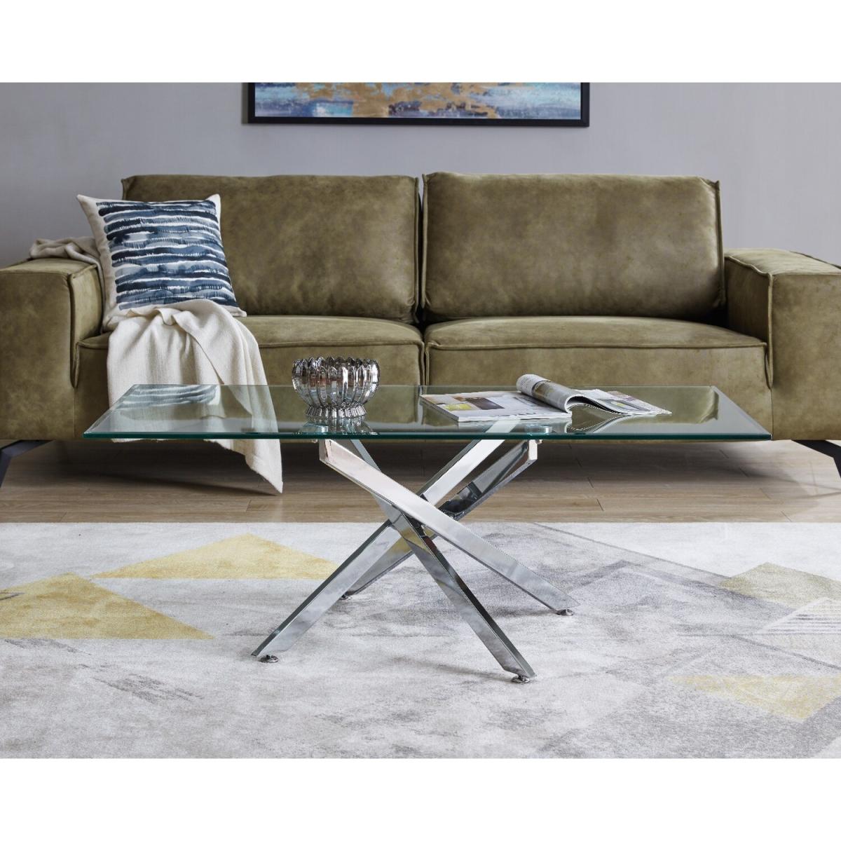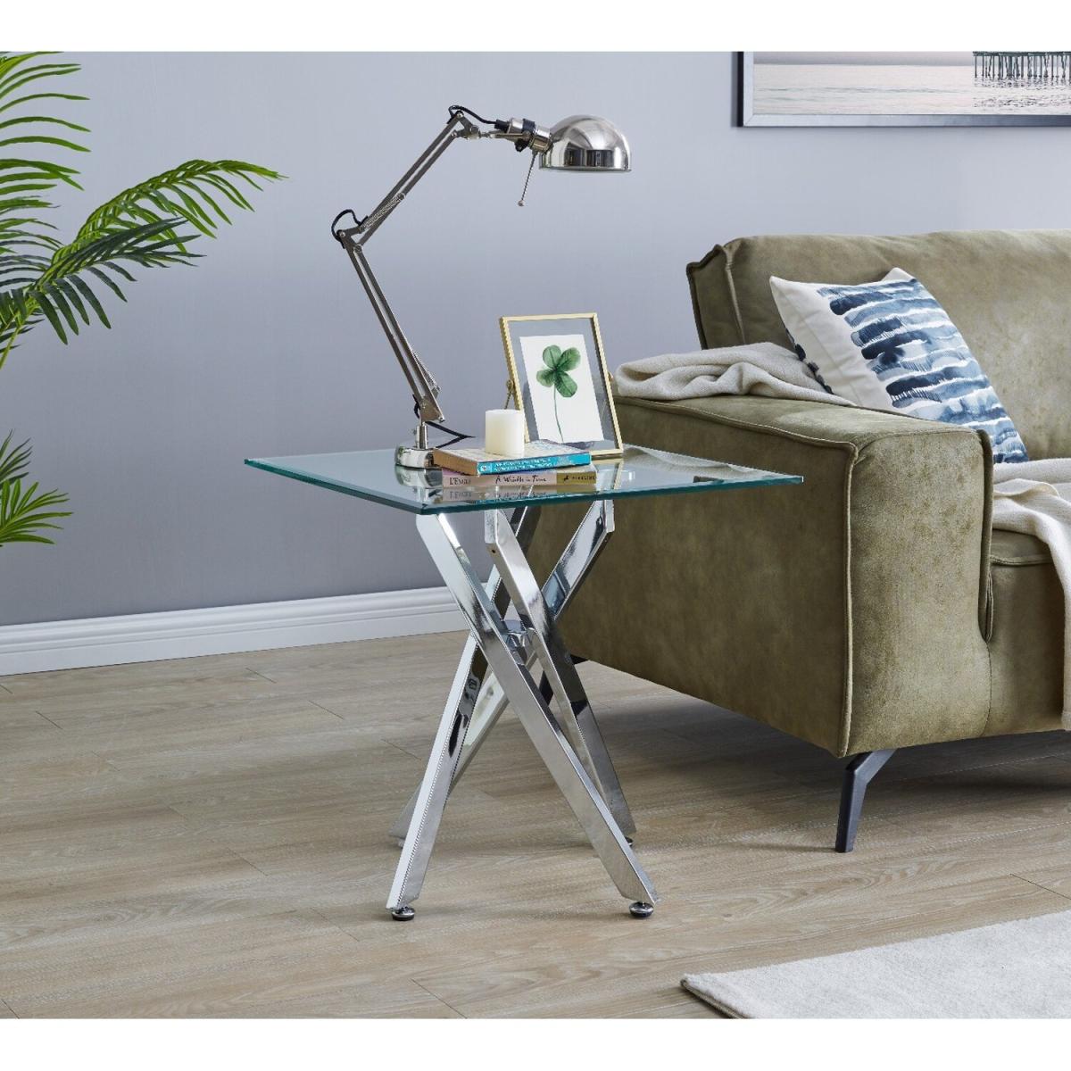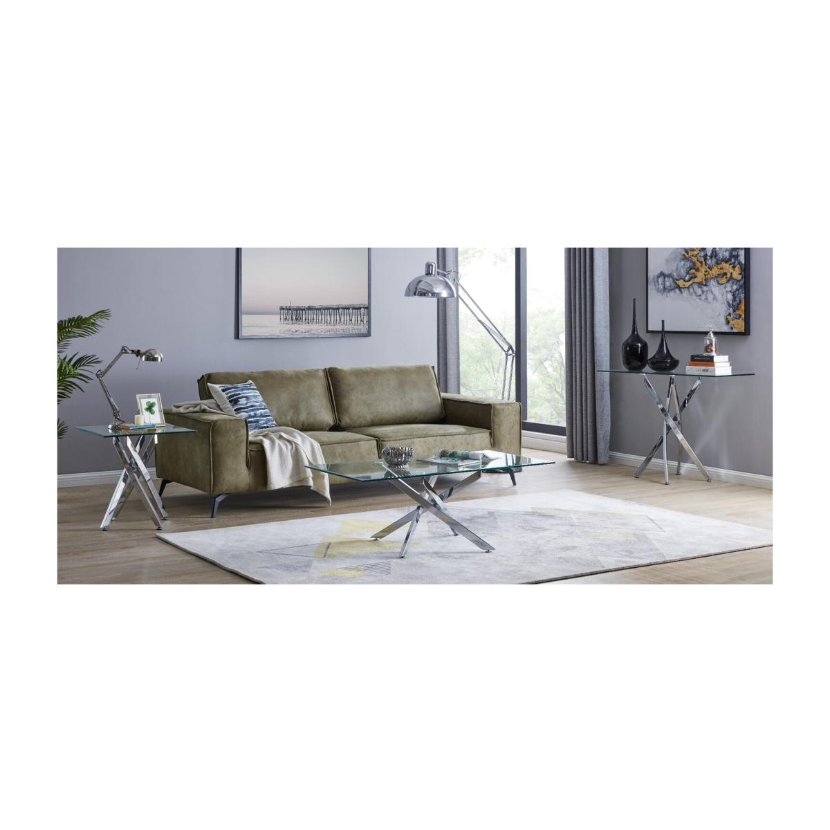 A classic combination of glass and chrome with a contemporary twist, the Leonardo living room set would be a brilliant addition to any modern living space. The table tops are made from 8mm thick clear tempered bevelled glass and the sculptural legs finished in chrome, provide sturdy support for the glass top as well as providing a modern and stylish look. The Leonardo set will truly make heads turn, and are a must-have piece for stylish interiors. The Leonardo set comprises a side end, console and coffee table creating the complete look!