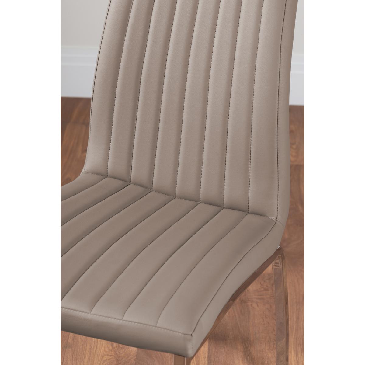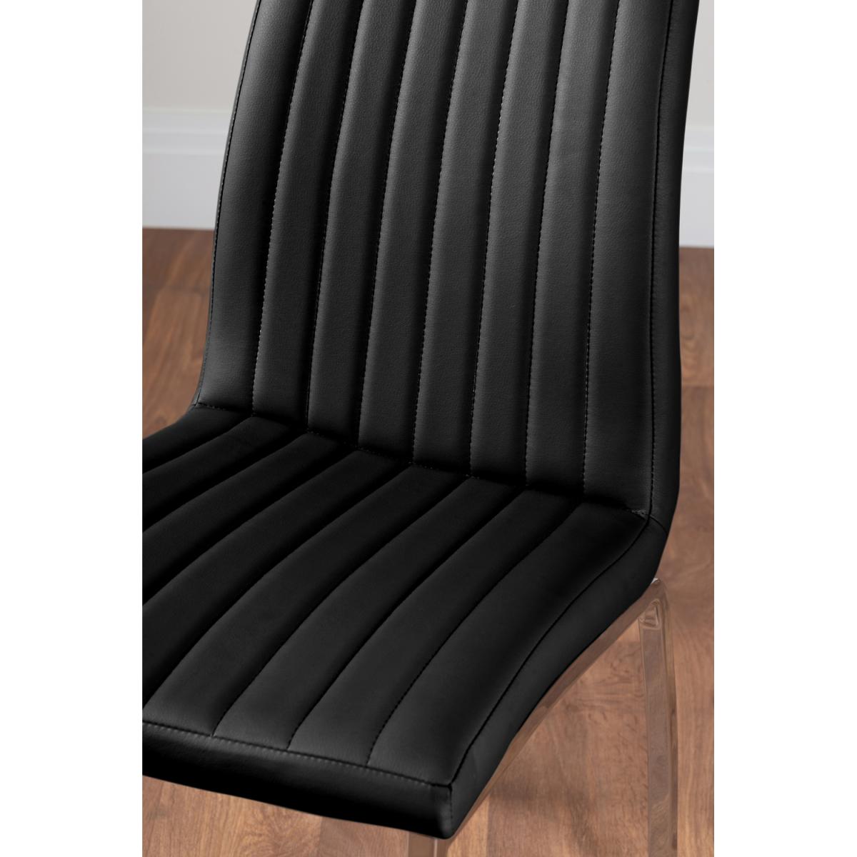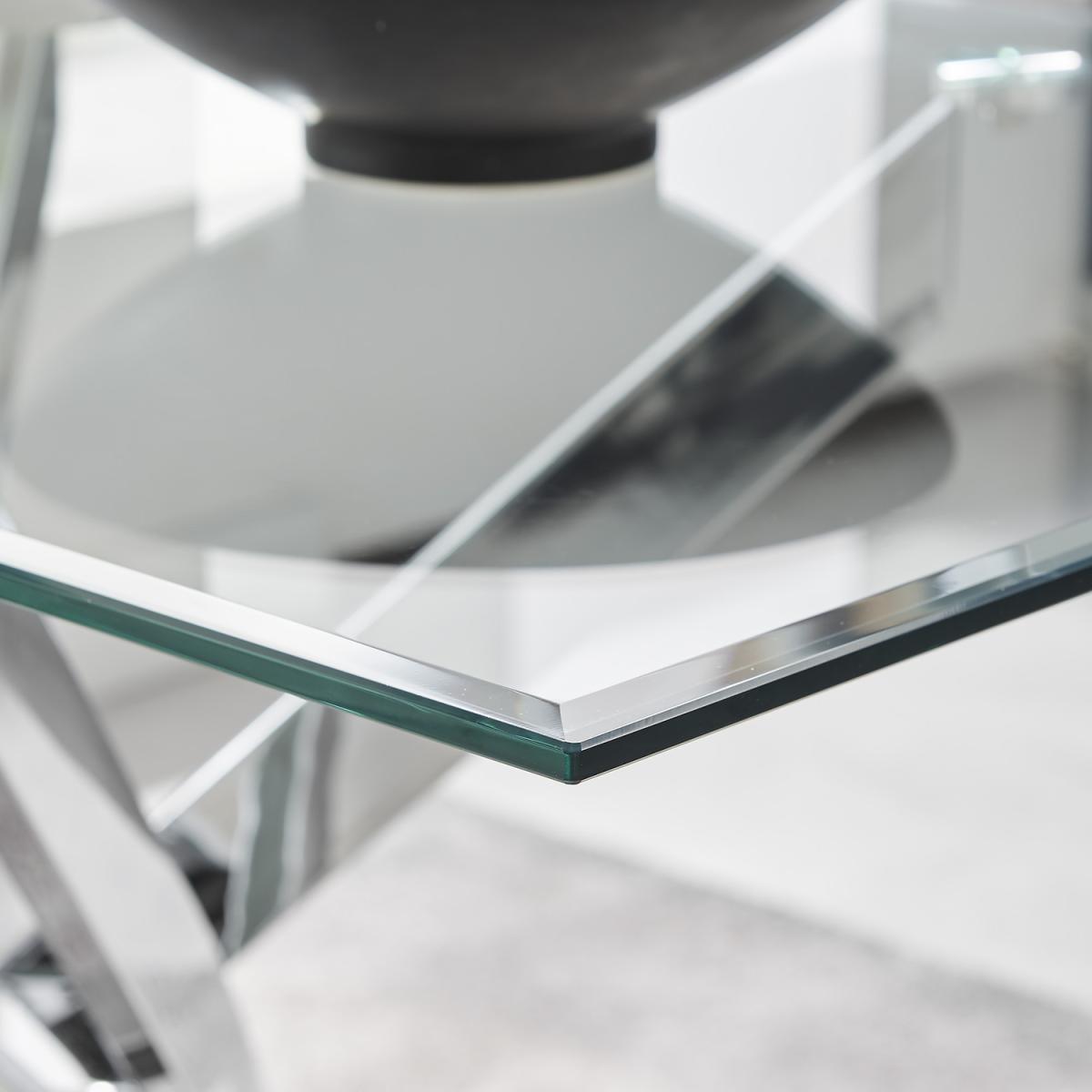 Impressively combining minimalist design with classy modern style, the Leonardo set will transform your dining room. The dining table is made from a combination of chrome metal and clear tempered glass, giving a bright and spacious feel to your dining space and creating a light open look. Featuring a large 150x90cm bevelled top surface there is ample space for up to 6 guests, with the hardened glass table top providing superior resistance to damage. Converging in a sleek nest shape the table legs create a unique look whilst also providing great stability for the table. Pair the Leonardo table with our Isco chairs for a complete look. Clean lines combine with comfort and texture to make the Isco chair the ideal choice in understated style, the perfect partner for any design of the table. The soft-touch faux leather seat pads are inter-spaced with vertical stitching and are designed for comfort with the bonus of looking great. Value for money with style combine to make an unbeatable package!