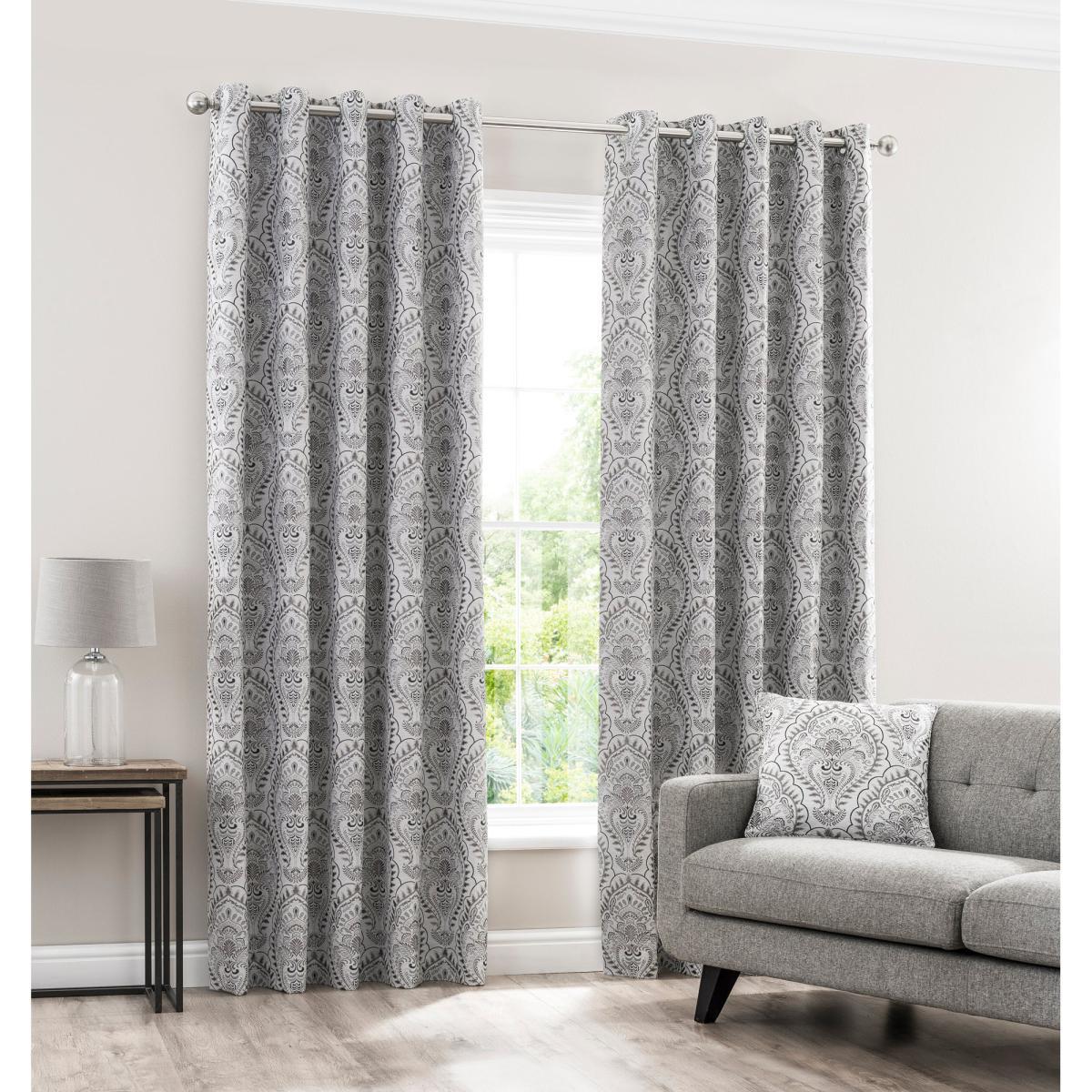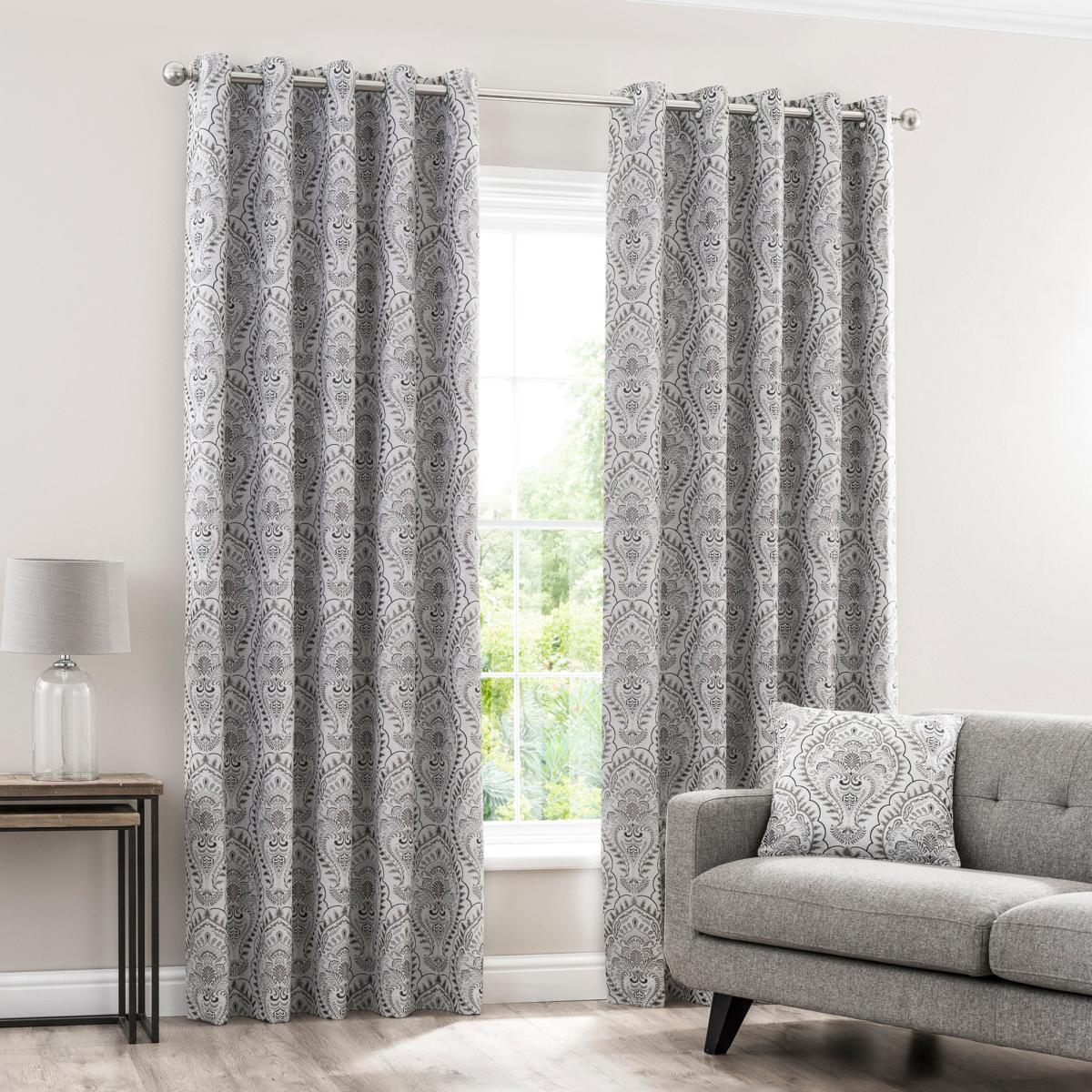 Complete with a classic jacquard design with a contemporary fresh modern look, this pair of curtains have been crafted from quality materials with a luxuriously soft surface and a modern eyelet heading suitable to compliment all types of decor. Ideal to provide added privacy by blocking the view inside the room from the outside, these curtains are fully lined for added insulation. Please note: these curtains are sold as a pair.