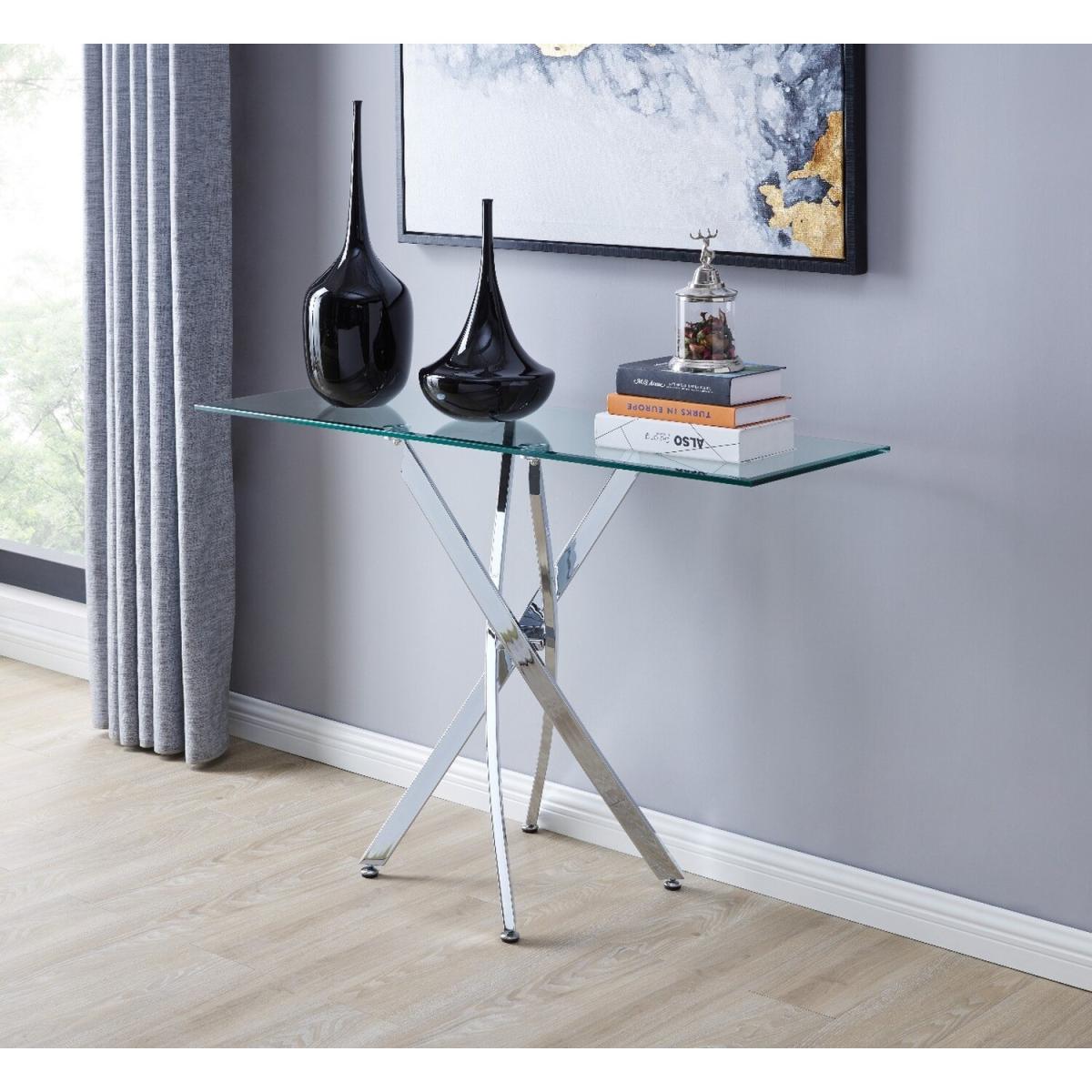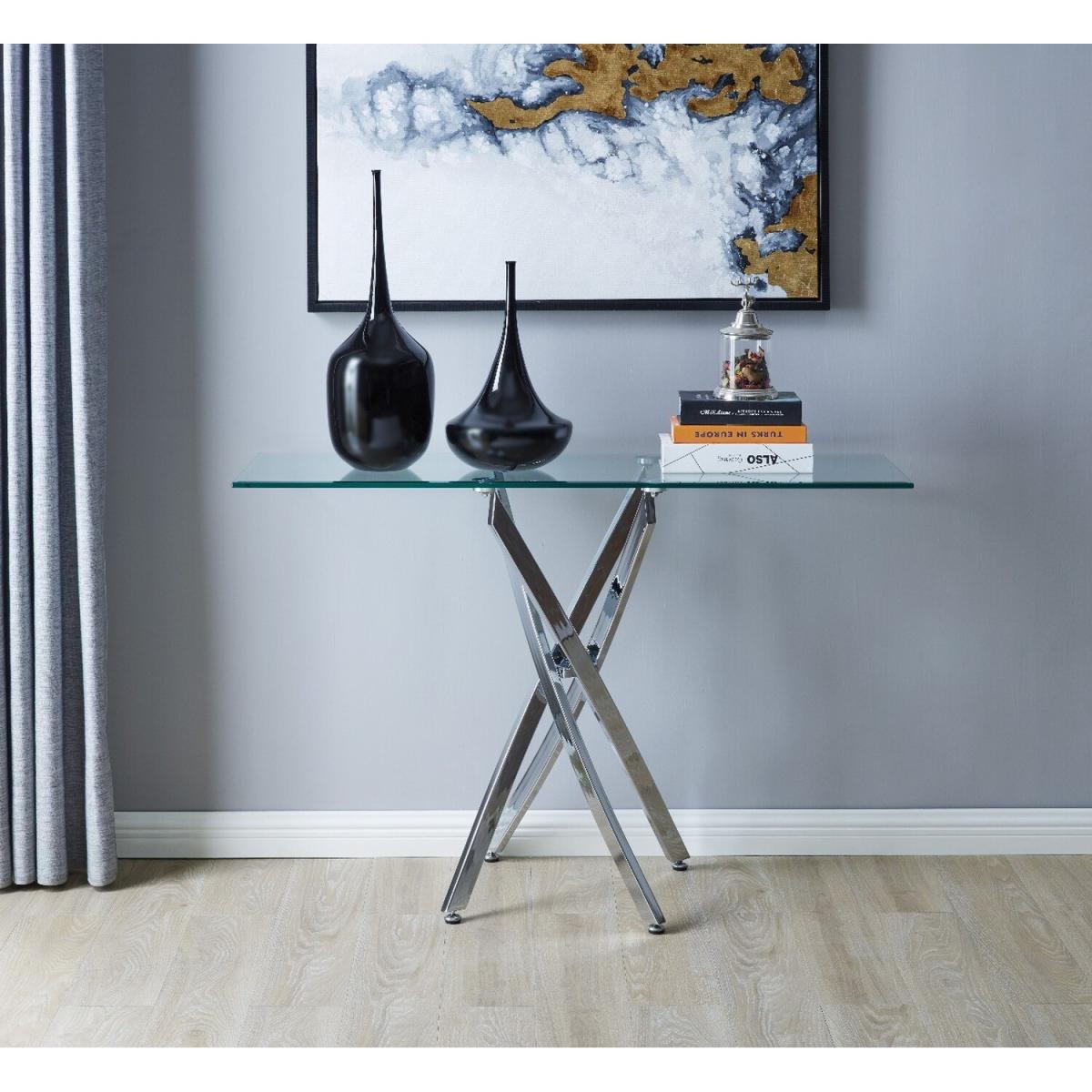 A classic combination of glass and chrome with a contemporary twist, the versatile Leonardo Console Table is a must-have piece for any modern living space, walkway or entrance hall. New to the Leonardo range, this spectacular console table is a perfect balance of design and function and is a must-have accessory for stylish interiors. Manufactured with a bevelled tempered safety glass top and sculptural chrome legs, this stunning console table will truly make heads turn! Complete the look with the Leonardo Dining Table, Side Table and Coffee Table, all available with free next day delivery.