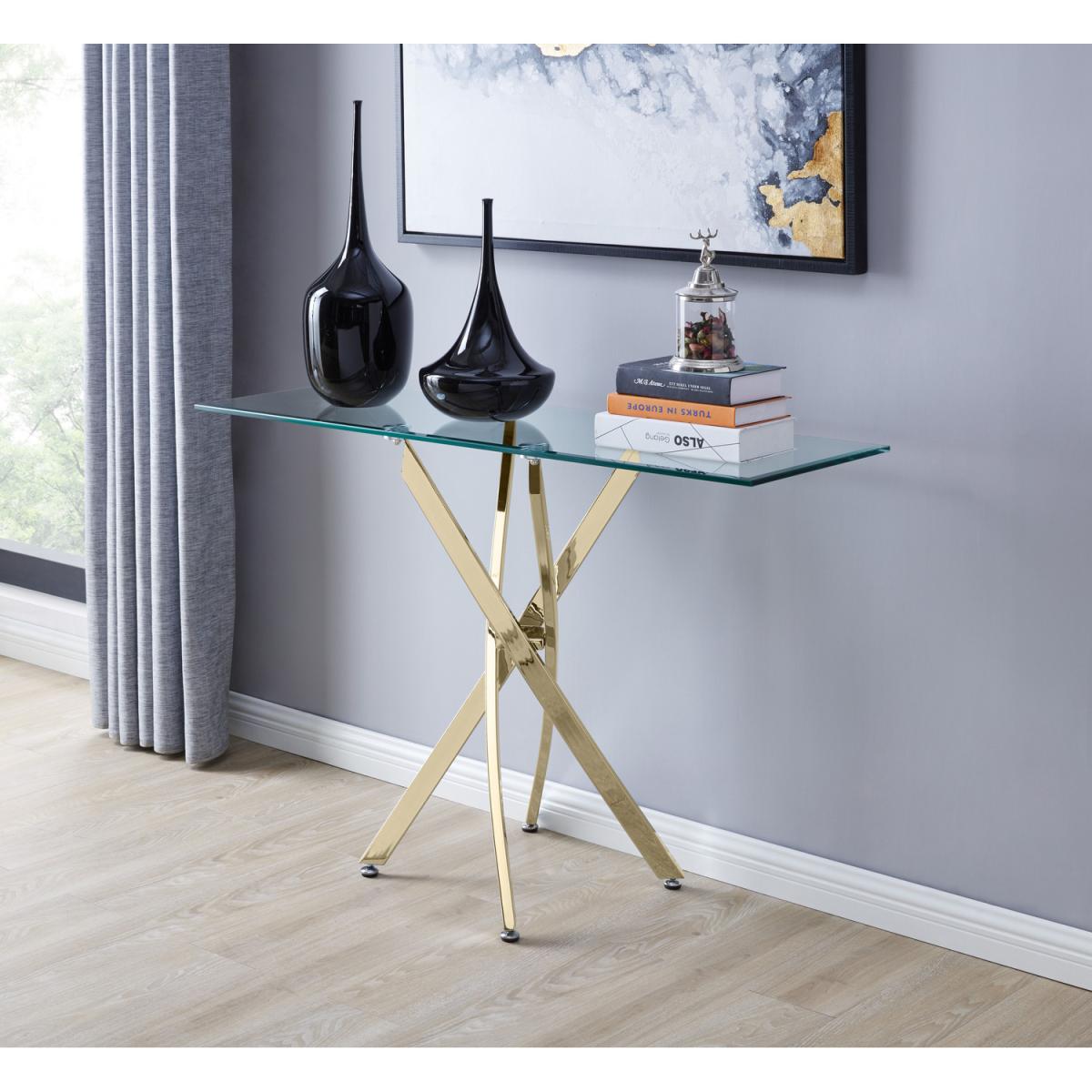 A classic combination of glass and chrome with a contemporary twist, the versatile Leonardo Console Table is a must-have piece for any modern living space, walkway or entrance hall. New to the Leonardo range, this spectacular console table is a perfect balance of design and function and is a must-have accessory for stylish interiors. Manufactured with a bevelled tempered safety glass top and sculptural gold finish legs, this stunning console table will truly make heads turn! Complete the look with the Leonardo Dining Table, Side Table and Coffee Table, all available with free next day delivery.
