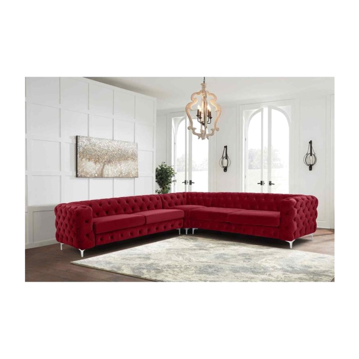 Leonardo Large Corner Sofa in Velour Fabric - Red