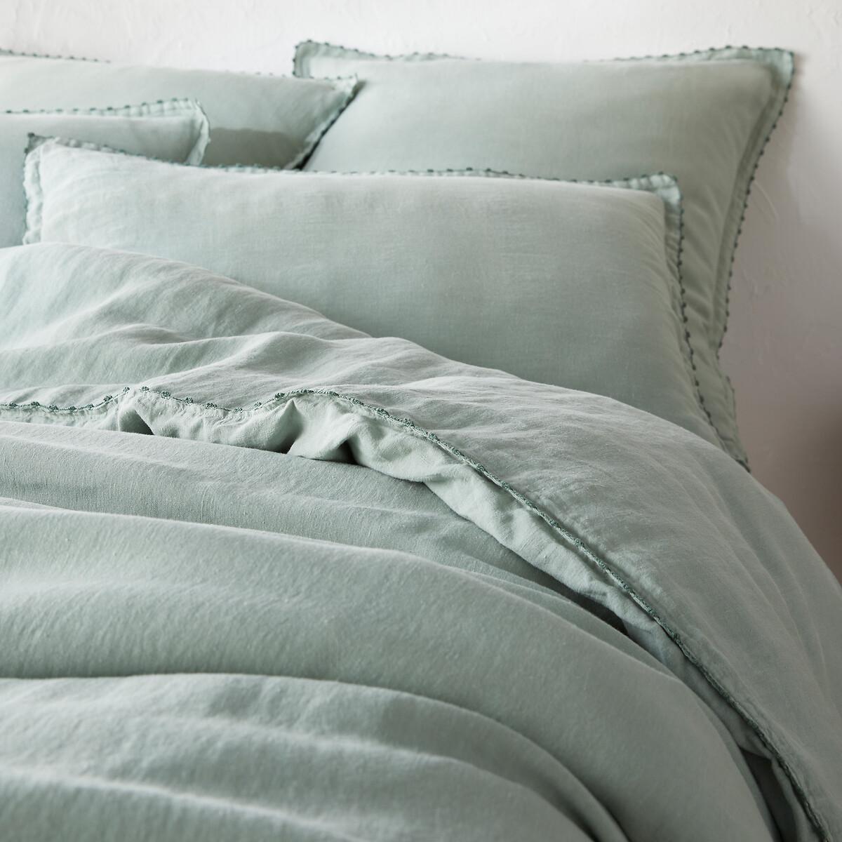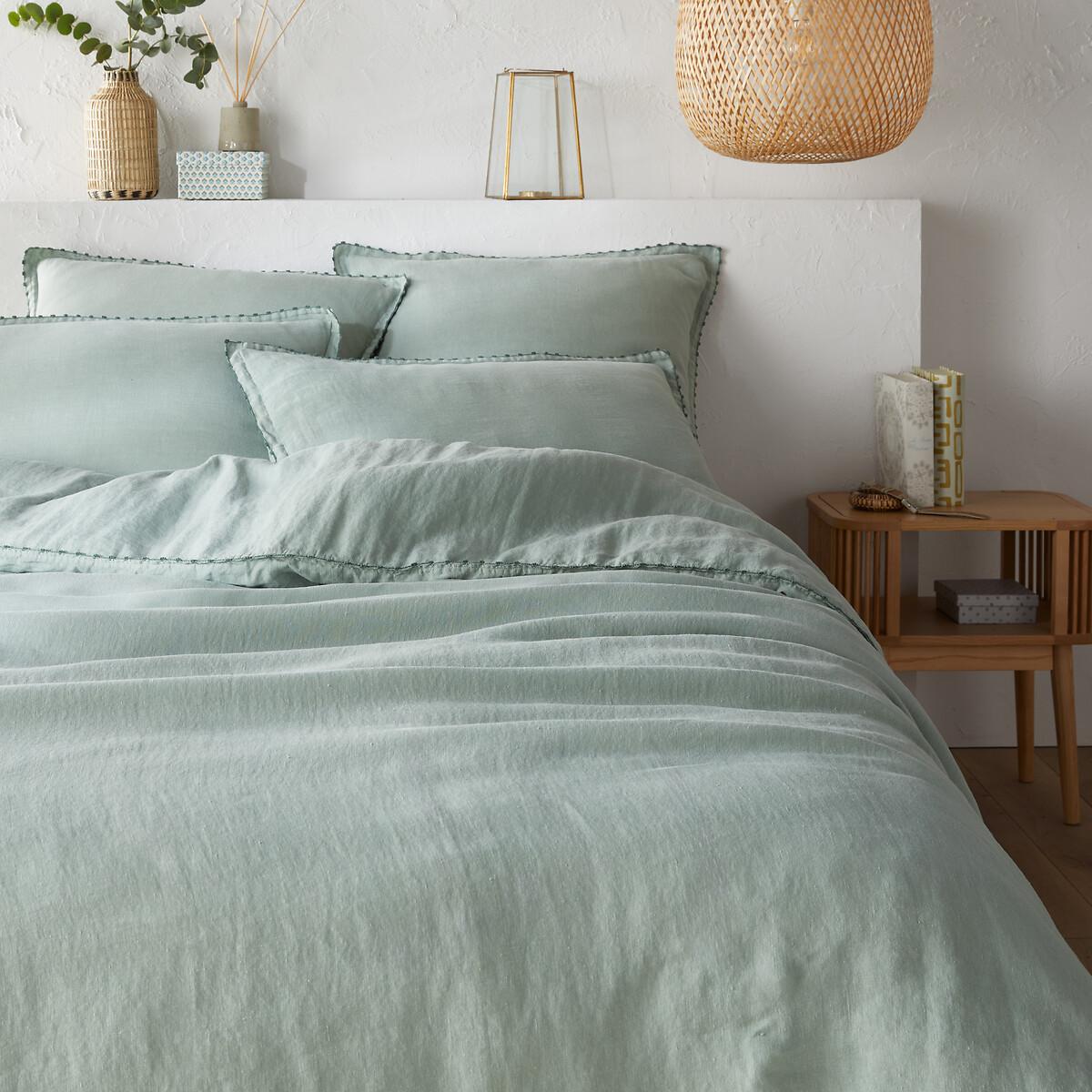 The Leone set, in ultra-soft washed linen, combines comfort and voluptuousness. Available in warm colours, enriched with a contrasting crochet border, it will bring a refined touch to your room. A fresh material in summer and comfortable in winter, washed linen becomes softer and more beautiful with every wash.. Slightly wrinkled, it does not require ironing. Product Details • 100% linen • Straight buttoned hem Care Advice • Machine washable at 40°CSizes • 140 x 200cm: Single • 200 x 200cm: Double • 240 x 220cm: King • 260 x 240cm: Super King • Made in Europe. • OEKO-TEX® Standard 100. Standard 100 certification by OEKO-TEX® tests textile products for harmful substances via an independent, international label.
