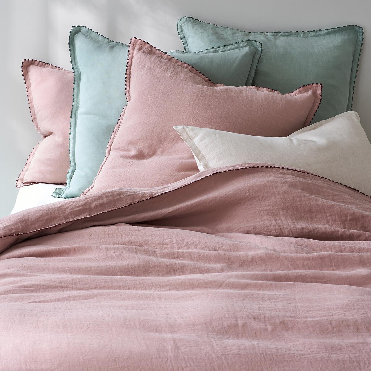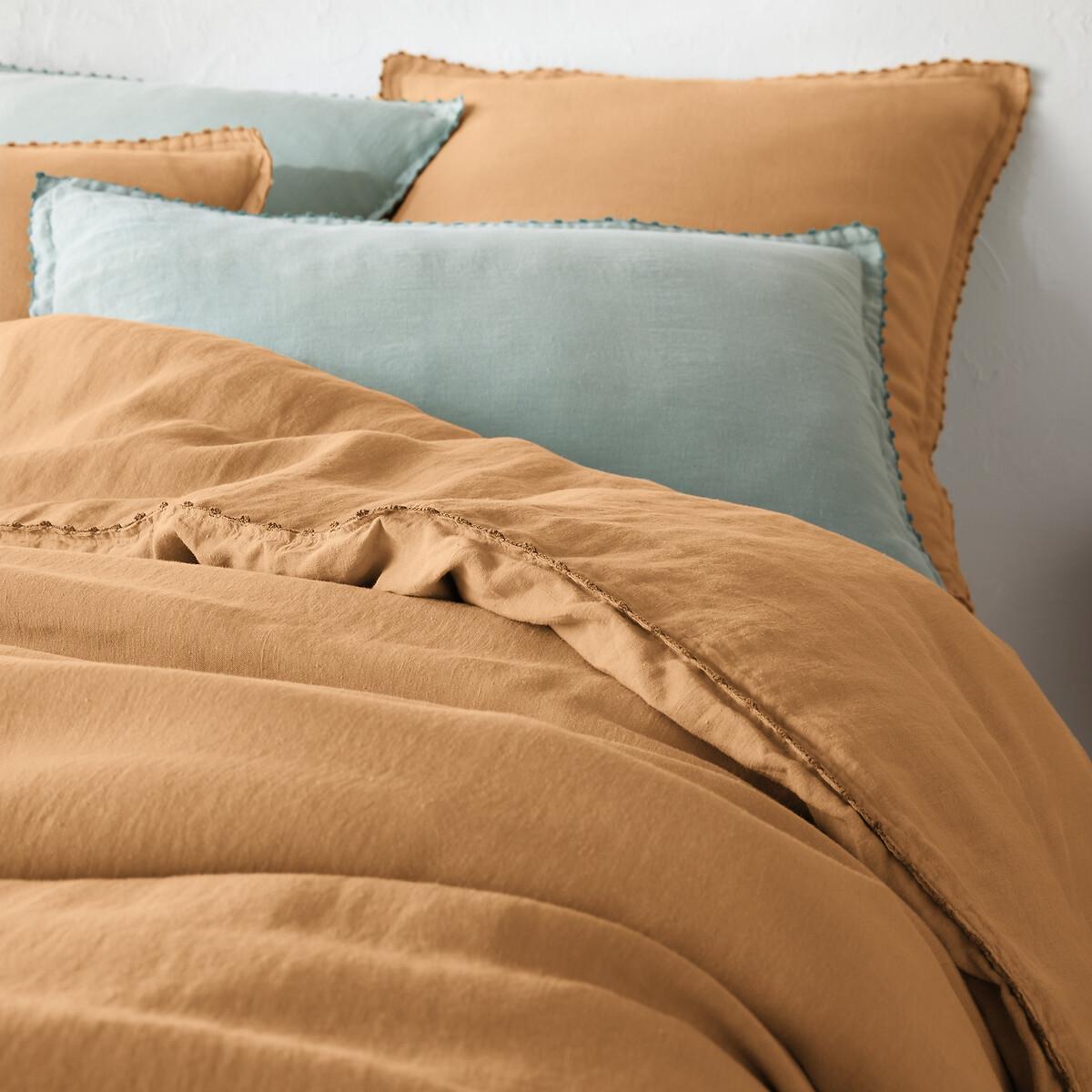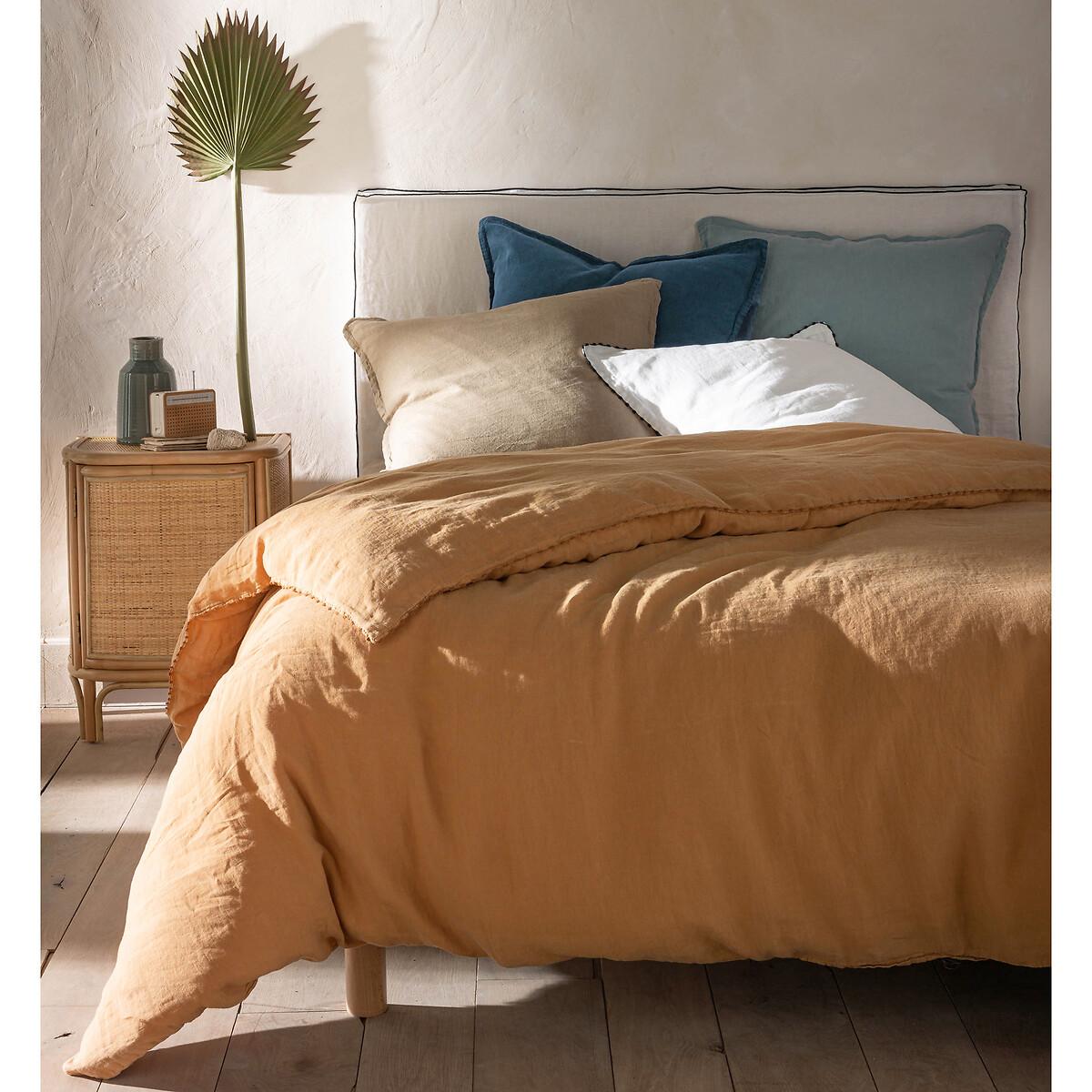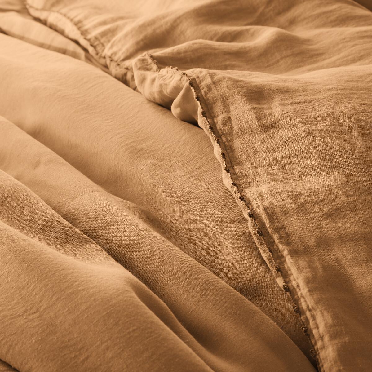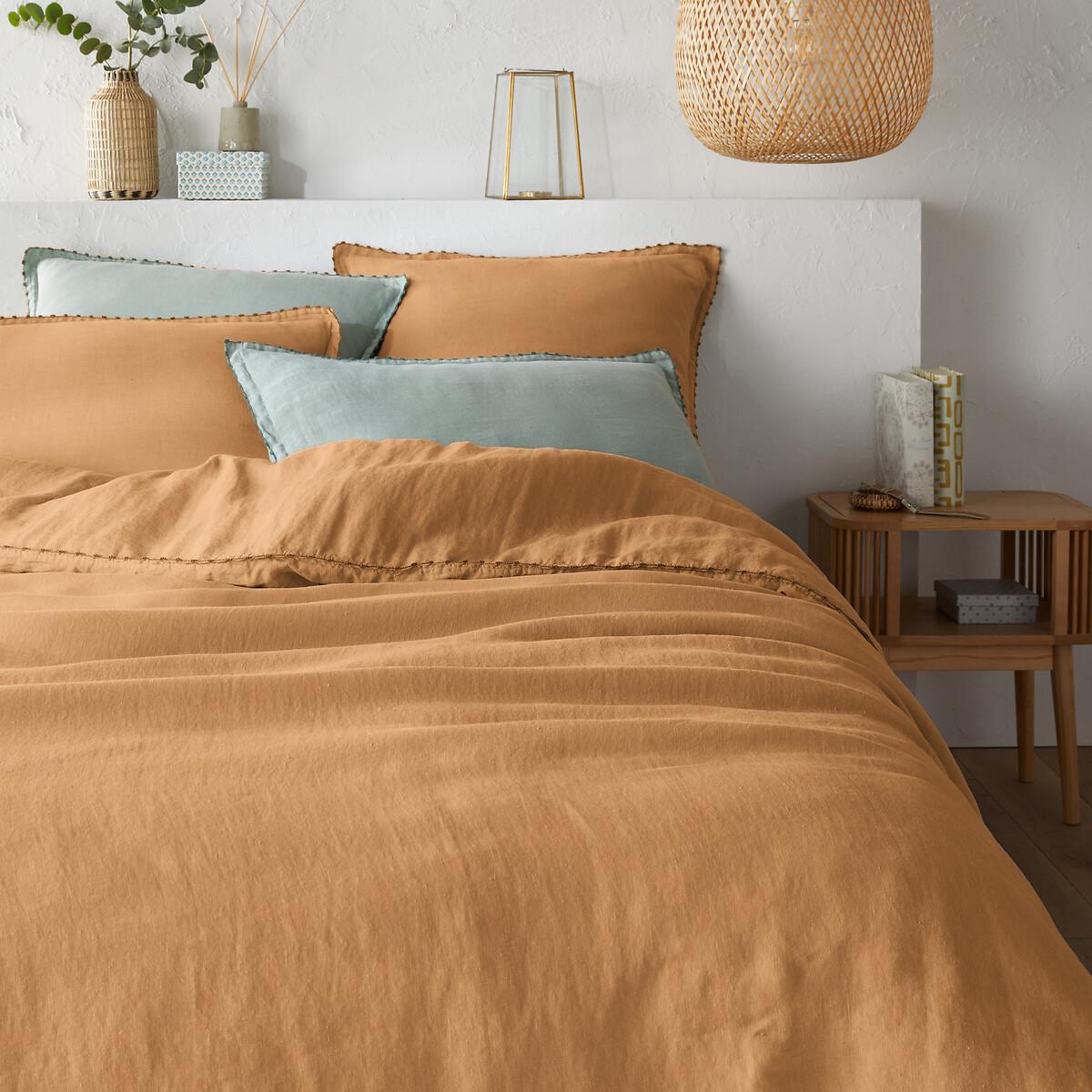 The Leone set, in ultra-soft washed linen, combines comfort and voluptuousness. Available in warm colours, enriched with a contrasting crochet border, it will bring a refined touch to your room. A fresh material in summer and comfortable in winter, washed linen becomes softer and more beautiful with every wash.. Slightly wrinkled, it does not require ironing. Product Details • 100% linen • Straight buttoned hem Care Advice • Machine washable at 40°CSizes • 140 x 200cm: Single • 200 x 200cm: Double • 240 x 220cm: King • 260 x 240cm: Super King • Made in Europe. • OEKO-TEX® Standard 100. Standard 100 certification by OEKO-TEX® tests textile products for harmful substances via an independent, international label.