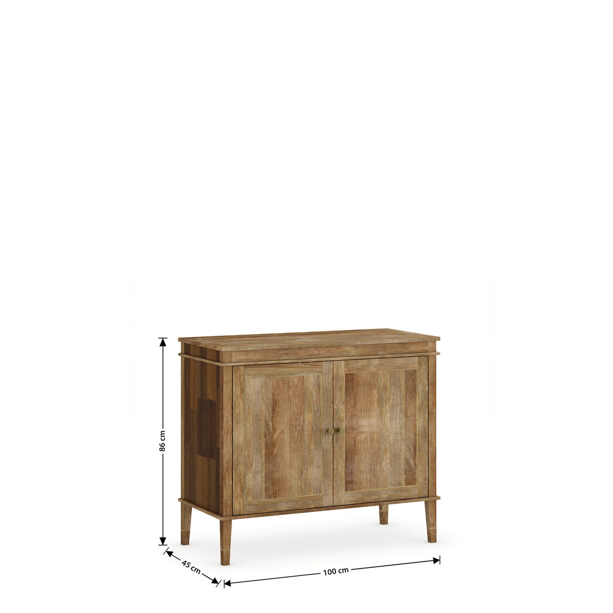 The understated style of the Leone mango wood sideboard is perfect for modern interiors. Twin doors open onto a versatile shelved storage space. Simple brass handles and detailing on the legs and doors complete the look. We're so confident our furniture is built to last, our industry-leading guarantee covers any manufacturing failure on all furniture. That's our promise, and why our furniture comes with a 10-year guarantee that you can trust. Excludes: outdoor furniture and any issues that are a result of normal wear and tear, improper care or accidental damage.