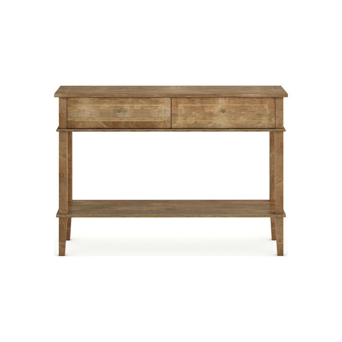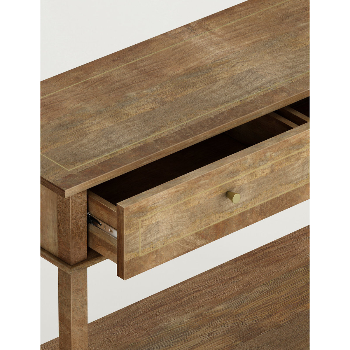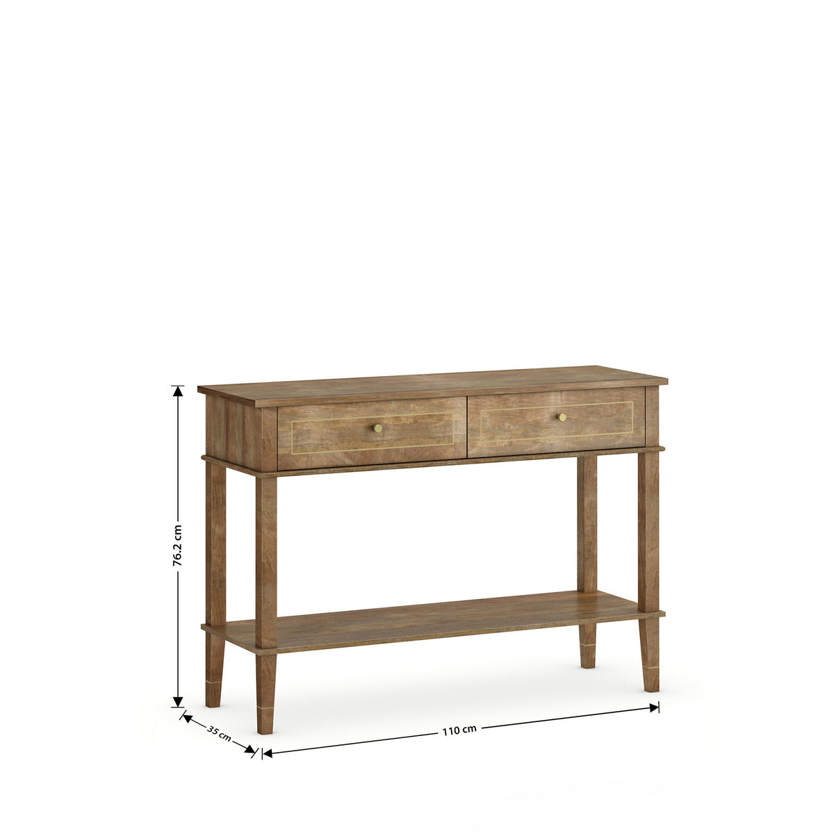 Infusing your home with a touch of rustic charm, the Leone console is made from mango wood for a natural, authentic look. Its two drawers provide ample storage for household bits and bobs. Brass inlay detailing and handles provide a modern finish. We’re so confident our furniture is built to last, our industry-leading guarantee covers any manufacturing failure on all furniture. That’s our promise, and why our furniture comes with a 10-year guarantee that you can trust. Excludes: outdoor furniture and any issues that are a result of normal wear and tear, improper care or accidental damage.
