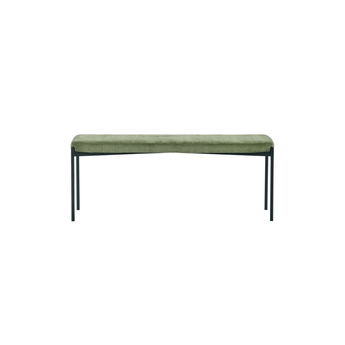 * Plush velvet upholstery * Generously cushioned seat * Slim-coated metal legs Soft curves and plush velvet make the Leonie dining bench a standout piece. Upholstered in rich velvet, it offers comfort and sophistication in equal measure. Slim black coated legs lend a modern contrast, making it ideal as seating at the dining table or a statement bench in the hallway or bedroom.