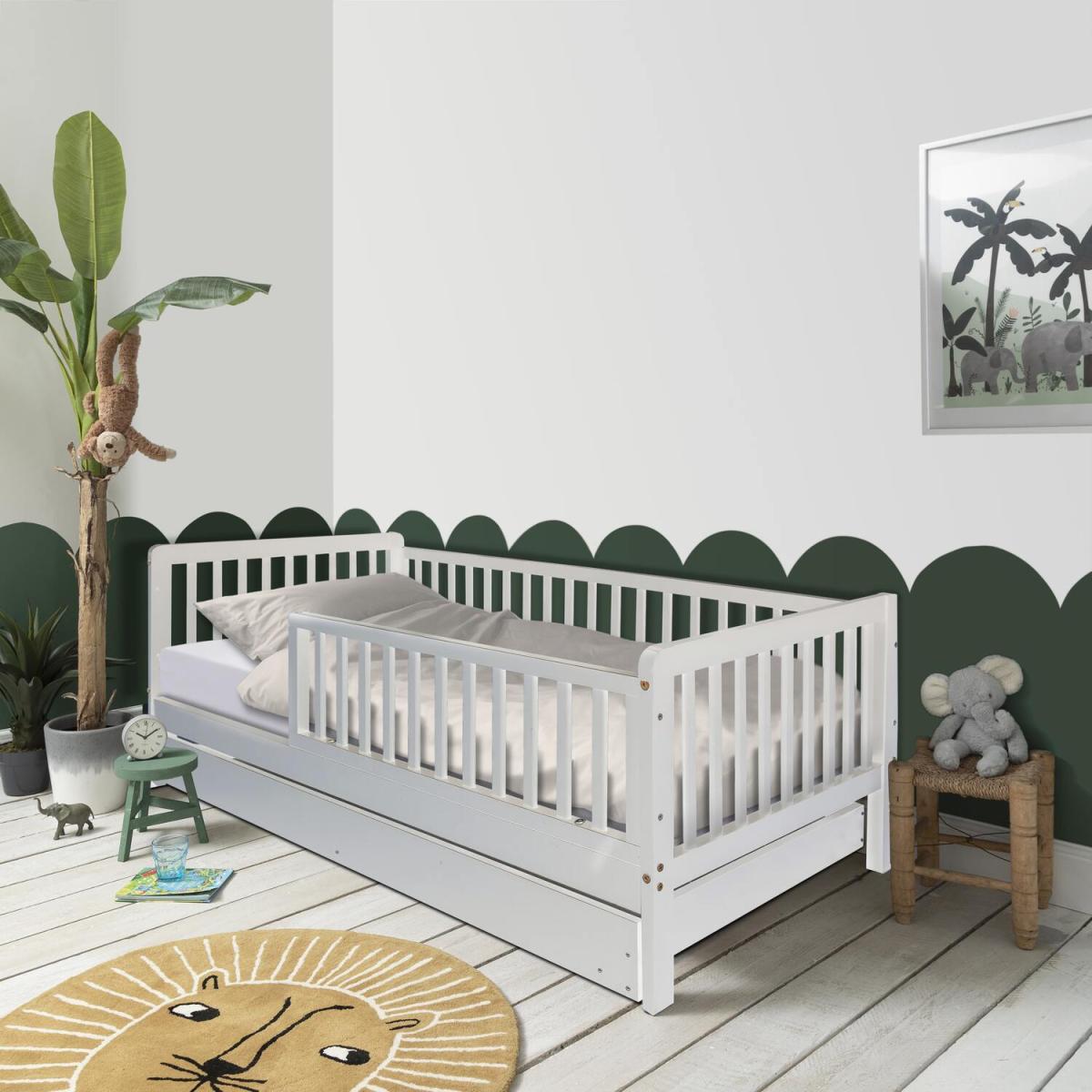 Create an effortless transition from cot to toddler bed with our beautiful Leonora. Featuring the safety and security of cot bars, but with an opening for your little one to leave the bed, Leonora balances security with independence. The toddler bed also includes a pull-out trundle bed, perfect for sleepovers or when your toddler needs company while falling asleep. Crafted from solid pine and available in a peaceful white or stylish anthracite shade, Leonora complements all styles of bedroom decor.