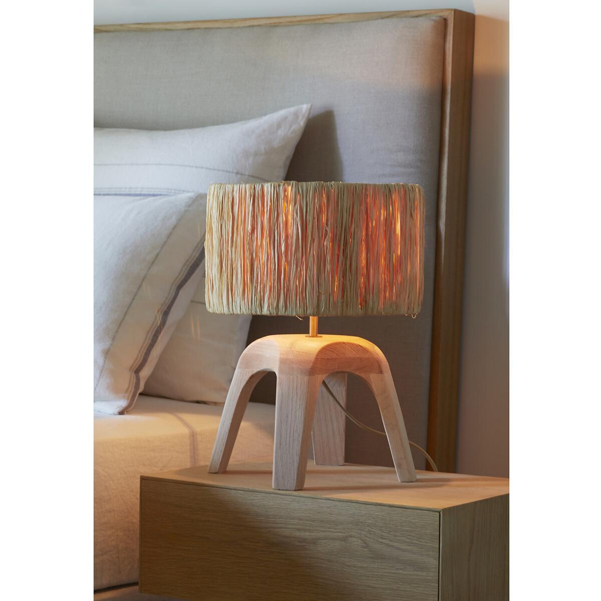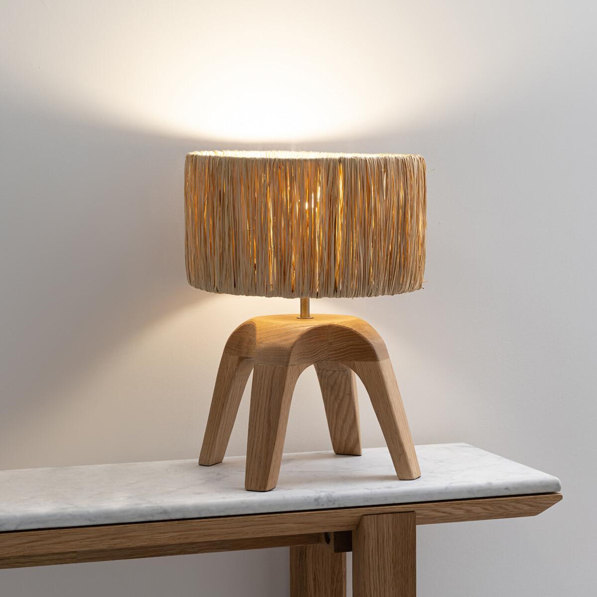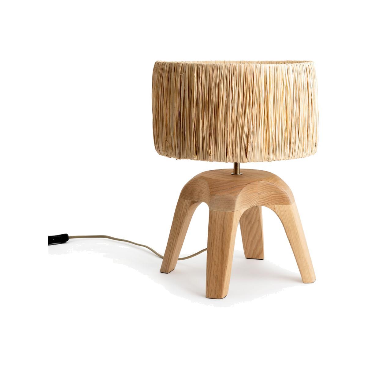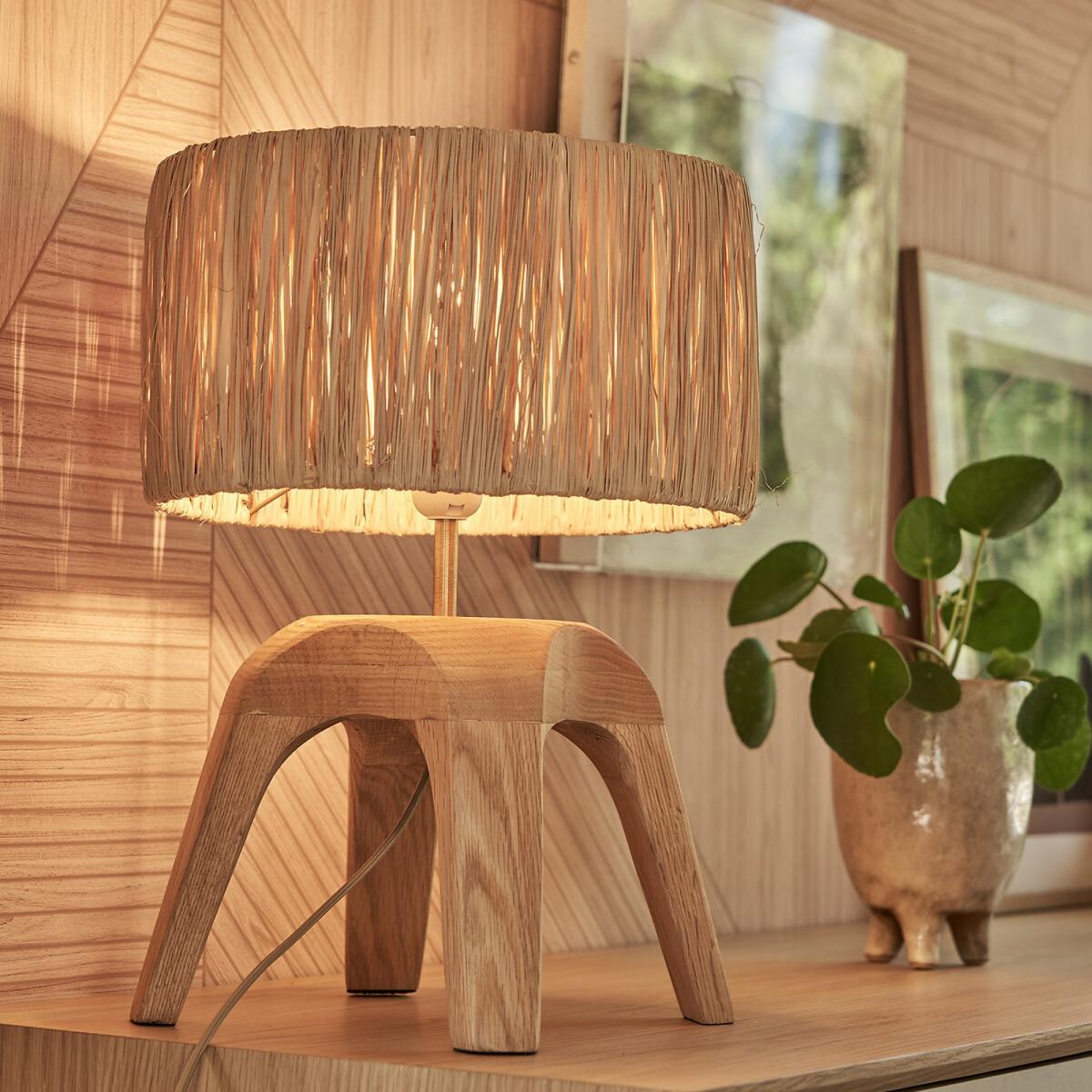 The Leonti table lamp. This lampshade gives a raw, natural feel thanks to its totem-shaped base and a cylindrical lampshade. Product Details. Base in natural solid oak. Raffia lampshade. Natural colour cable. Aged brass rod. E27 socket for compact fluorescent bulb 15. W, not included. Compatible with energy class A-E bulbs. Size. Diameter: 31cm. Height: 47.3 cm Dimensions and weight of parcel. L32 x H32 x D49 cm. 1.8 kg.