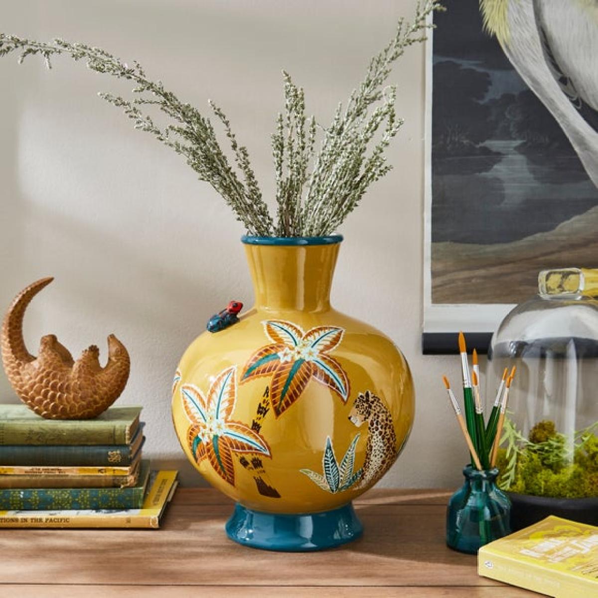 **In collaboration with the Natural History Museum** * Unique, maximalist design * Made from durable ceramic * Smooth glazed finish * Corresponding items available Bold, beautiful, and brimming with personality - the Leopard Ceramic Printed Vase is a true statement piece. With its eye-catching design and sculpted 3D frog detail, this vase is made for those who love something a little different. Crafted from durable ceramic with a smooth glazed finish, it adds a fun and artistic flair to shelves, mantelpieces, or tables. Whether filled with flowers or standing solo, this vase brings a splash of wild style to any corner of your home. Pair it with the matching candle holder for a coordinated look that’s big on charm and character.**Natural History Museum x Dunelm** From spots and stripes to speckled patterns and maze-like designs, extraordinary markings can be found everywhere you look in the natural world. Animals have unique patterning for a variety of reasons – to blend into their environment, to send a warning signal, or even to attract mates. This collection celebrates some of the many beautiful patterns that can be found in nature from the striking markings of the tiger to the amazingly colourful poison dart frog. With many of the species featured within this collection at risk or endangered, we want to shine a light on these incredible animals that need our help. © The Trustees of the Natural History Museum, London 2025. All Rights Reserved.