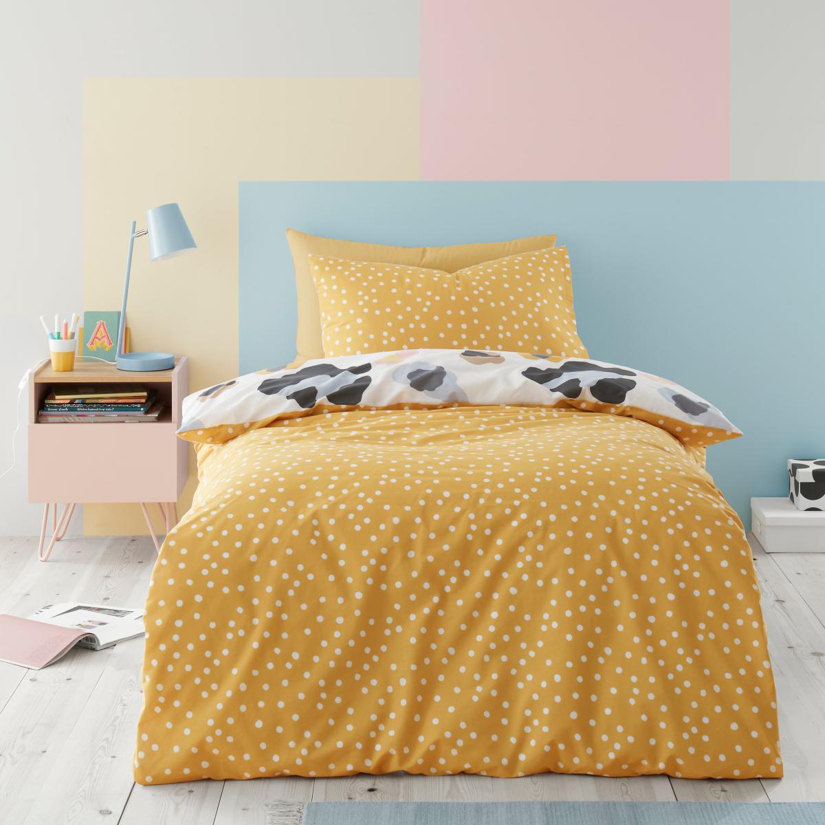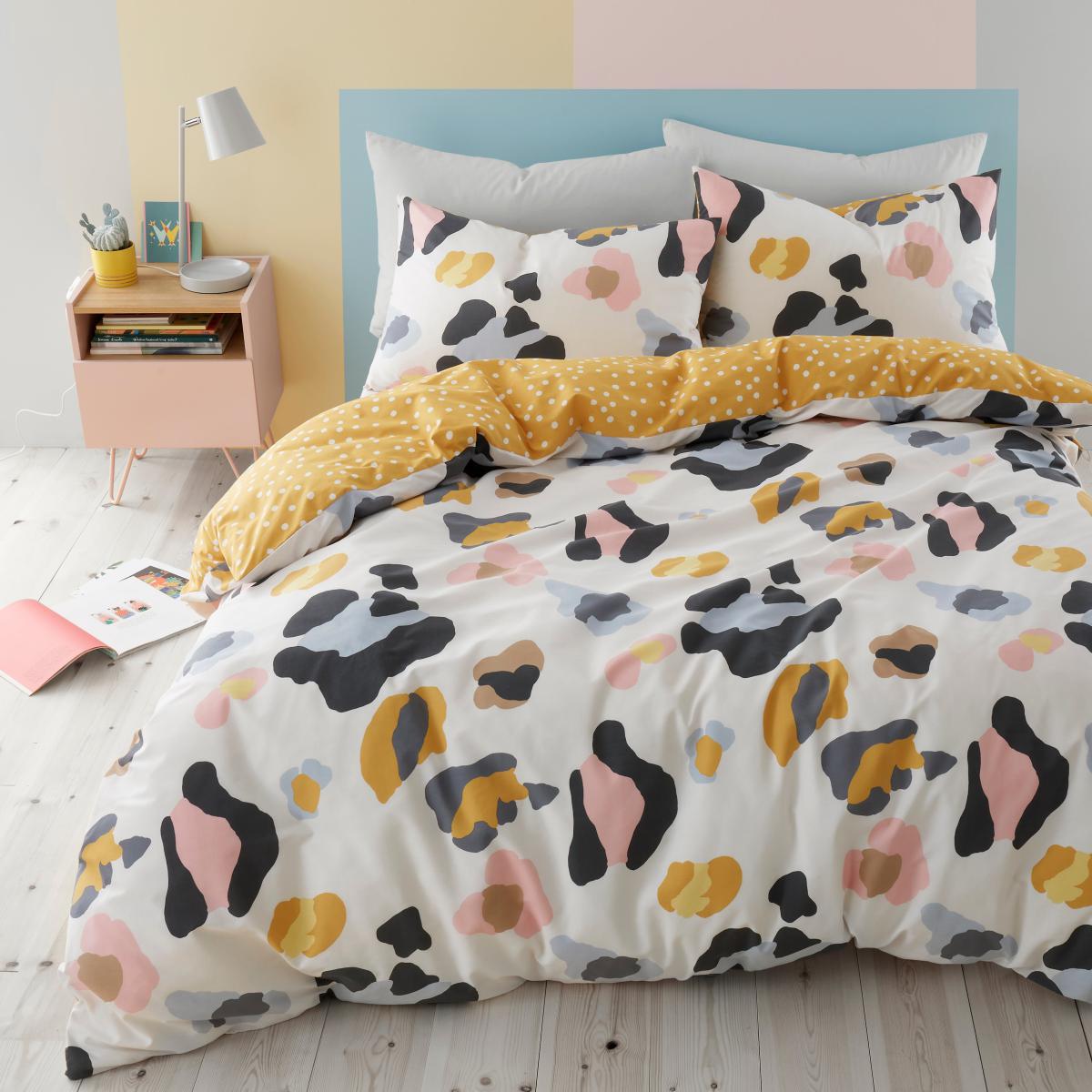 Our Leopard duvet cover and pillowcase set is 'purrrfect' for adding a modern look into your bedroom. Ideal for a teenager, this duvet cover set is fully reversible with a mustard ochre dotty designed reverse. The easycare polycotton material can be fully machine washed. This collection is verified by OEKO-TEX® and independently tested for harmful substances as well as manufactured using sustainable processes under socially responsible working conditions. MADE IN GREEN by OEKO-TEX® is a unique product label to trace the countries and production facilities - search the product label for more information.