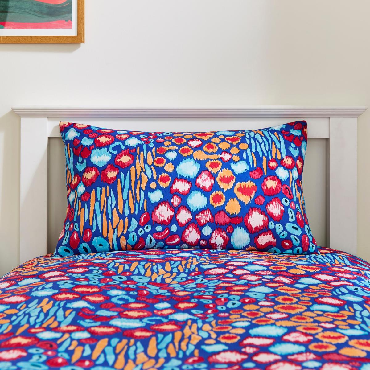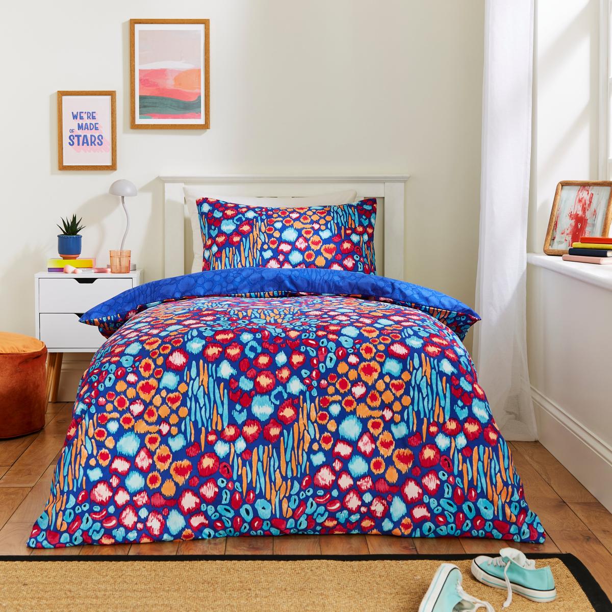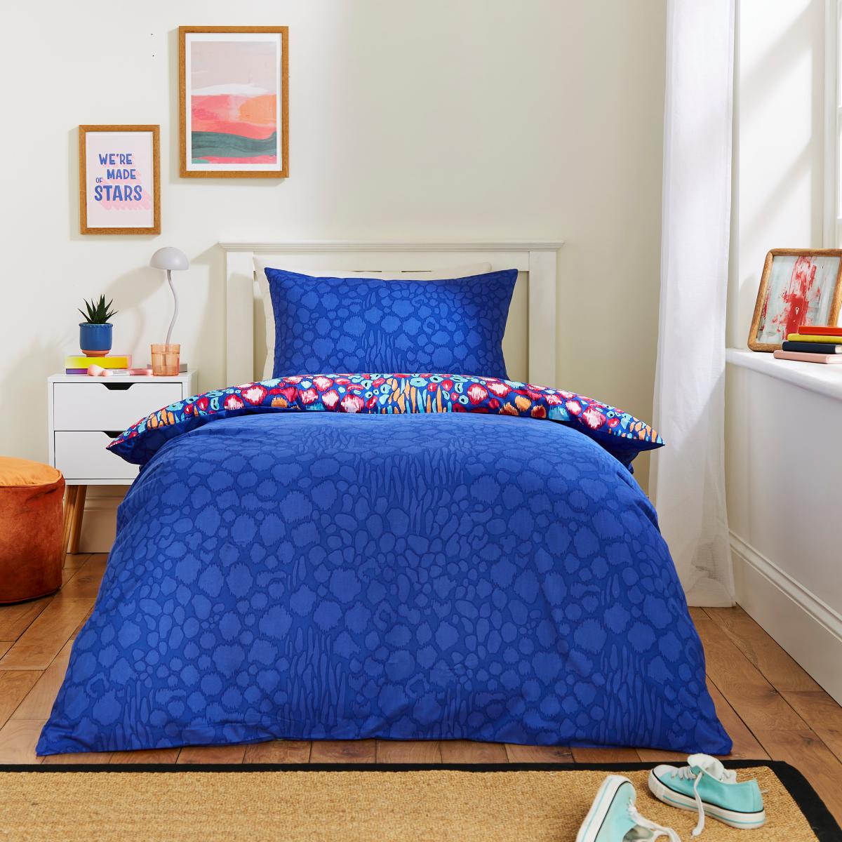 I love this children’s bedding set for its playful and vibrant animal print, which adds instant energy to a child's bedroom. It works particularly well in fun, eclectic interiors or in a space where a pop of colour can brighten up the room. Pair it with neutral or plain-coloured accessories to let the pattern stand out, or mix it with other colourful items for a lively look. Practical styling tips include layering with a cosy throw or using simple, complementary cushion covers for added comfort and visual interest. It's a great choice for creating a cheerful, inviting space that feels both stylish and age-appropriate.
