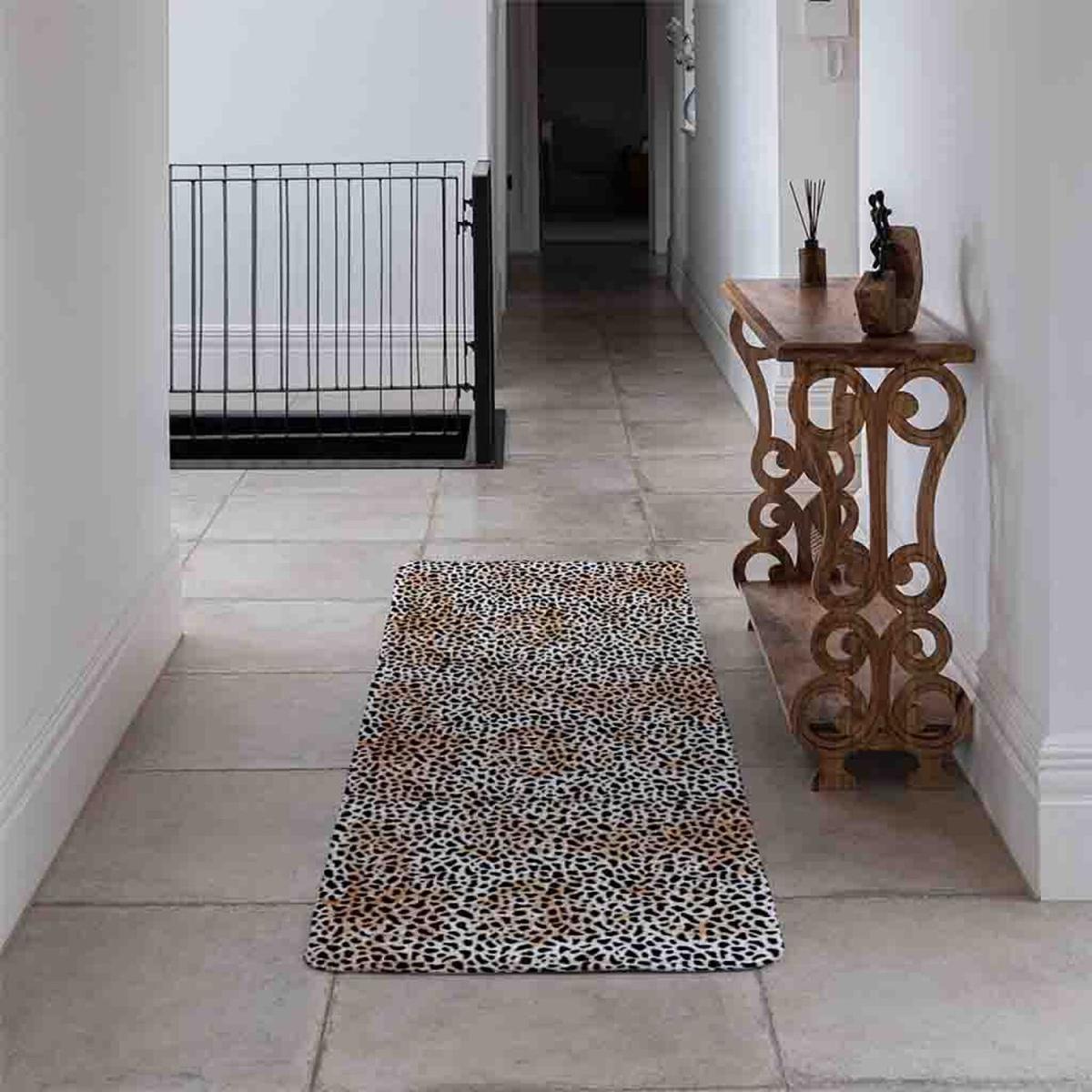 This leopard print runner is a great way to add a touch of bold pattern to a neutral or minimalist space. I love it for hallways, kitchens, or even under a dining table, thanks to its practical length and low pile that make it easy to walk over. The brown tones are versatile, pairing well with warm wood or earthy colour schemes, while the animal print injects a bit of personality without overwhelming the room. For styling, consider complementing it with simple furniture and accessories, such as tan leather or brass details, to highlight its natural vibe. It’s also ideal for hiding some everyday scuffs in high-traffic areas, making it both stylish and functional.