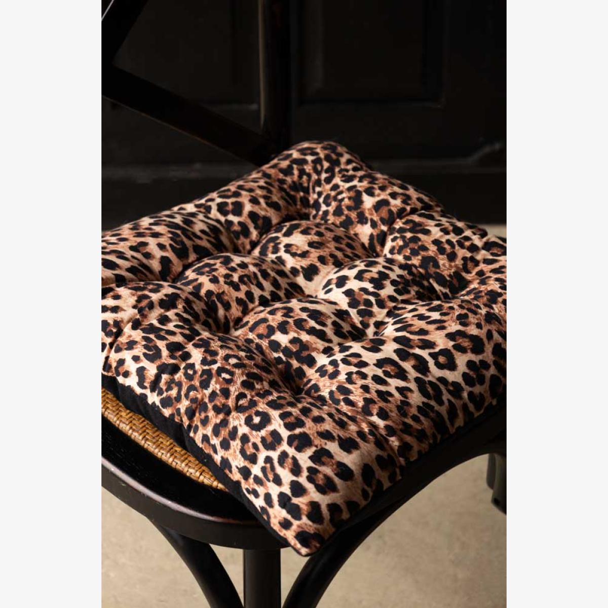 <!--td --> Transform your seating with our Leopard Print Seat Cushion, made for those who love to make a statement. This sassy yet glamorous cushion features a striking leopard print pattern that adds a touch of wild sophistication to your décor. With convenient ties on two corners, it securely attaches to your seat, promising style and comfort with absolutely no slipping or sliding. Amazing for indoor and or outdoor use, this seat cushion not only elevates the look of your chairs but also provides plush support. Enhance your décor with a dash of fierce elegance and make a statement with every seat. - Leopard Print Seat Cushion - Measures: 40cm x 40cm - Material: Cotton