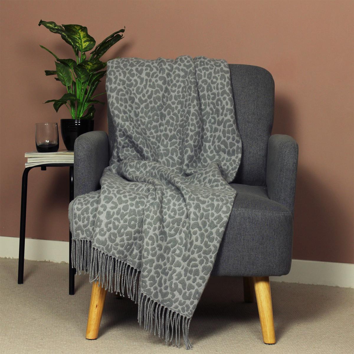 Leopard Print Throw - Grey