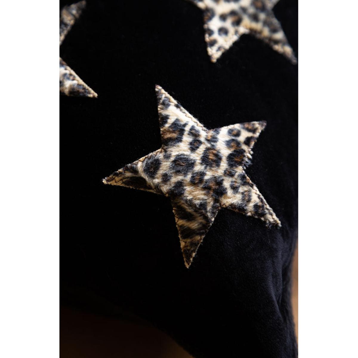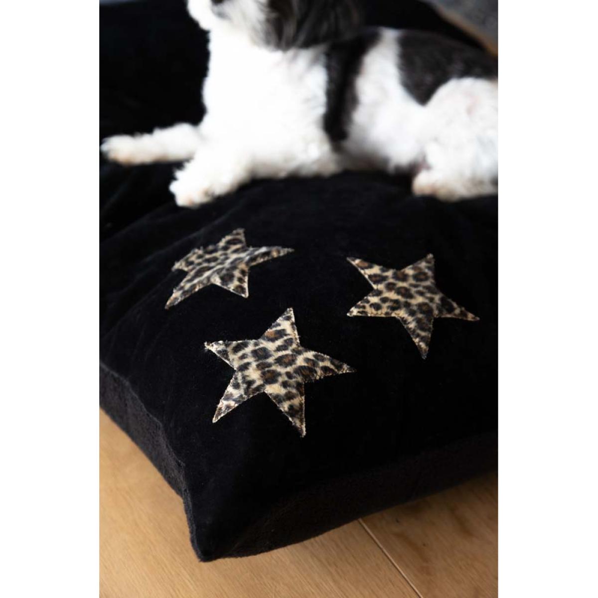 About The Leopard Stars Dog Bed - 3 Available Sizes A luxe dog bed that we wish was created for humans too, the Leopard Stars Dog Bed is the best dog bed ever! Made with fully removable and machine washable materials, the top of the bed features a black faux suede fabric with faux fur leopard stars, while the reverse is made from cosy black fleece. Designed exclusively for Rockett St George by Creature Clothes Ltd, this luxury dog bed embraces our obsession with all things leopard print. Take a look at our size guide below to find the perfect size for your pampered pooch. Small dog bed: 56 x 61cm – great for Yorkies, Chihuahuas and small breeds. Medium dog bed: 66 x 86cm - perfect for medium-sized breeds from Jack Russells to Springer Spaniels. Large dog bed: 86 x 106cm – designed for Labradors and retriever breeds. Why We Think You Will Love The Luxury Dog Bed In Faux Suede & Fleece Co-founders Jane & Lucy have been busy searching and designing fabulous pieces for the Rockett St George pet collection that treat your pet to everything they deserve. Inspired by the love of their own pets, Jane & Lucy wanted to bring signature RSG style to pet accessories and ensure that you don’t have to compromise on your unique sense of style when it comes to finding great designs for your dog. From the faux leopard print stars appliqued in the corner to bold black colour palette, this is a luxury dog bed that will look amazing against any décor style imaginable. Soft and cosy, this wonderful washable dog bed is designed with two separate duvets inside to create the perfect perch for your pooch to rest, relax and snooze in style. The Leopard Stars Dog Bed is pictured in size medium and has been tried and tested by Angel the Maltipoo!