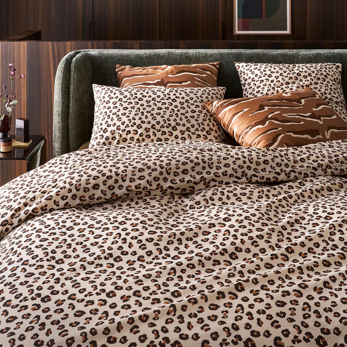 Subtle, updated leopard print... Animal print is still a must-have and comes in shades of pink, beige and caramel for the Leopold duvet set. Cotton is part of our daily lives. We love it for its suppleness and softness. Easy Care, it is ideal for the beds of young and old alike!Product Details • 100% cotton • 144 thread count • Patterned both sides in leopard print • Straight buttoned hem Care Advice • Machine washable at 40°CDimensions • Duvet cover 140 x 200cm + 1 pillowcase 50 x 70cm: Single • Duvet cover 200 x 200cm + 2 pillowcases 50 x 70cm: Double • Duvet cover 240 x 220cm + 2 pillowcases 50 x 70cm: King • Duvet cover 260 x 240cm + 2 pillowcases 50 x 70cm: Super King • OEKO-TEX® Standard 100. Standard 100 certification by OEKO-TEX® tests textile products for harmful substances via an independent, international label.