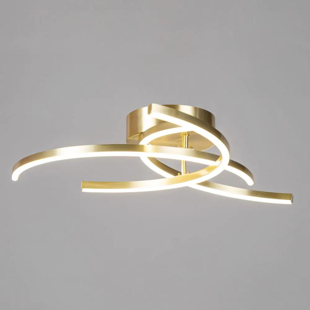 Add an abstract style to your décor with the Leora LED Ceiling Light. This light fixture comes in a stylish satin brass finish and has a gorgeous contemporary design, as well as being a flush light fitting which makes it ideal for low ceilings. It also is LED integrated, meaning that you do not need to buy bulbs for this light, and is IP44 rated for water resistance when styled in the bathroom.