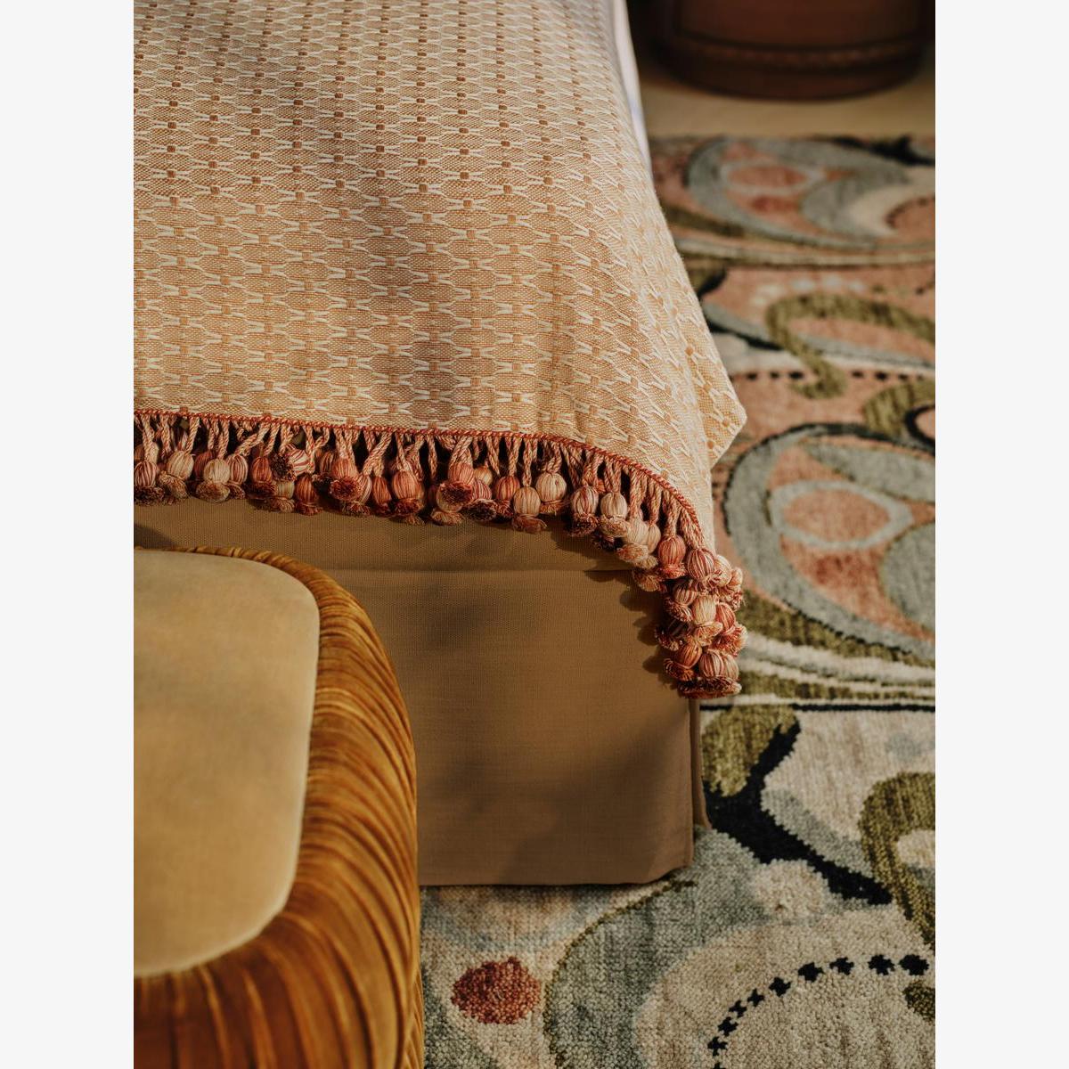 Our woven bedspread features an in-house jacquard design on one side with a stripe reverse for added versatility. Inspired by textiles found in Kettner's and Soho House Paris, our Lera bedspread has been handcrafted in India from a cotton blend with tassel trims and a soft rose colouring, matching our Lera cushion.