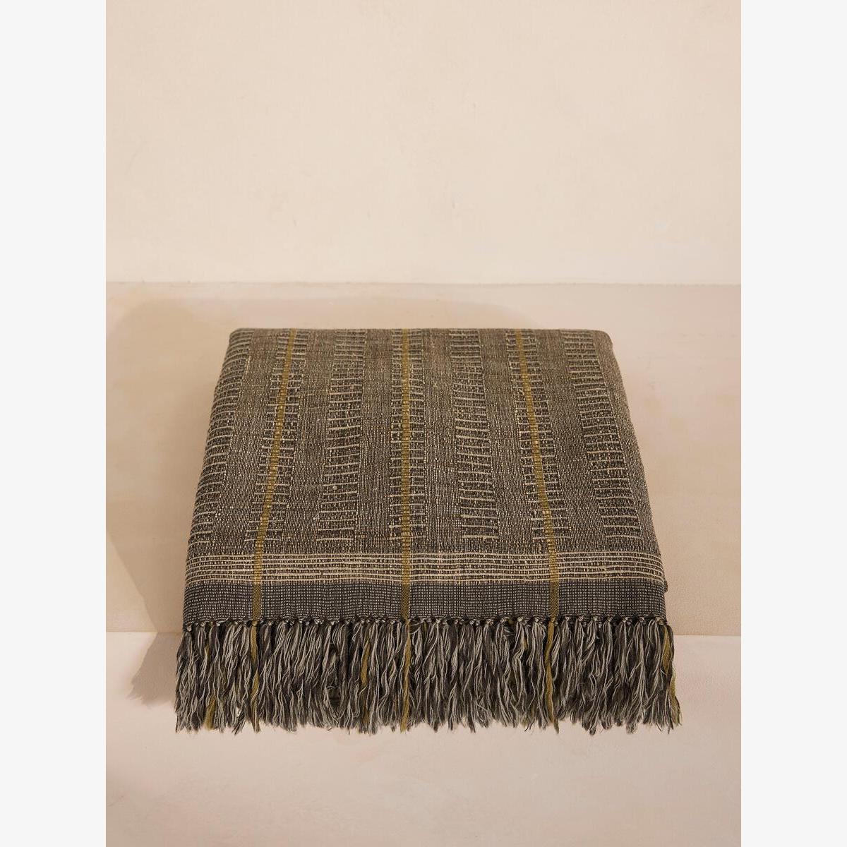 Woven by a community of artisans in India, wool silk brings comfort and a natural feel to our Leros throw. Created with a vintage stripe designed in-house, this throw features tones of black, brown and ochre, taking inspiration from textiles found in Soho Farmhouse.