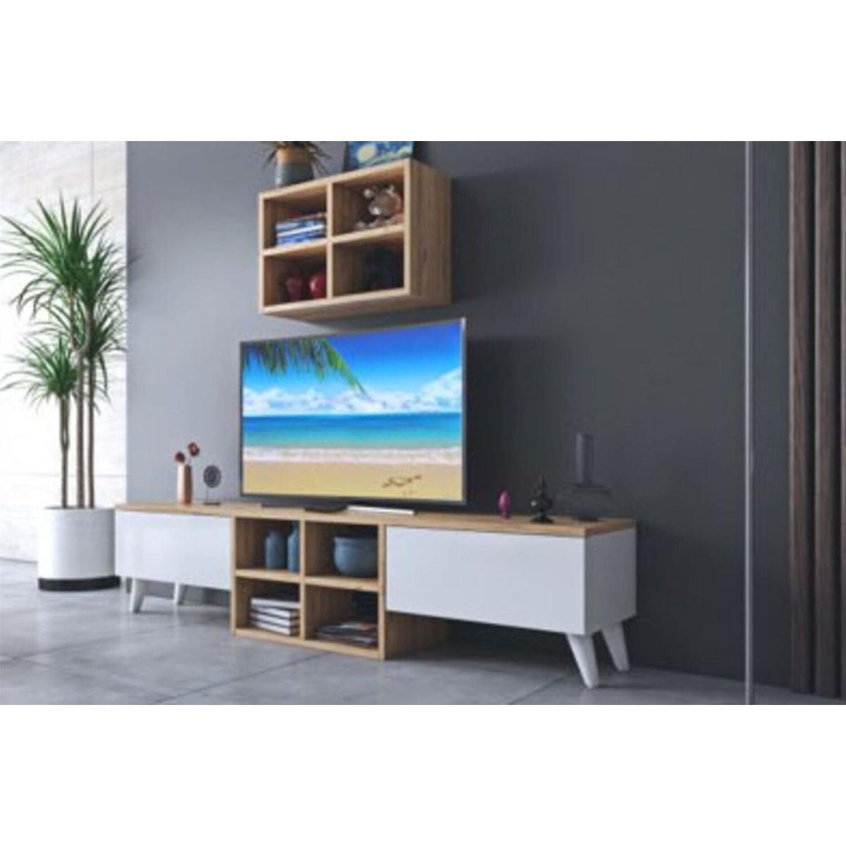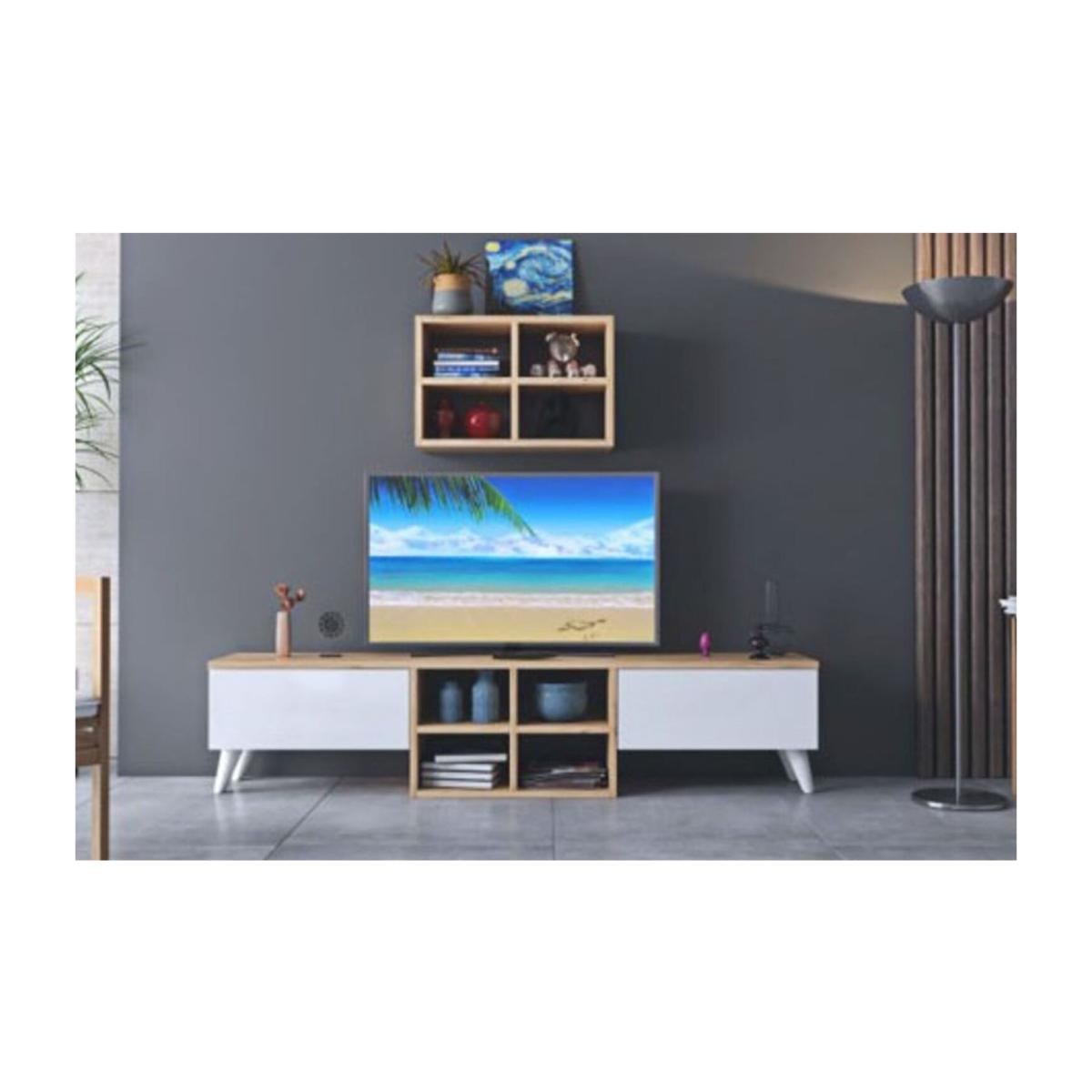 Leroy TV Unit Stand, White and Oak - White, Oak
