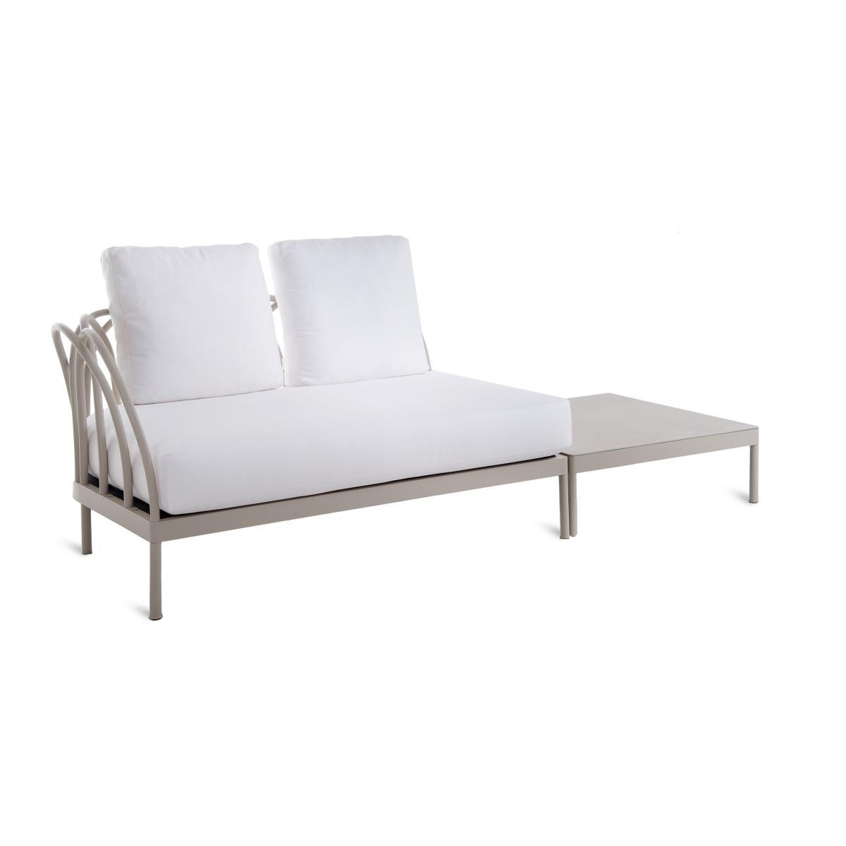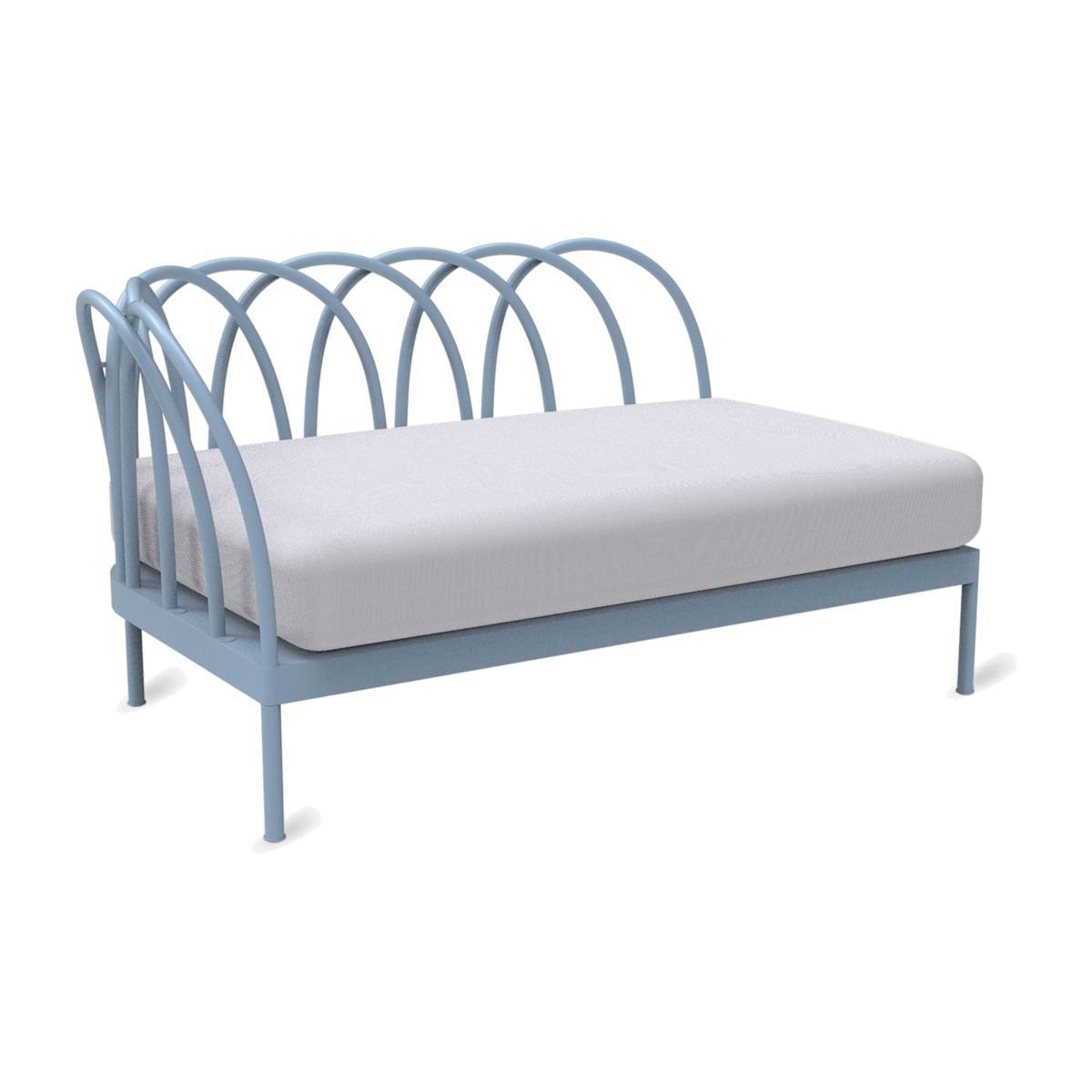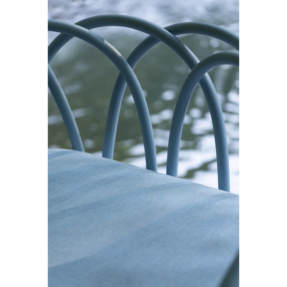 The curved lines traced by the aluminium characterise the "Les Arcs" outdoor furnishings collection. A combination drawing plentiful inspiration from retro lines and contemporary minimalism, this collection is reminiscent of the cast-iron armchairs that were so loved in the 1950s. The intertwined aluminium tubes create superb loops and arabesques. The repeated geometric patters form an openwork structure, which is well-balanced and stunningly light. With its hybrid style, blending deliciously passé romanticism with modernity, the Les Arcs collection brings it poetry to both your interiors and exteriors. This furniture will be perfect for adding touches of style and a dash of irony into a living room, garden, or terrace. The aluminium gives this furniture a unique lightweight aspect which makes them not only elegant and refined, but also practical. They're resistant to sun exposure, rain and wind, are easy to move and reorganise and, most importantly, they add a stunning touch to any space. Seat cushion included (small backrest cushions not included).