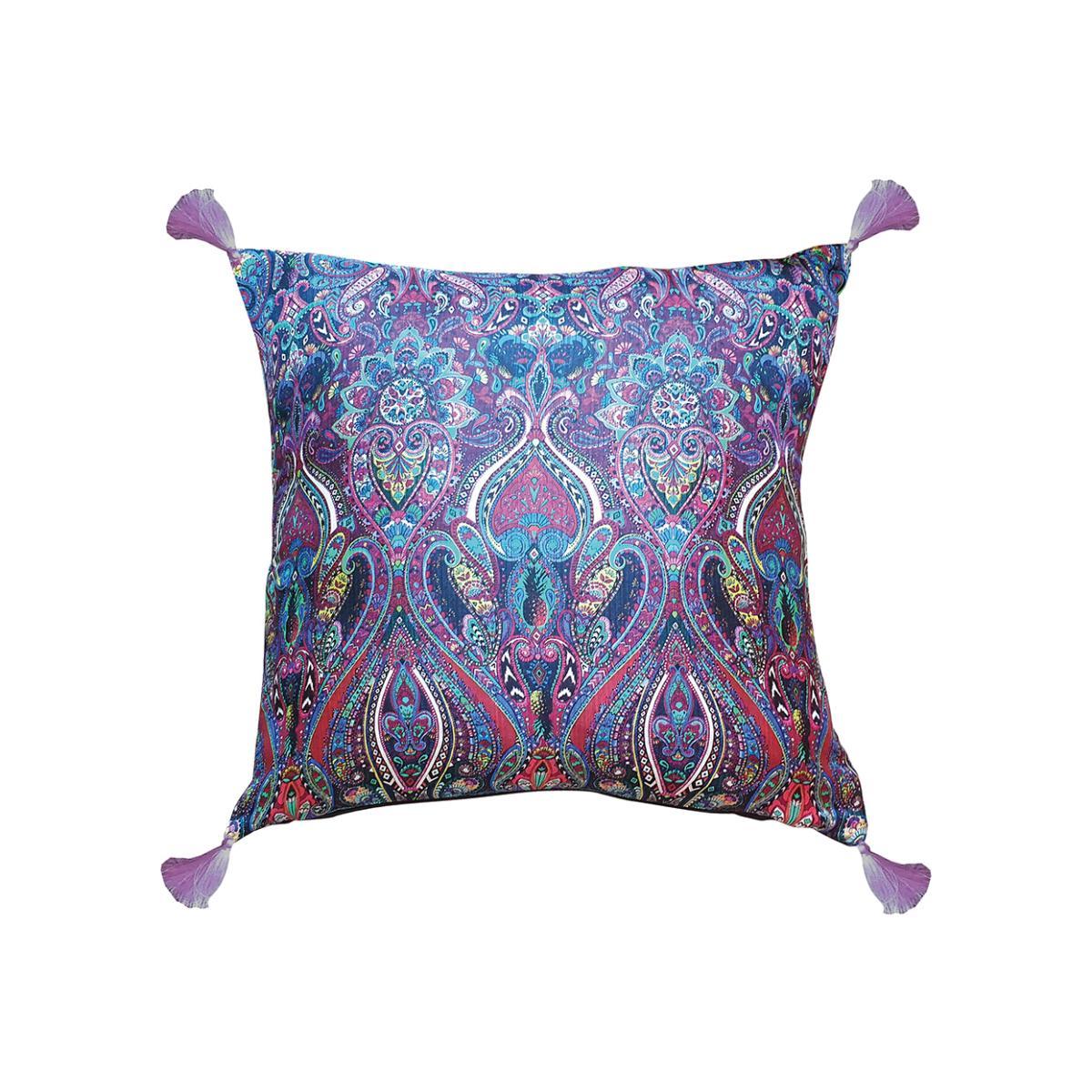 I love this cushion for adding a pop of colour and luxury to both classic and contemporary interiors. Its rich purple tone pairs beautifully with neutral sofas, greys, or even deep blues, making it versatile for a variety of schemes. The silk fabric gives it a subtle sheen that lifts the look, while the intricate pattern adds visual interest without overpowering other elements. For styling tips, I’d suggest layering it with more textured cushions in complementary shades or patterns to create a curated, inviting feel. This cushion works well as a statement piece on a plain sofa or armchair, and the size makes it perfect for adding comfort and style without overwhelming the space.