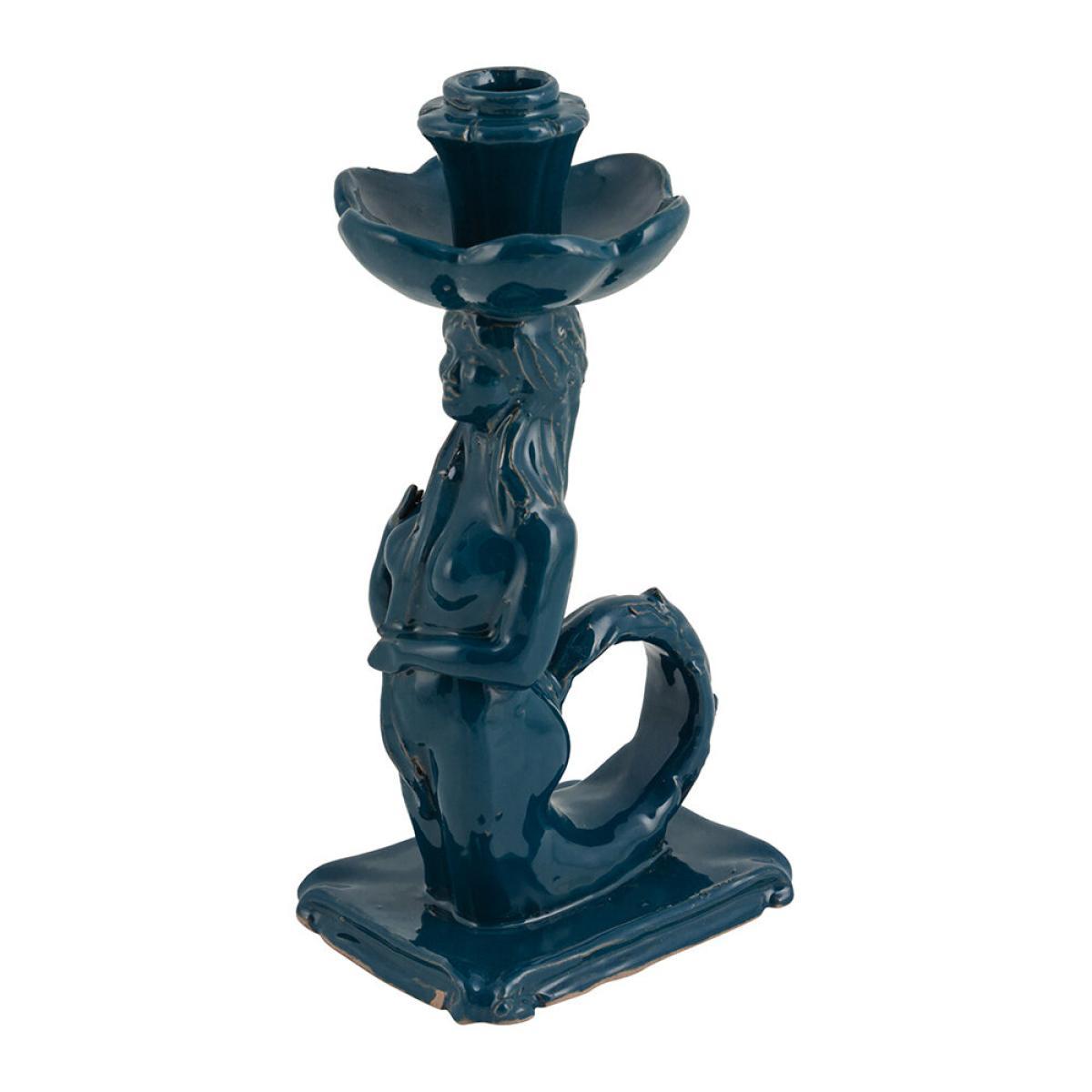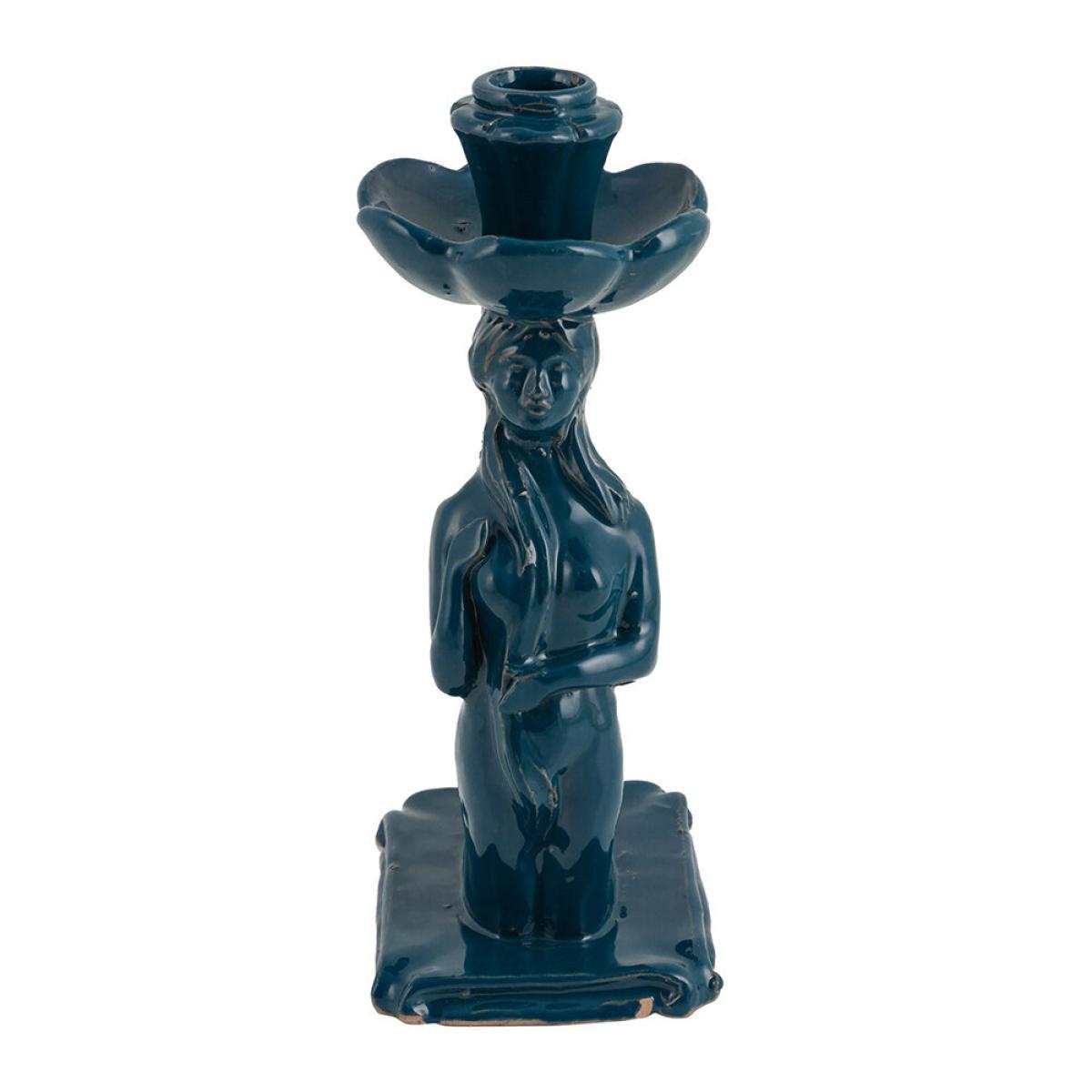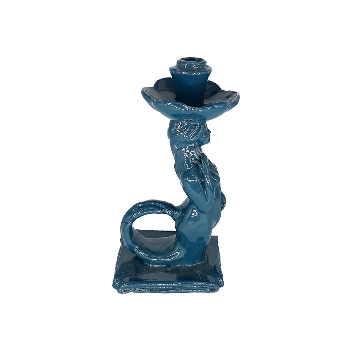 Les Ottomans - Sicily Sculpture Hand-Painted Candle Holder - Blue