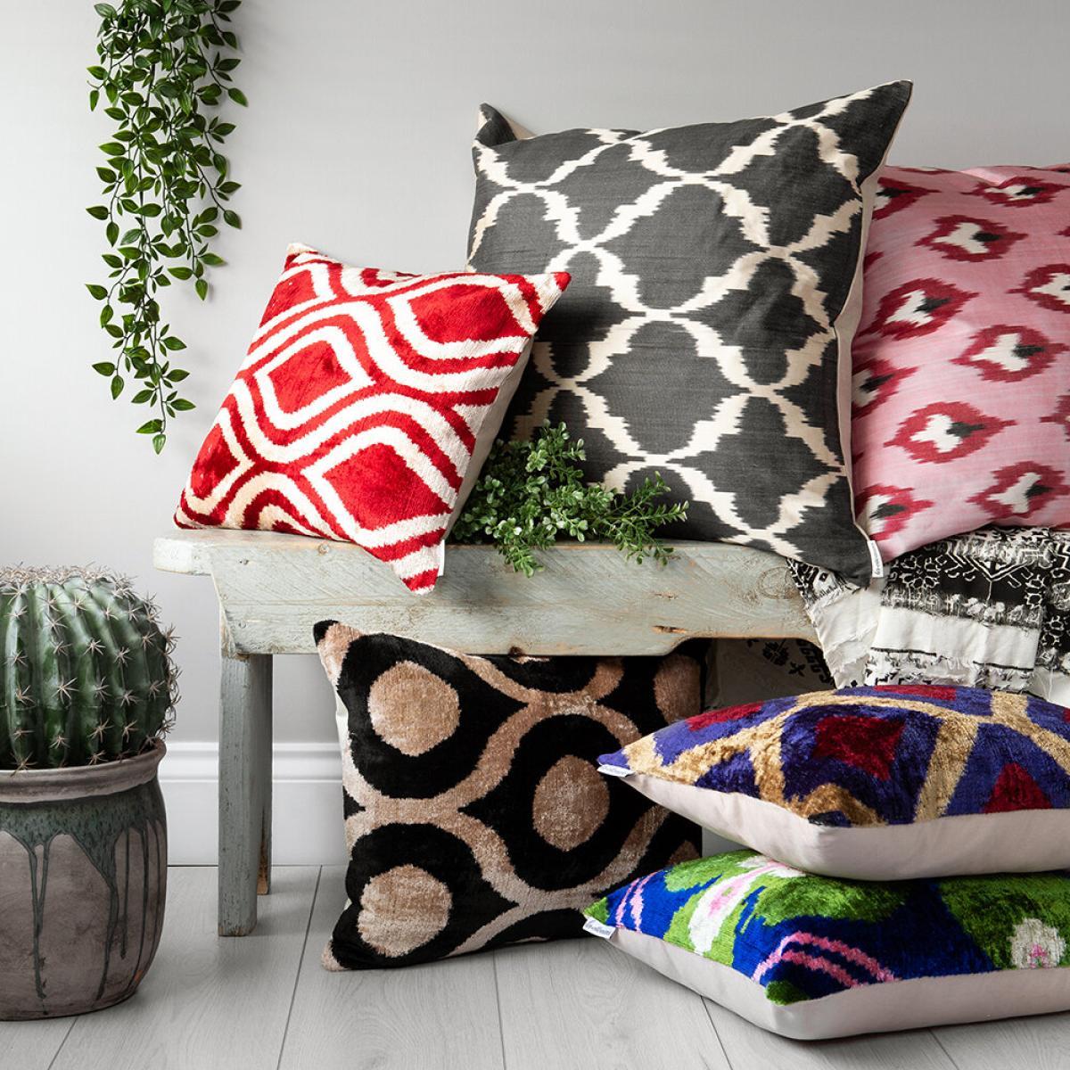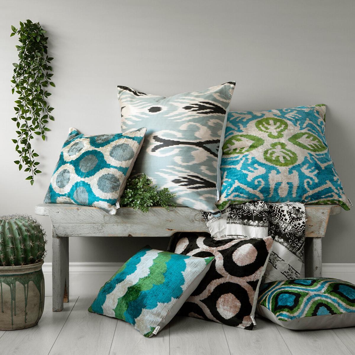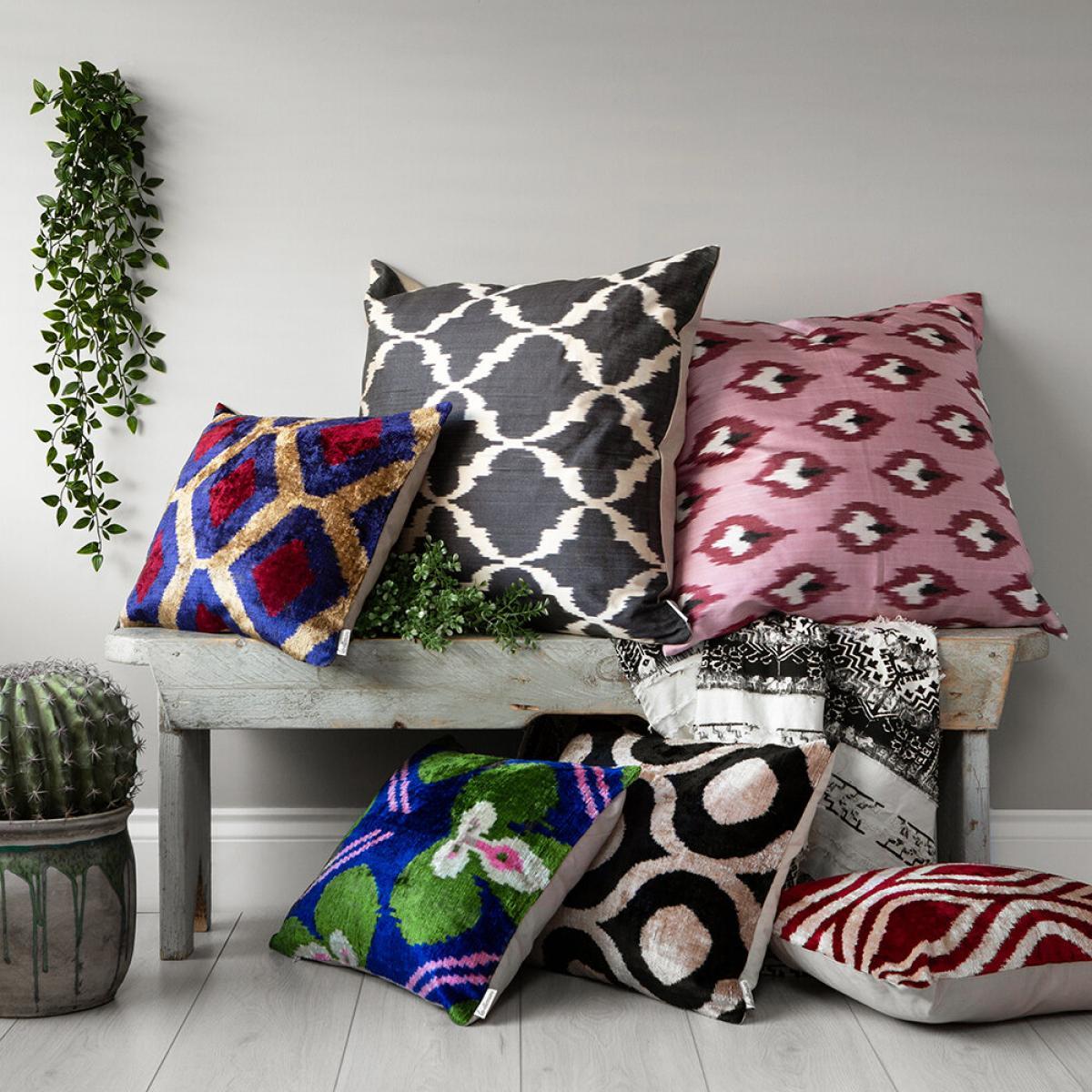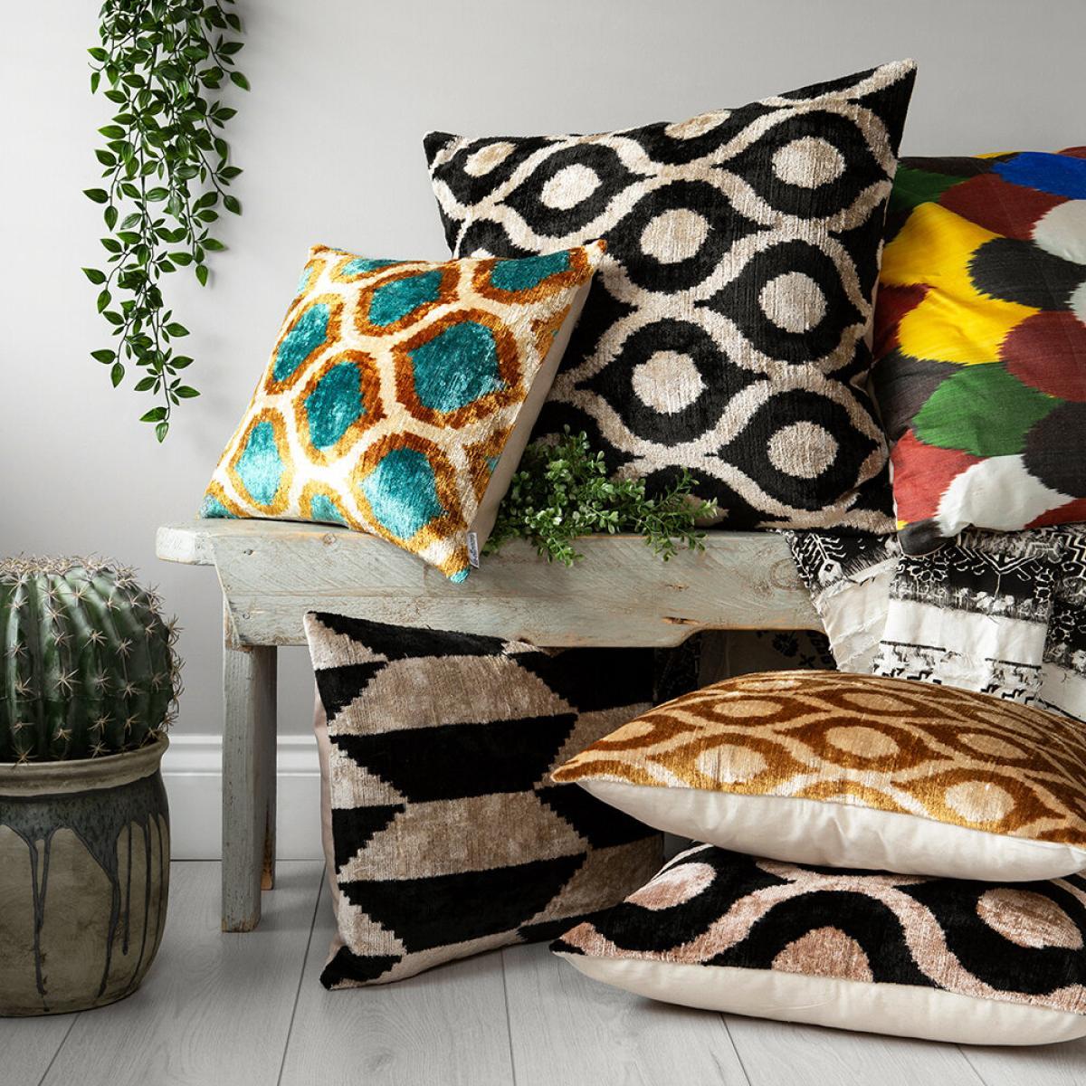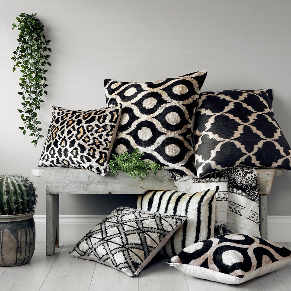 Every home needs a dose of pattern so add this Ikat cushion from Les Ottomans. Beautifully handmade, this cushion is emblazoned with a traditional ikat design in soft silk velvet. Reversing to plain cotton, it can be mixed and matched with more bold designs from the brand for a striking pattern pop. Key features: * Material: silk velvet, cotton * Dimensions: 30x50cm * Handmade silk velvet front * With a traditional ikat design * In black and cream * Due to handmade nature design may vary