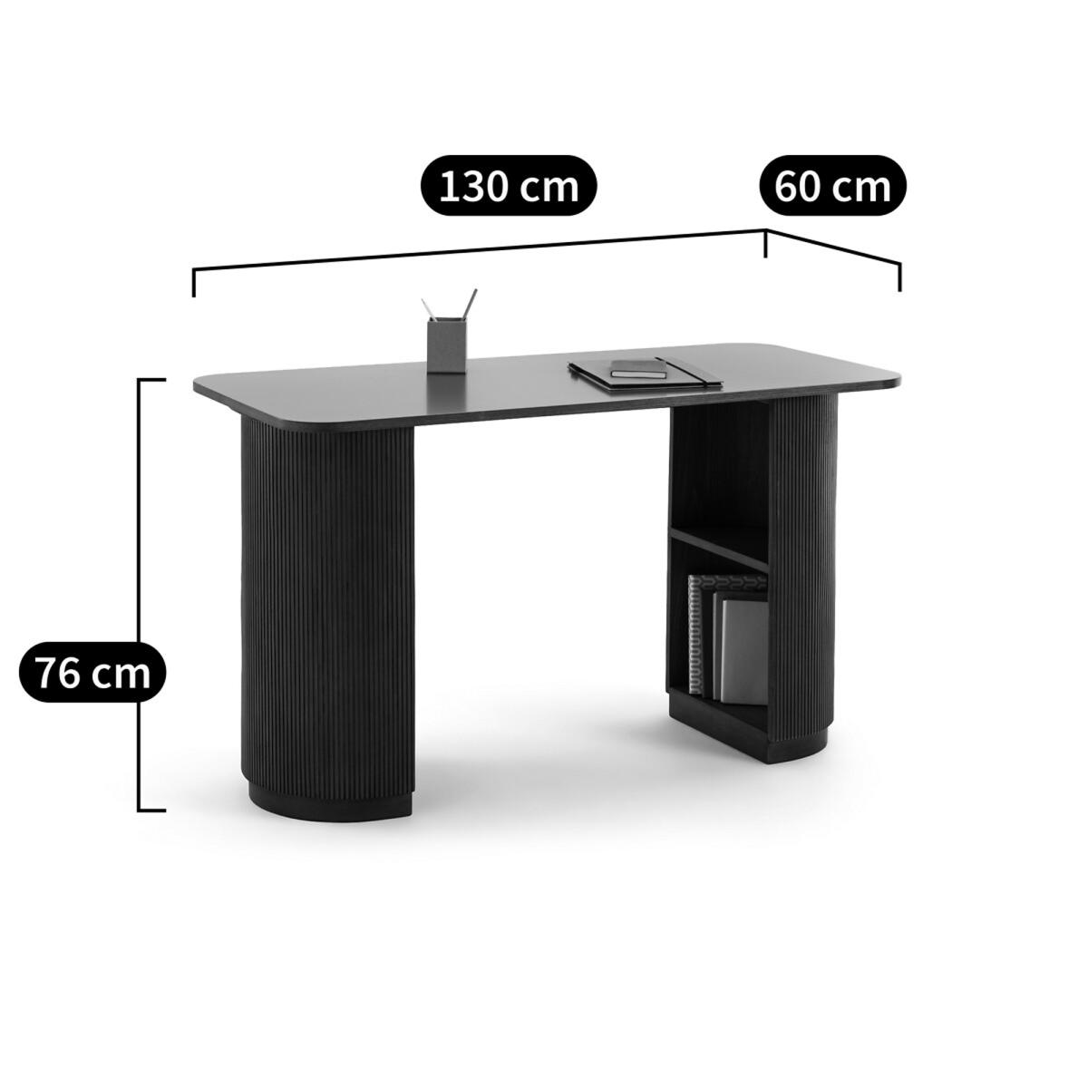 I love this desk for its clean lines and versatile design, making it suitable for both contemporary and more traditional interiors. Its warm wood tones add a sense of richness, while the subtle curves keep it approachable. It works particularly well in home offices or studies that embrace a minimalist or mid-century aesthetic. Practical styling tips include keeping surfaces uncluttered with a few dedicated organisers and adding textured accessories like a linen-covered notebook or a ceramic pen holder to bring charm without overcrowding. The open shelving is ideal for displaying books or decorative objects, making it functional yet stylish. Overall, this piece lends itself to a well-balanced workspace that feels both inspiring and practical.