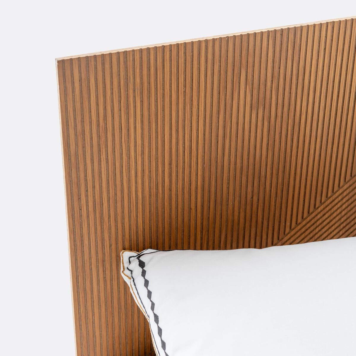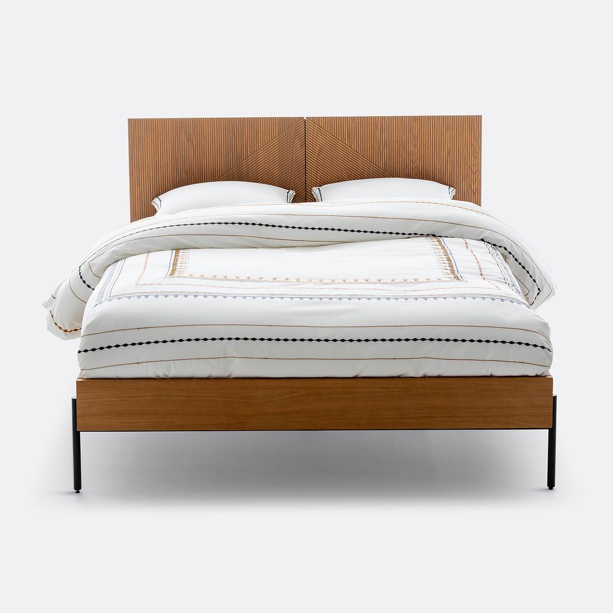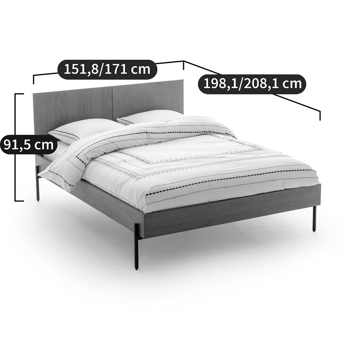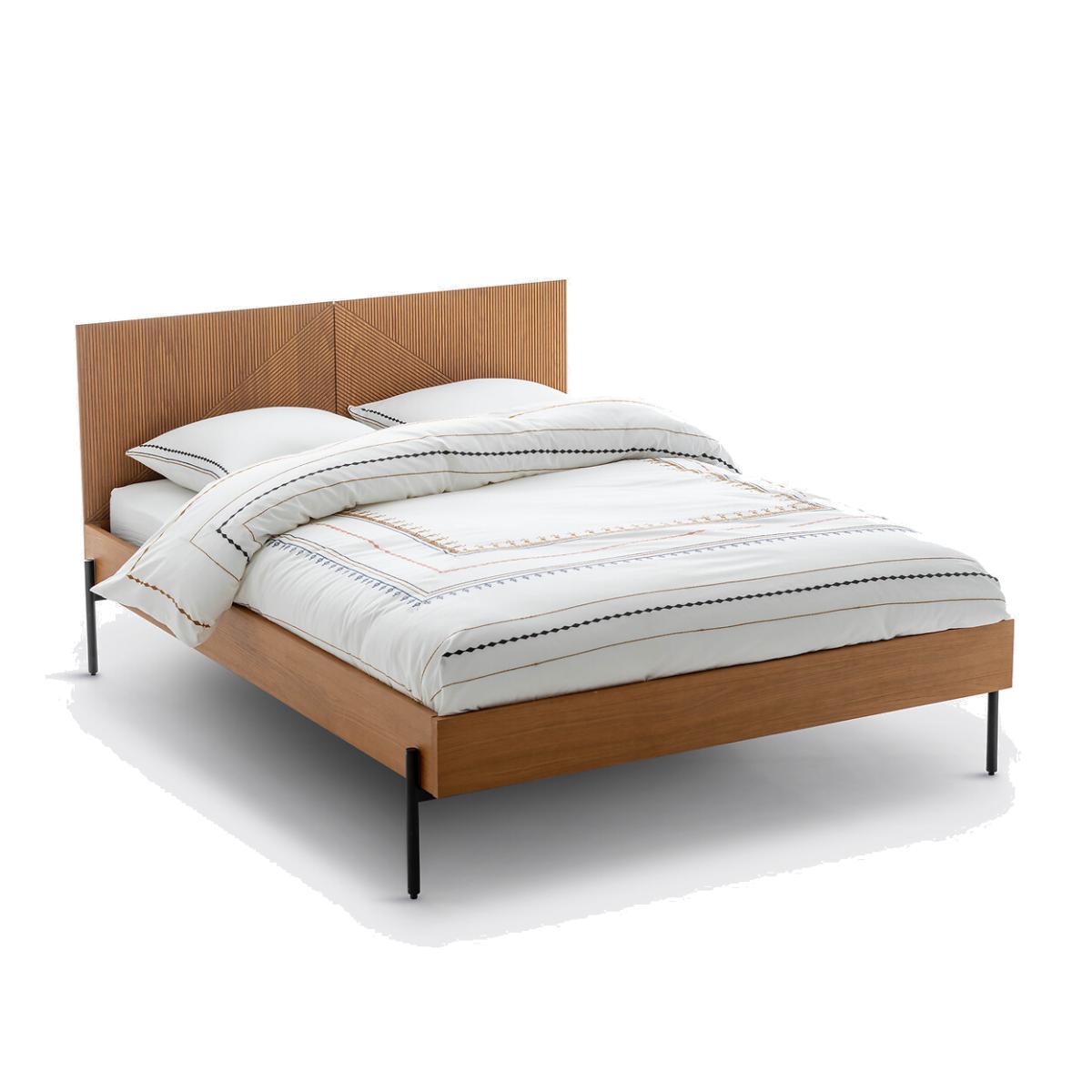 Le lit avec sommier Lodge marie le vintage aux influences ethniques, avec notamment du bois sculpté. The streaky wire drawing brings rhythm for a graphic spirit and a contemporary style. Product Details • In oak and MDF with stained oak veneer, nitrocellulose varnish finish • Metal legs with epoxy finish • Streak finish on the headboard • Supplied with solid pine slatted baseDimensions. Sleeping space 140 x 190cm (Double) • Width: 151.8 cm • Height: 91.1 cm • Length: 198.1 cm • Weight: 56kg. Bed Size 160 x 200cm[King] • Width: 171cm • Height: 91.1 cm • Length: 208.1 cm • Weight: 62kgDelivery:. This product requires assembly. Available for home delivery. Note! Please check that all access points are large enough to accommodate your delivery (doors, stairs, lifts).Dimensions and weight of parcel3 parcels • Double size: • L161 x H94.5 x D15cm. 33.5kg. • L200 x H29 x D13.5cm. 20kg. • L145.5 x H22 x D15.5cm. 16kg. • King size : • L181 x H94.5 x D15cm. • L210 x H29 x D13.5cm. • L165.5 x H22 x D15.5cm.
