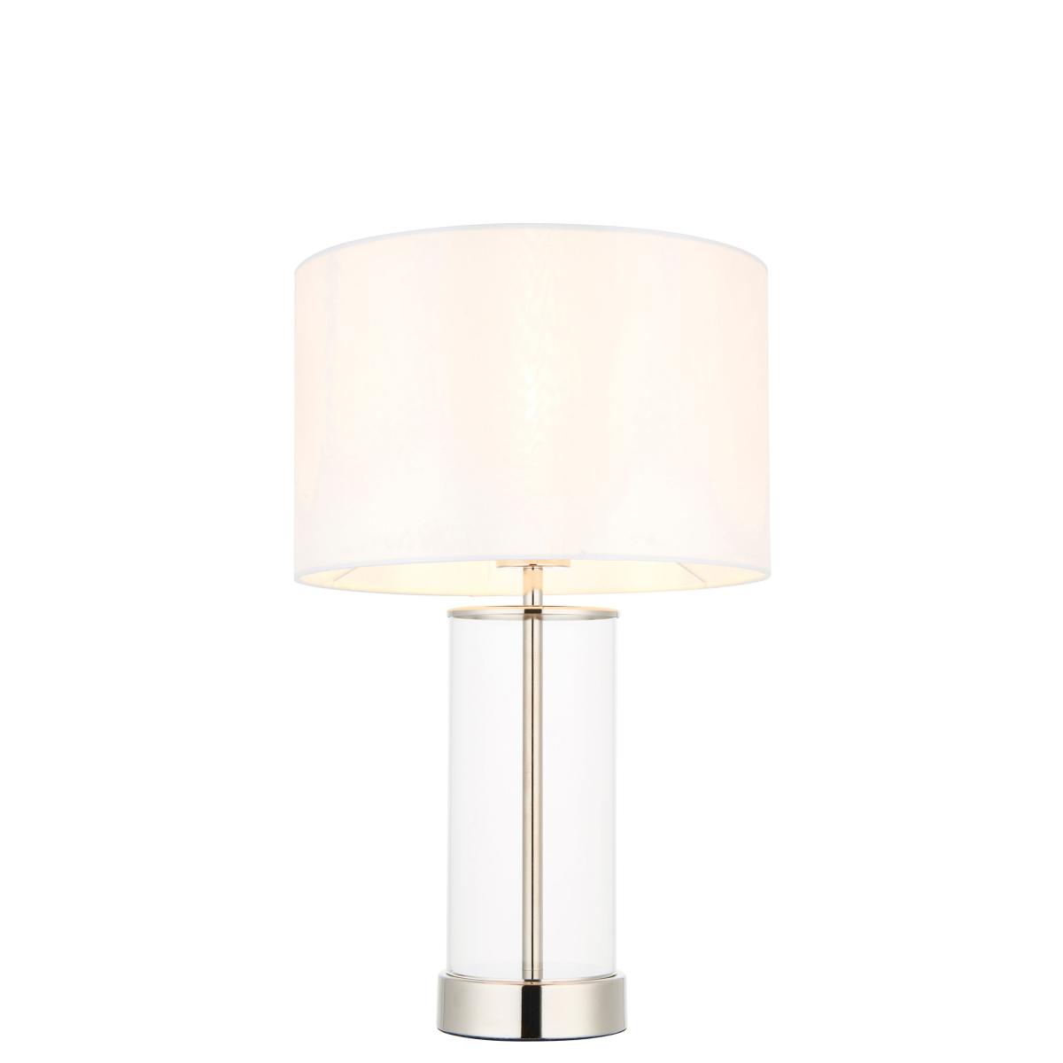Beautifully simple table light with a clear glass base, vintage white faux silk shade and a bright nickel. Dimmable via a clever 3 stage touch dimmer. Available in large and small size perfect for creating ambience in a bedroom or living room.