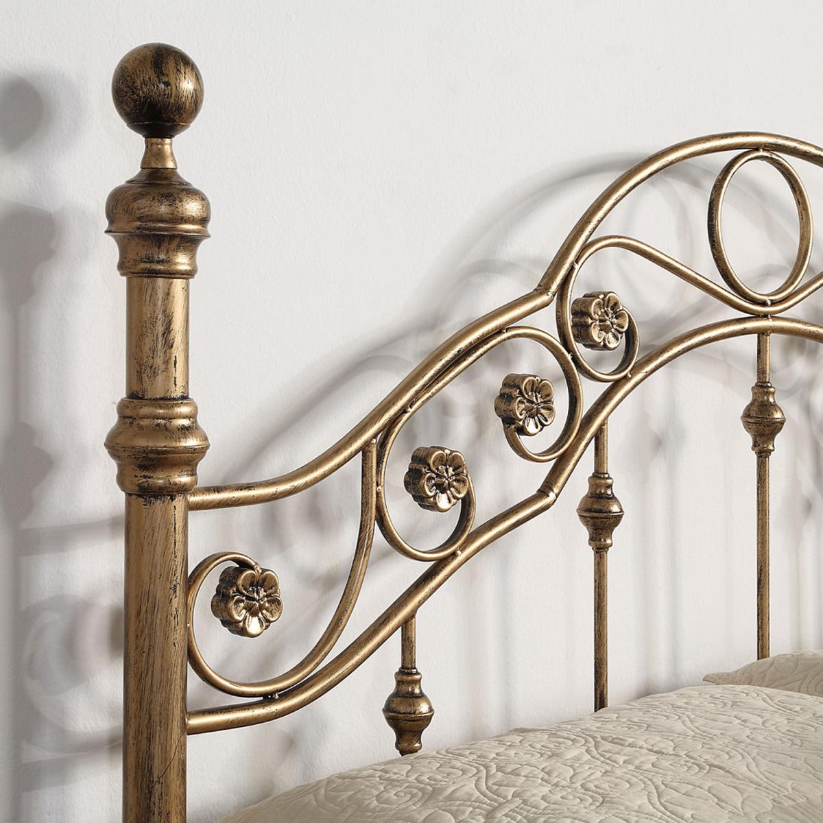 The classic Letchworth is a Victorian Style, shabby-chic metal bed frame, finished in Hand-brushed Antique Brass. With its swirling flower detailing, this bed has a romantic appeal, solid metal slats and a sturdy base for comfort. The beautifully curved headboard and footboard will create a statement in any bedroom. This bed frame is the perfect feature for any Victorian or Edwardian home. Available as a Small Double, Double or King Size.