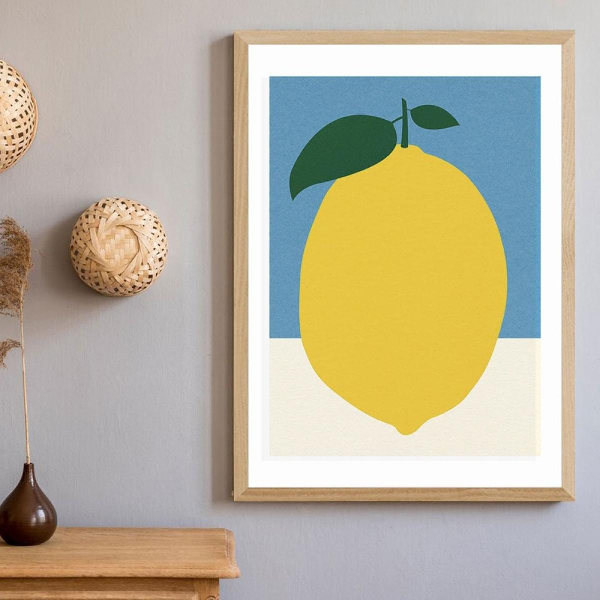 I love this lemon-inspired piece as it brings a fresh, graphic touch to many interiors. Its bold black outline makes it a versatile statement, especially suited to modern or contemporary spaces. The A2 size works well above a sofa or dining area, adding visual interest without overwhelming. For styling tips, pairing it with minimalistic surroundings or monochrome schemes lets the artwork stand out. It also works nicely in kitchens or casual dining spaces to inject a bit of colour and playfulness. Framing it in natural wood, as shown, keeps the look approachable, but contrasting frames can add a personalised edge depending on your overall decor.